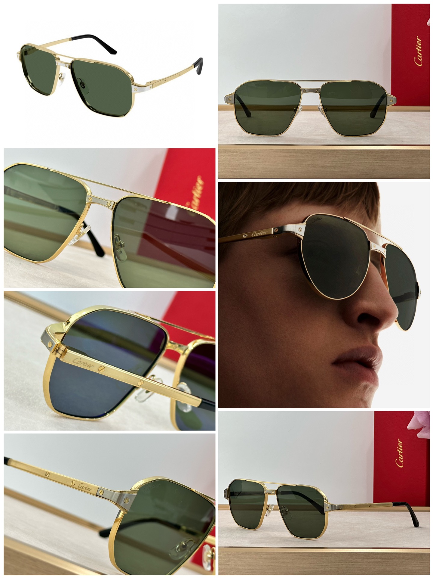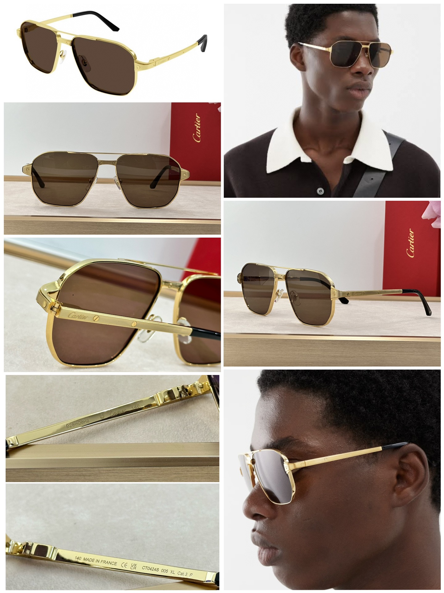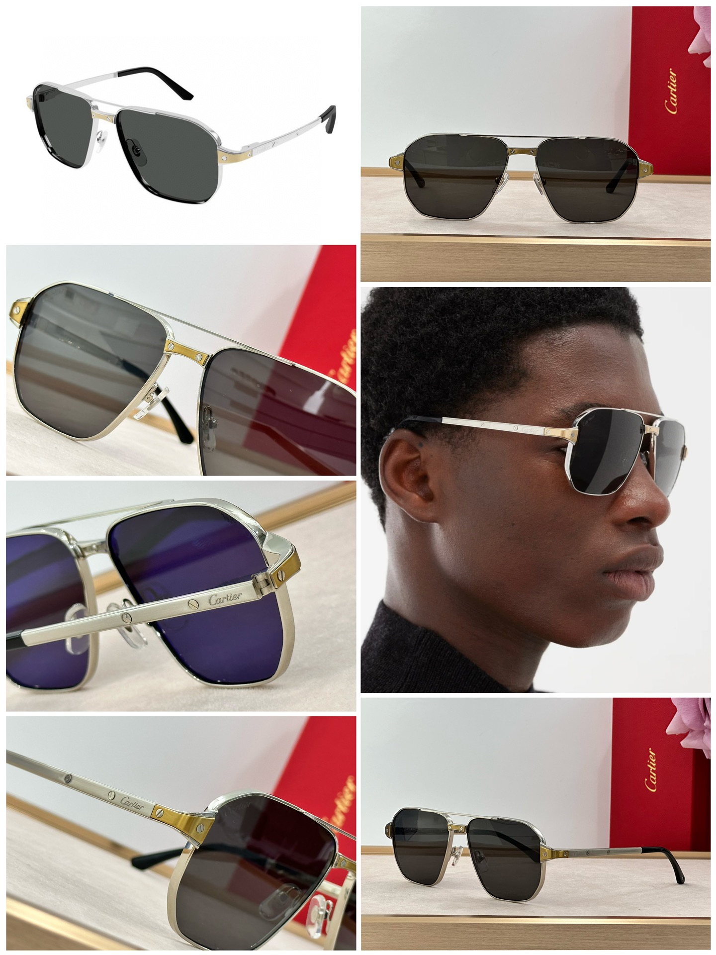 這款太陽眼鏡是AAAAA 1:1 質量(非常棒). 使用了和原版一模一樣的材料. 商標部分也保持了和卡地亞/Cartier一樣. 圖片拍攝是實物太陽眼鏡拍攝, 您所收到的實物保證和我們圖片一模一樣.