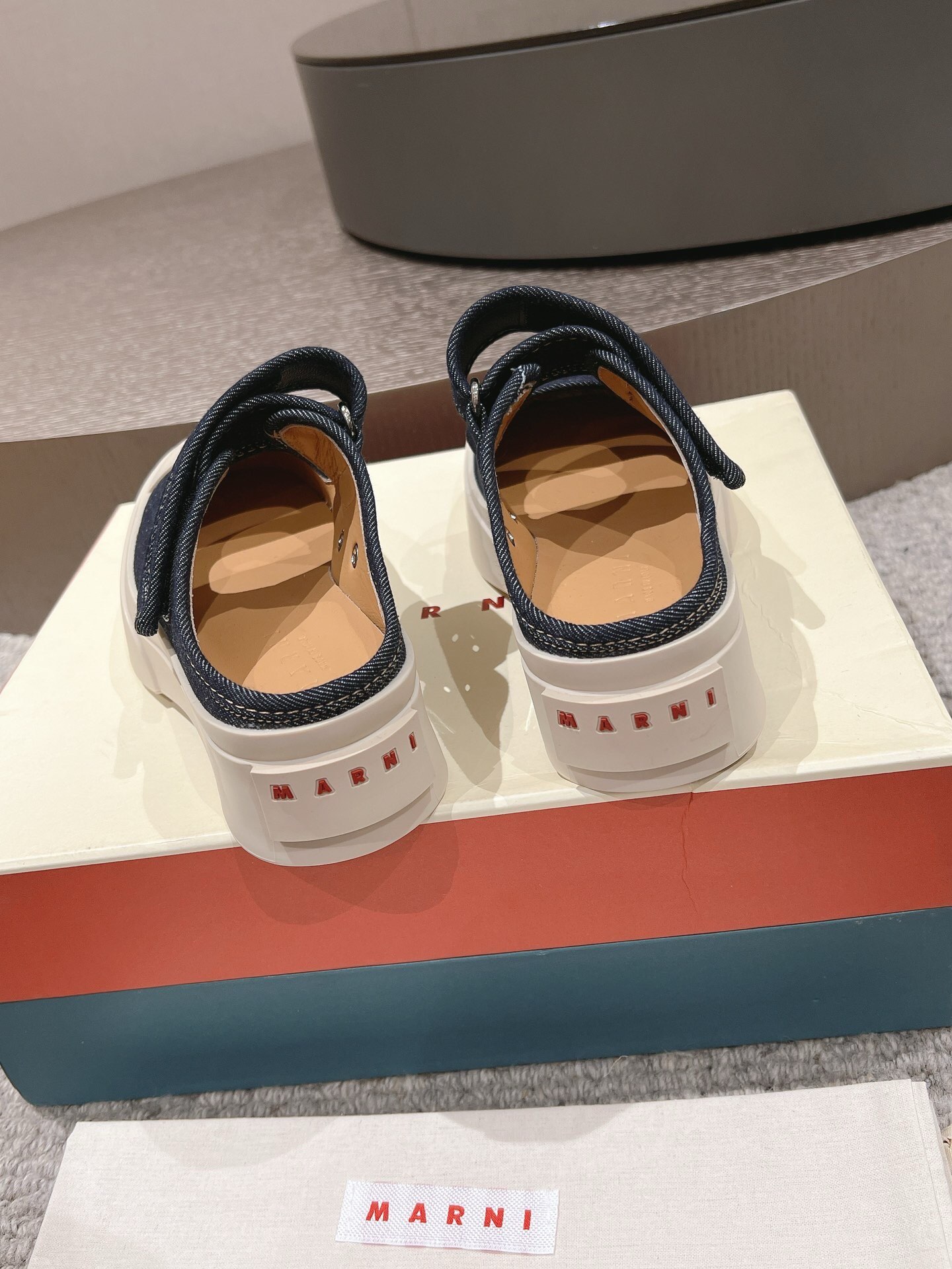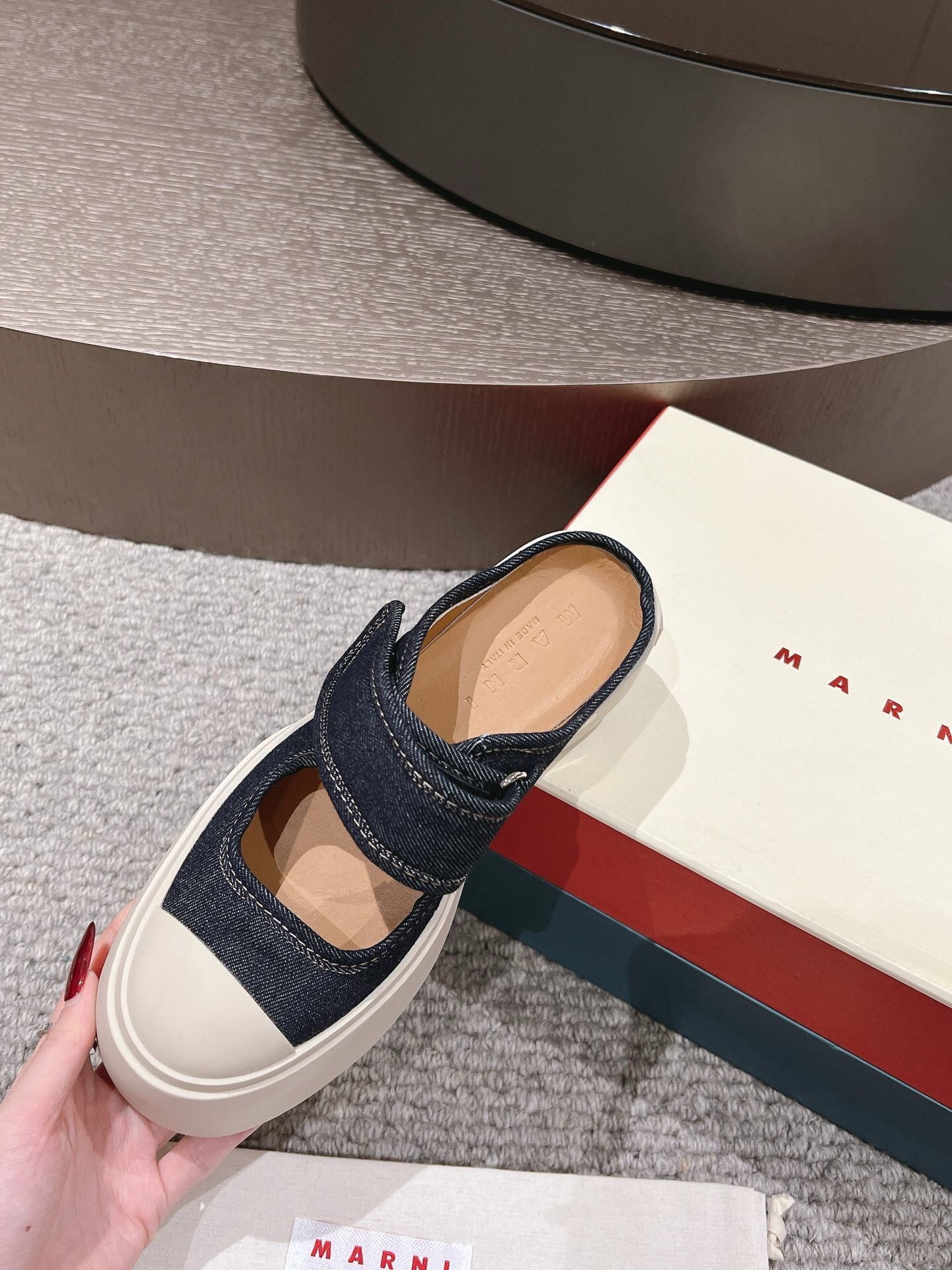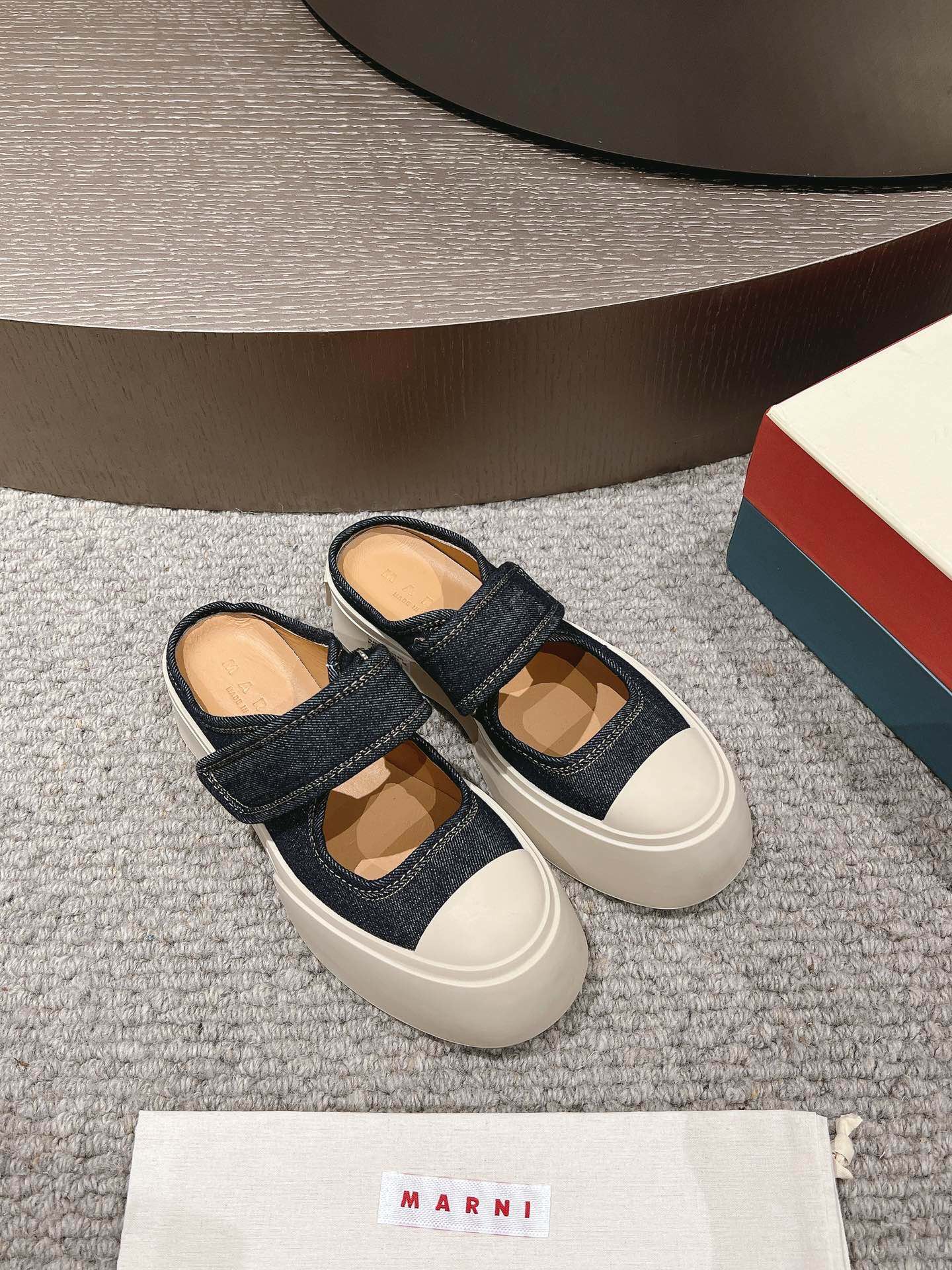 這款鞋子是AAAAA 1:1 質量(非常棒). 使用了和原版一模一樣的材料. 商標部分也保持了和馬爾尼/Marni一樣. 圖片拍攝是實物鞋子拍攝, 您所收到的實物保證和我們圖片一模一樣.