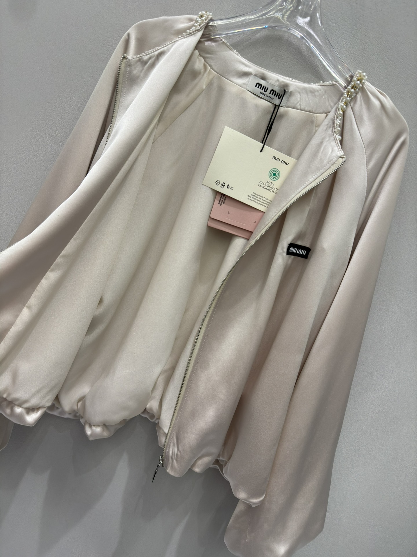 這款衣服是AAAAA 1:1 質量(非常棒). 使用了和原版一模一樣的材料. 商標部分也保持了和繆繆/Miu Miu一樣. 圖片拍攝是實物衣服拍攝, 您所收到的實物保證和我們圖片一模一樣.