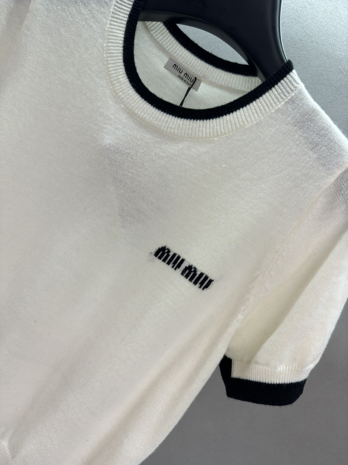 這款衣服是AAAAA 1:1 質量(非常棒). 使用了和原版一模一樣的材料. 商標部分也保持了和繆繆/Miu Miu一樣. 圖片拍攝是實物衣服拍攝, 您所收到的實物保證和我們圖片一模一樣.