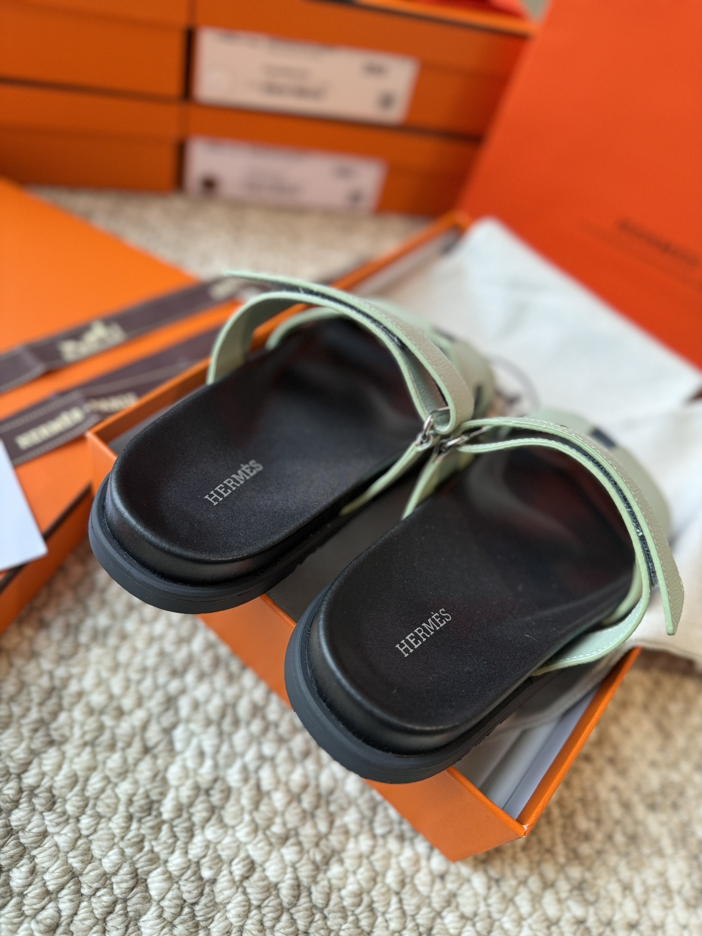 這款鞋子是AAAAA 1:1 質量(非常棒). 使用了和原版一模一樣的材料. 商標部分也保持了和愛馬仕/Hermes一樣. 圖片拍攝是實物鞋子拍攝, 您所收到的實物保證和我們圖片一模一樣.
