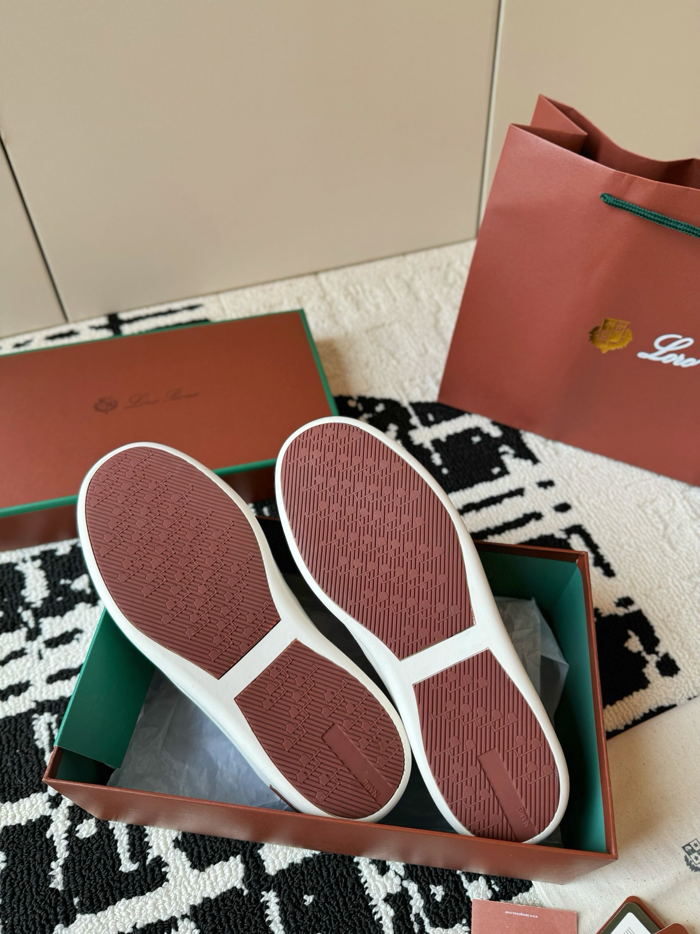 這款鞋子是AAAAA 1:1 質量(非常棒). 使用了和原版一模一樣的材料. 商標部分也保持了和Loro Piana一樣. 圖片拍攝是實物鞋子拍攝, 您所收到的實物保證和我們圖片一模一樣.