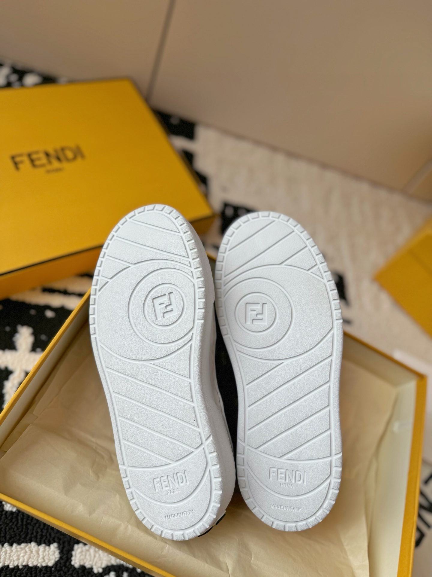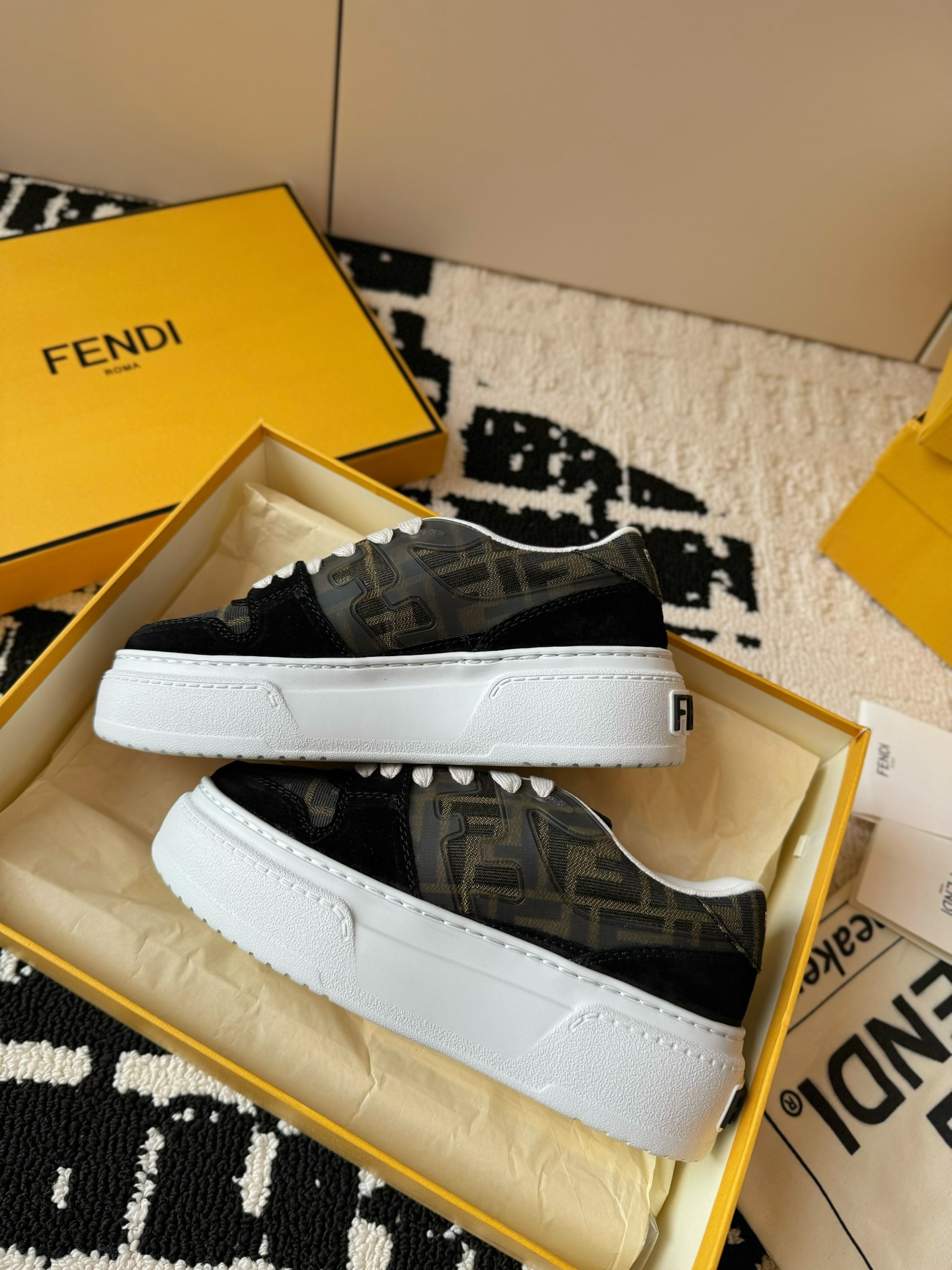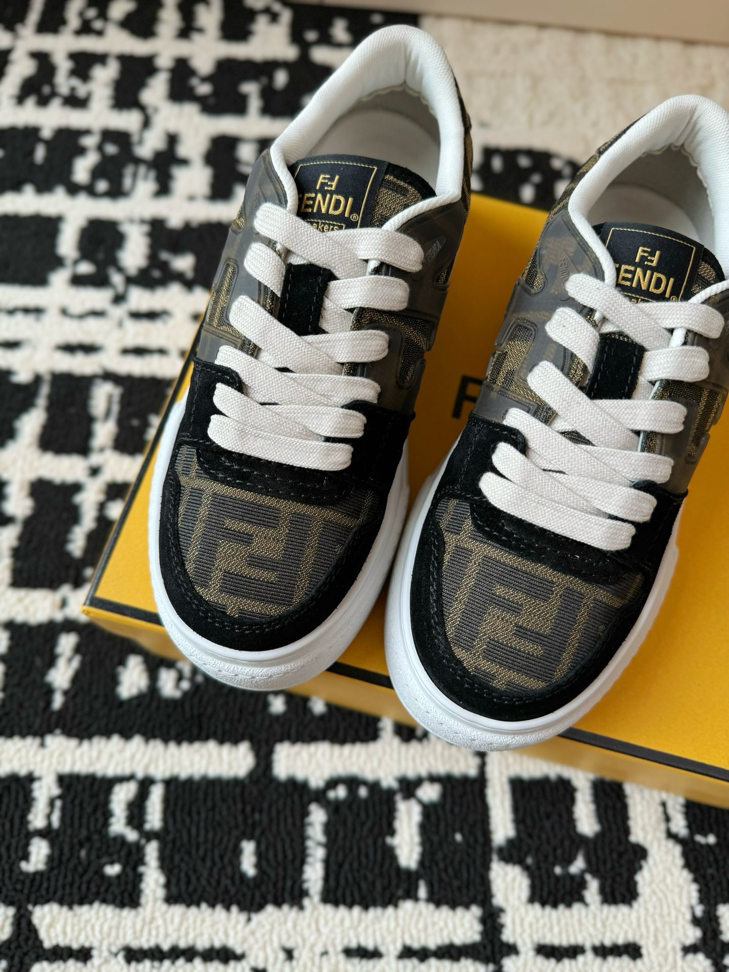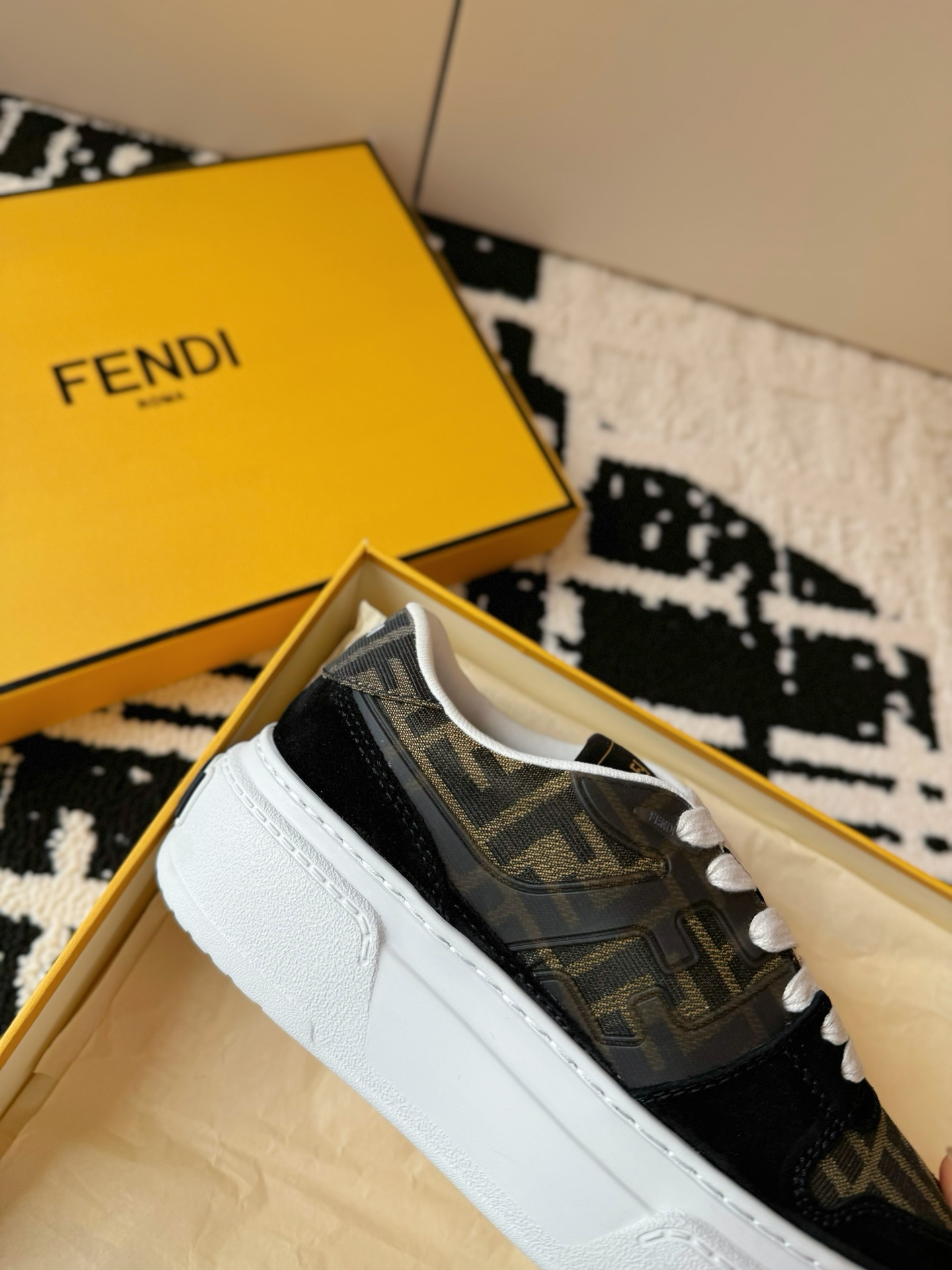 這款鞋子是AAAAA 1:1 質量(非常棒). 使用了和原版一模一樣的材料. 商標部分也保持了和芬迪/Fendi一樣. 圖片拍攝是實物鞋子拍攝, 您所收到的實物保證和我們圖片一模一樣.