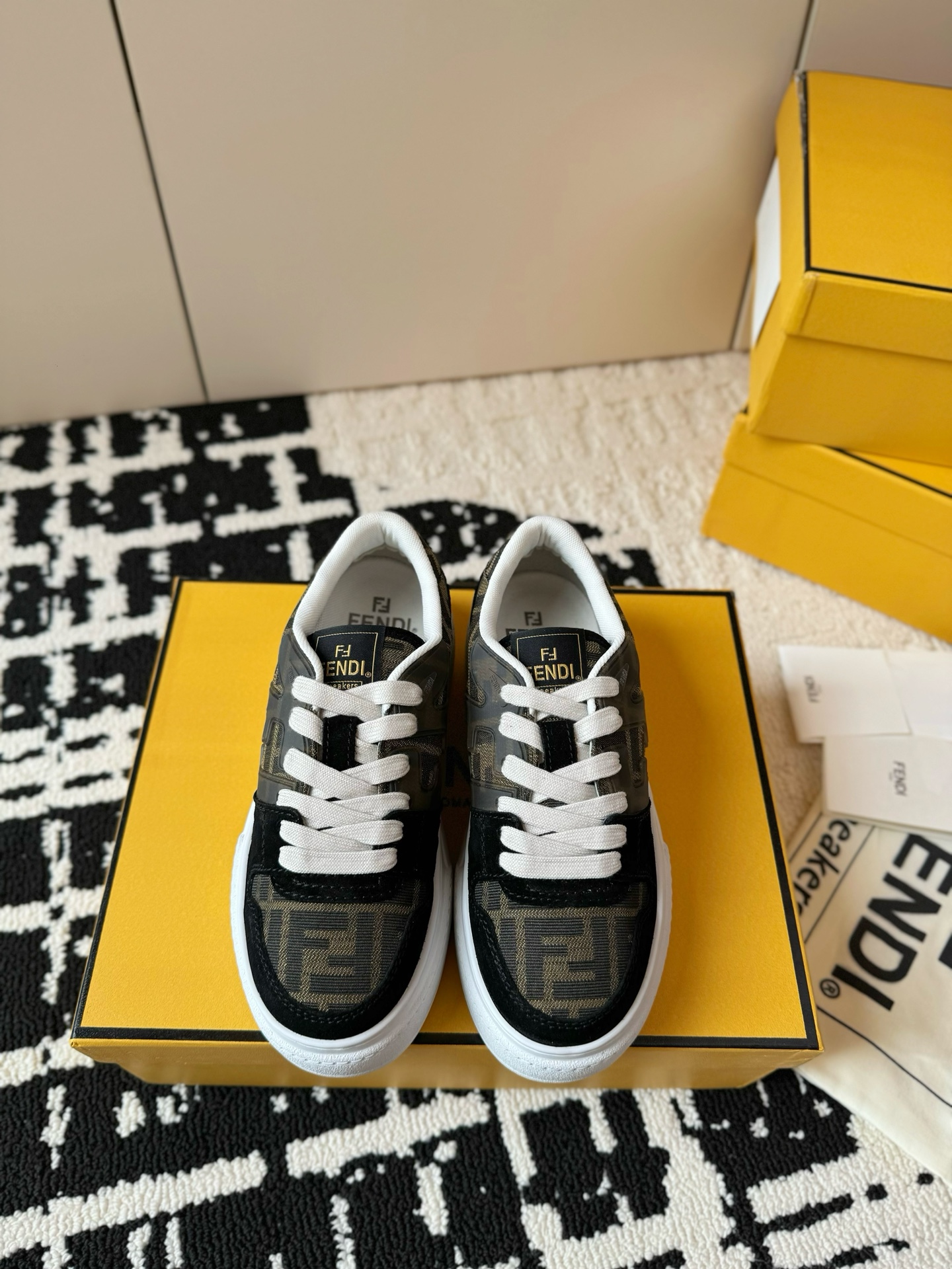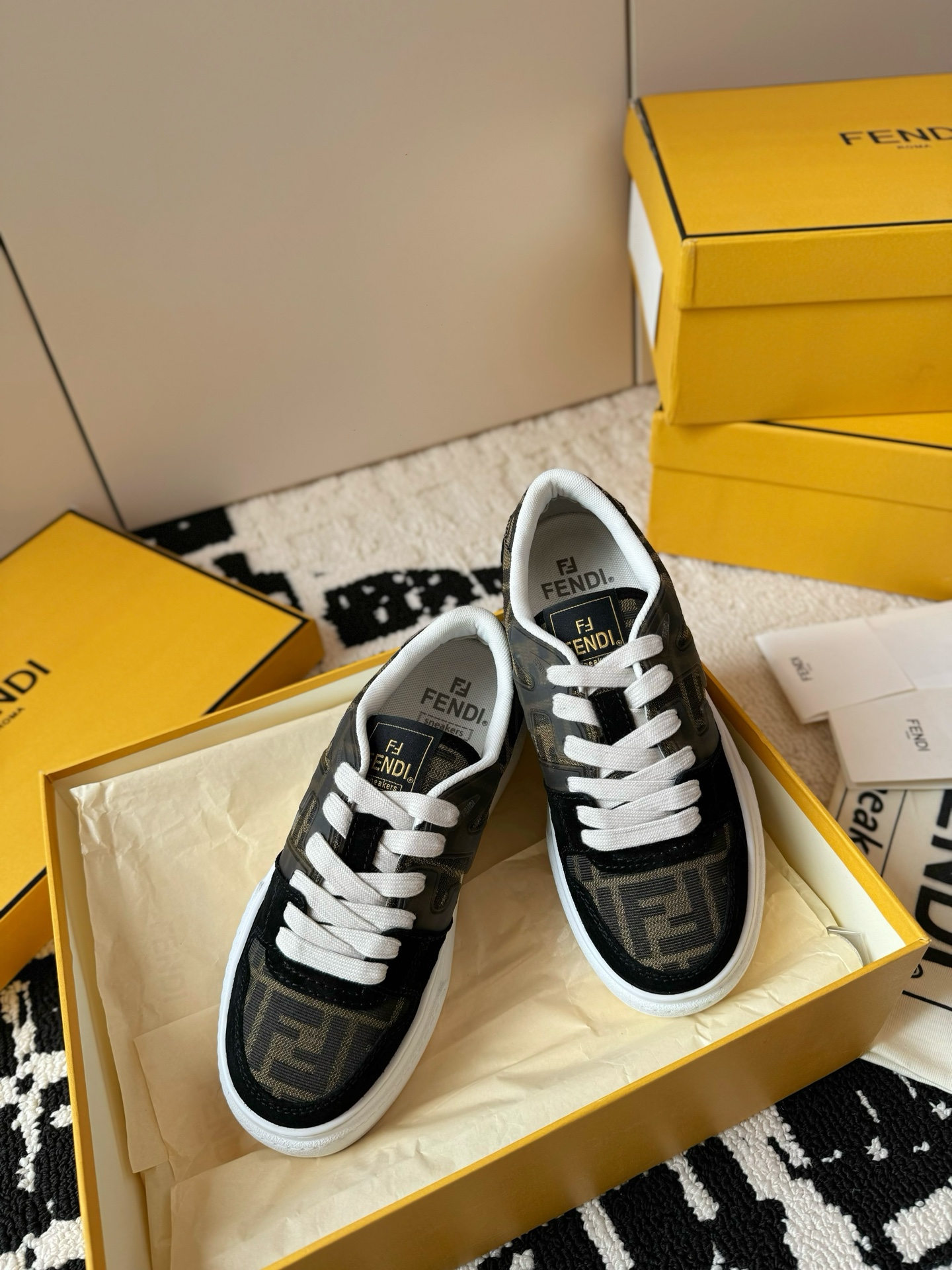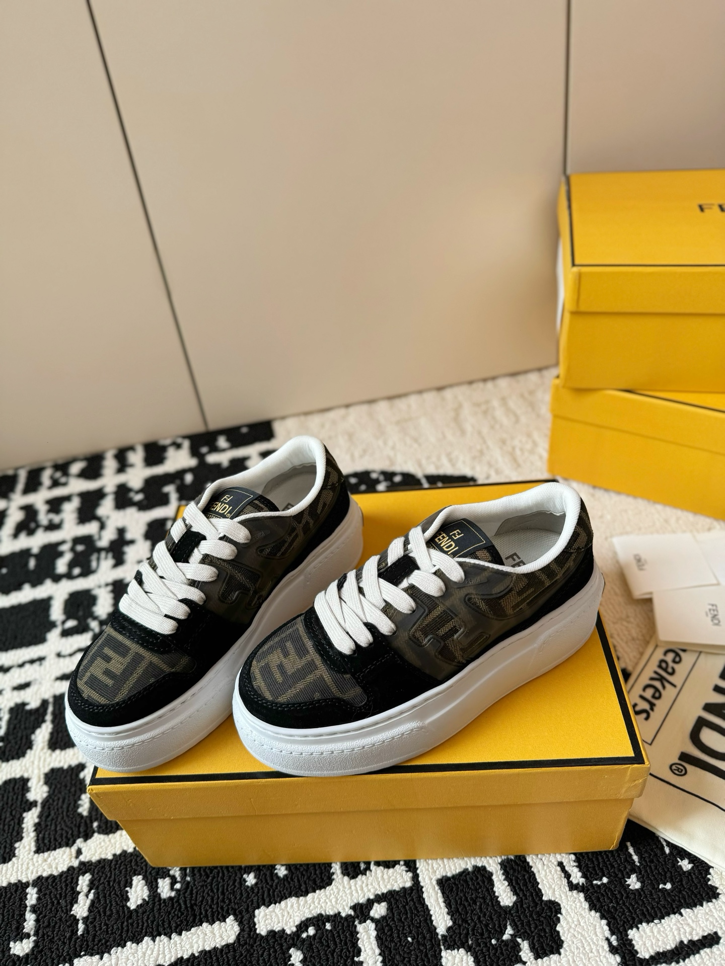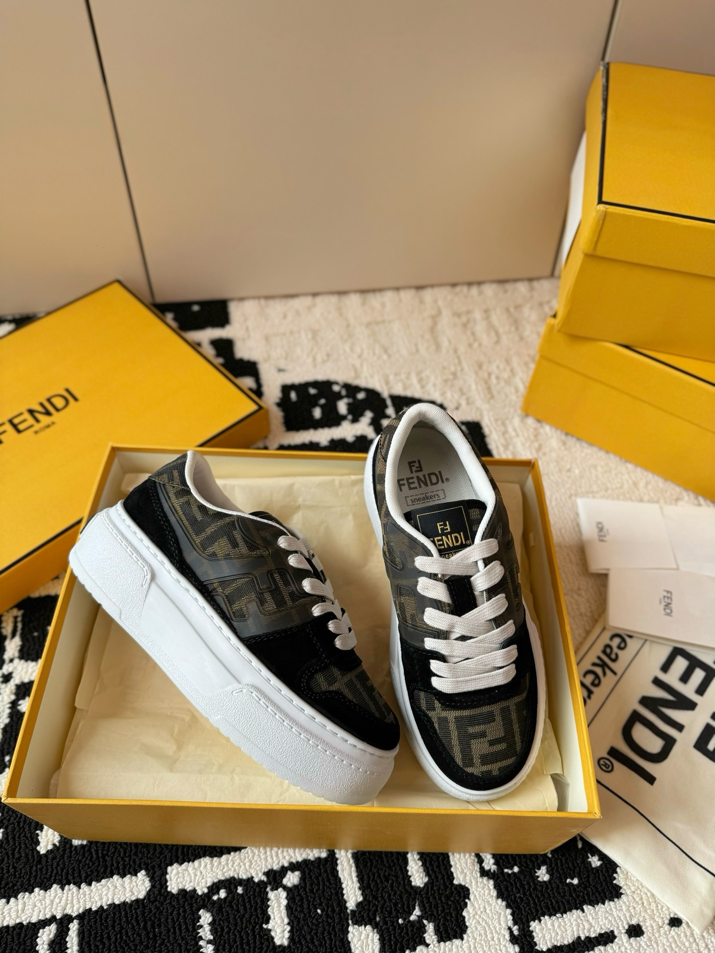 這款鞋子是AAAAA 1:1 質量(非常棒). 使用了和原版一模一樣的材料. 商標部分也保持了和芬迪/Fendi一樣. 圖片拍攝是實物鞋子拍攝, 您所收到的實物保證和我們圖片一模一樣.