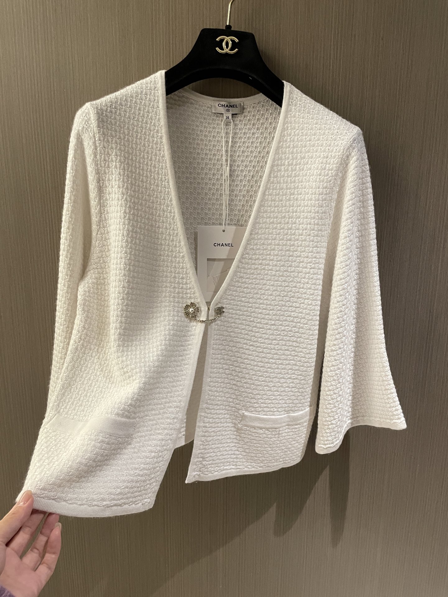 這款衣服是AAAAA 1:1 質量(非常棒). 使用了和原版一模一樣的材料. 商標部分也保持了和香奈兒/Chanel一樣. 圖片拍攝是實物衣服拍攝, 您所收到的實物保證和我們圖片一模一樣.