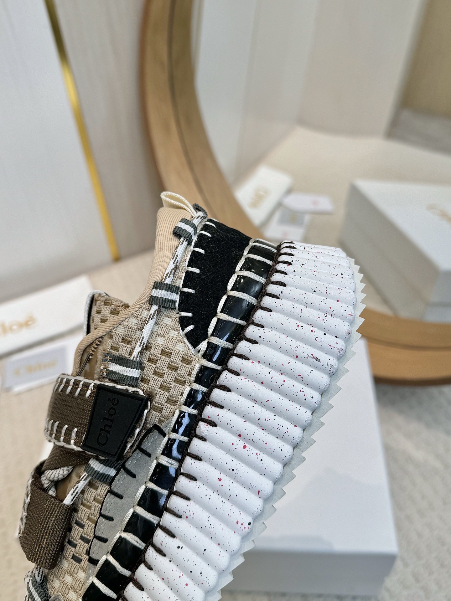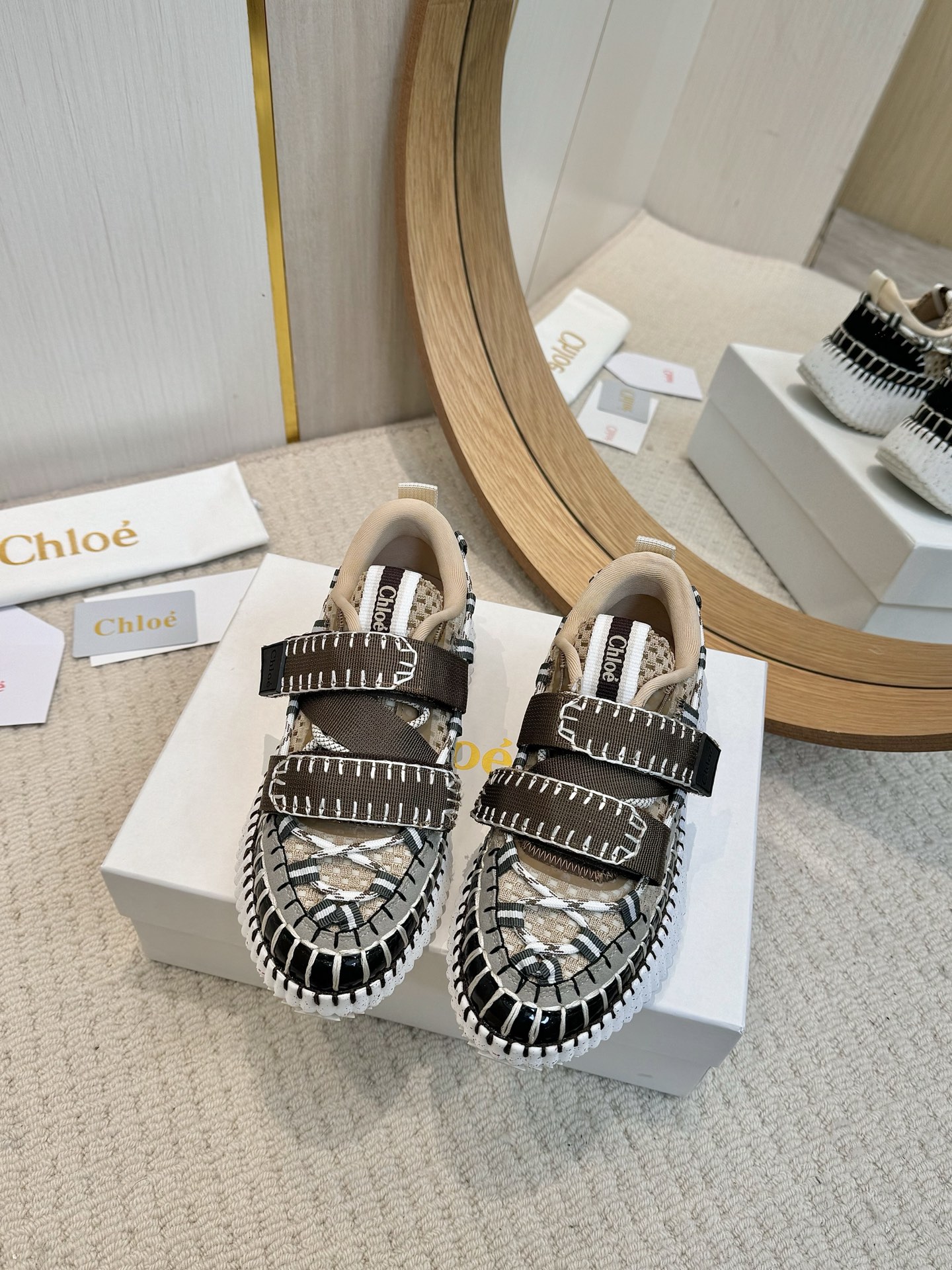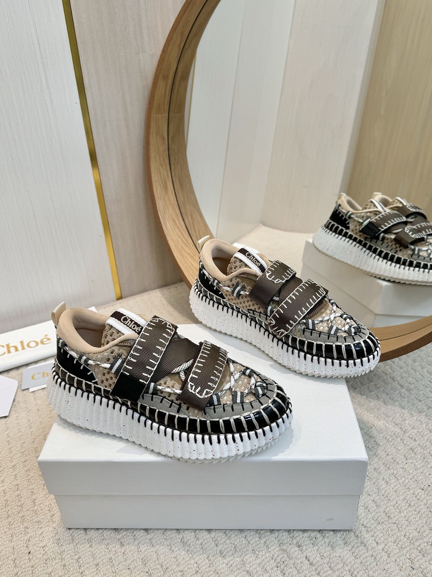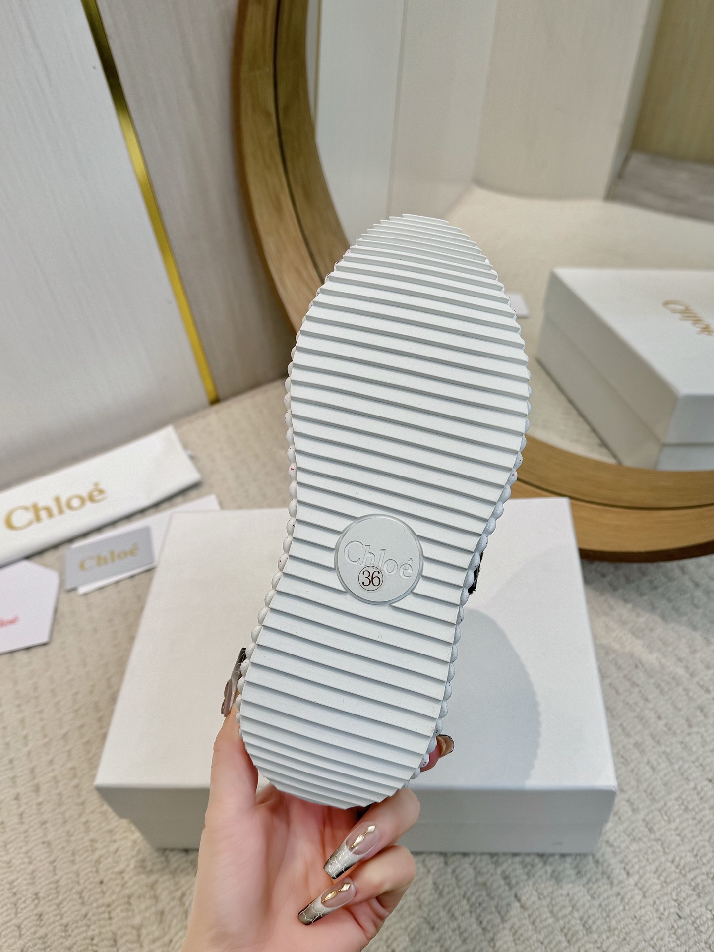 這款鞋子是AAAAA 1:1 質量(非常棒). 使用了和原版一模一樣的材料. 商標部分也保持了和克洛伊/Chloe一樣. 圖片拍攝是實物鞋子拍攝, 您所收到的實物保證和我們圖片一模一樣.