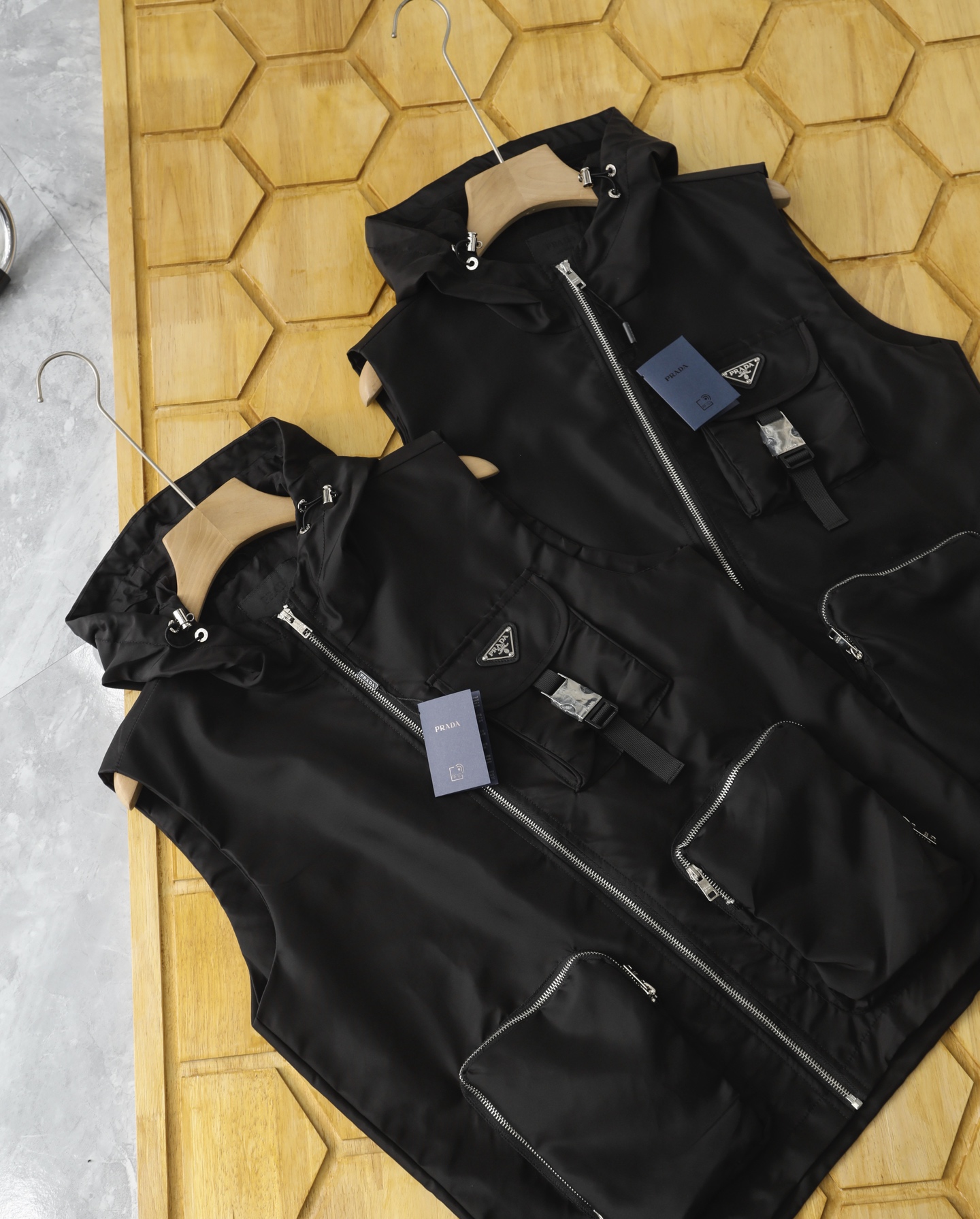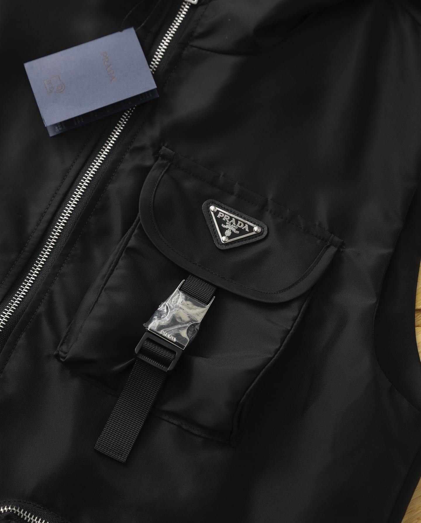 這款衣服是AAAAA 1:1 質量(非常棒). 使用了和原版一模一樣的材料. 商標部分也保持了和普拉達/Prada一樣. 圖片拍攝是實物衣服拍攝, 您所收到的實物保證和我們圖片一模一樣.
