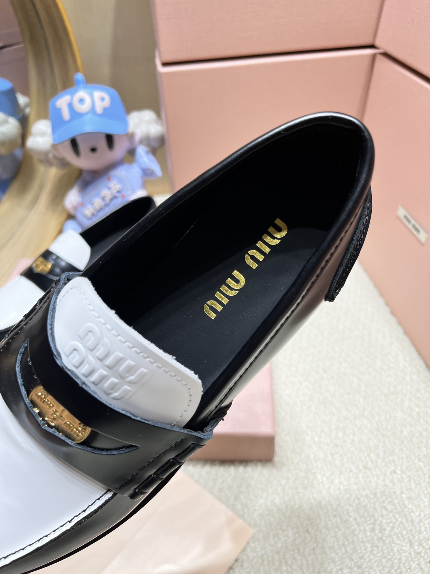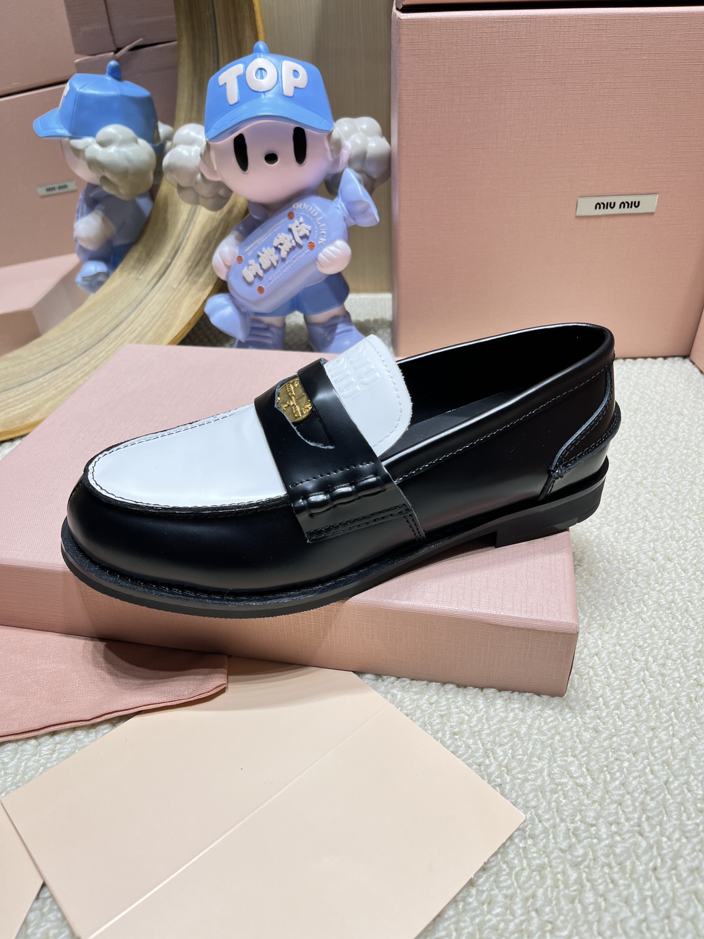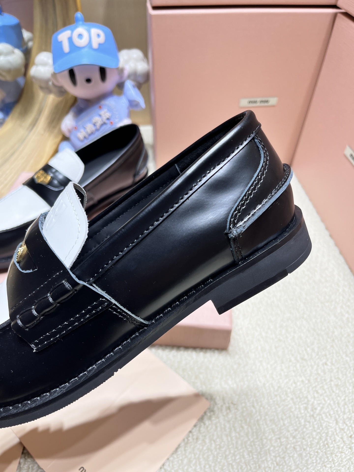 這款鞋子是AAAAA 1:1 質量(非常棒). 使用了和原版一模一樣的材料. 商標部分也保持了和繆繆/Miu Miu一樣. 圖片拍攝是實物鞋子拍攝, 您所收到的實物保證和我們圖片一模一樣.
