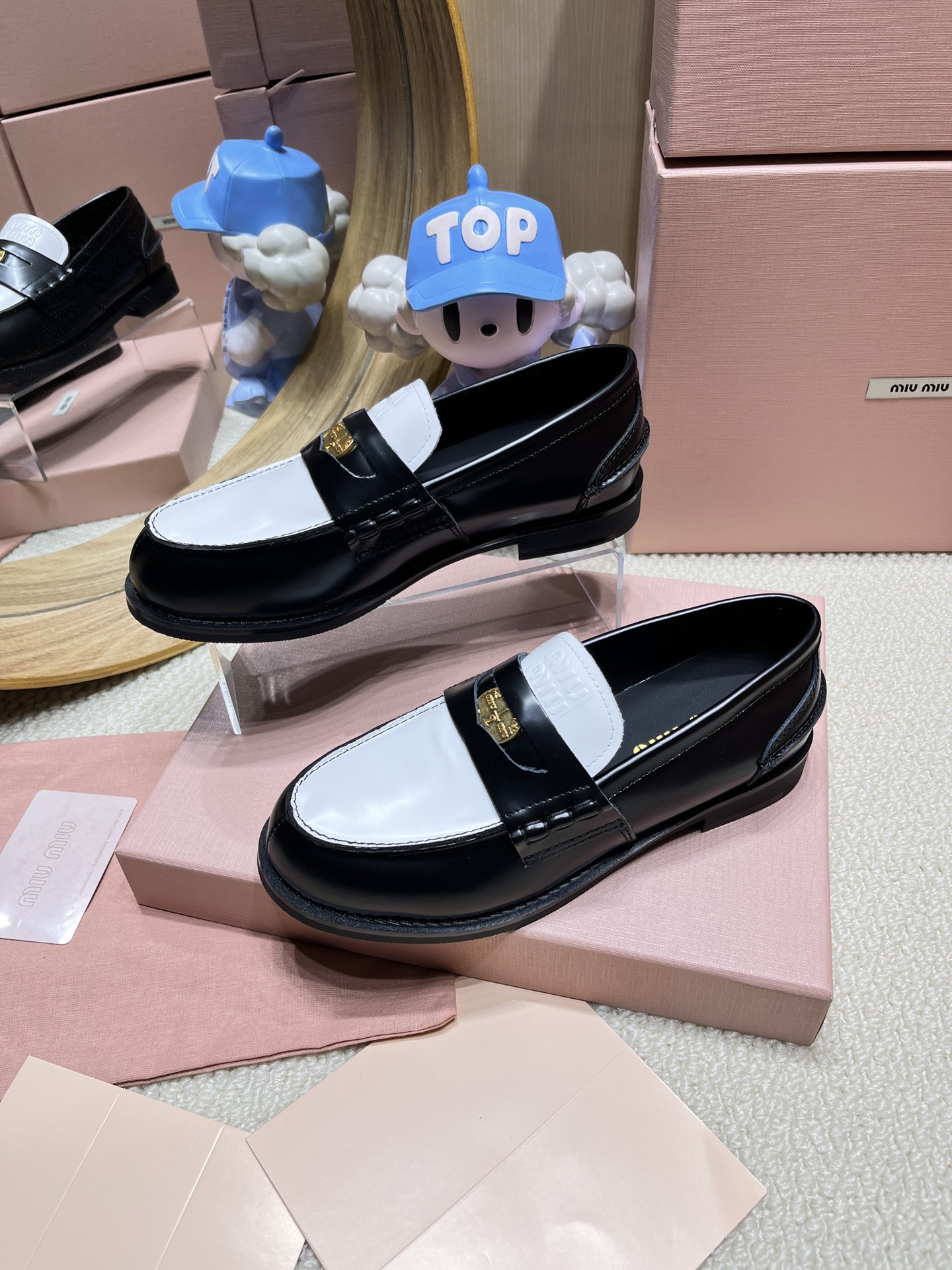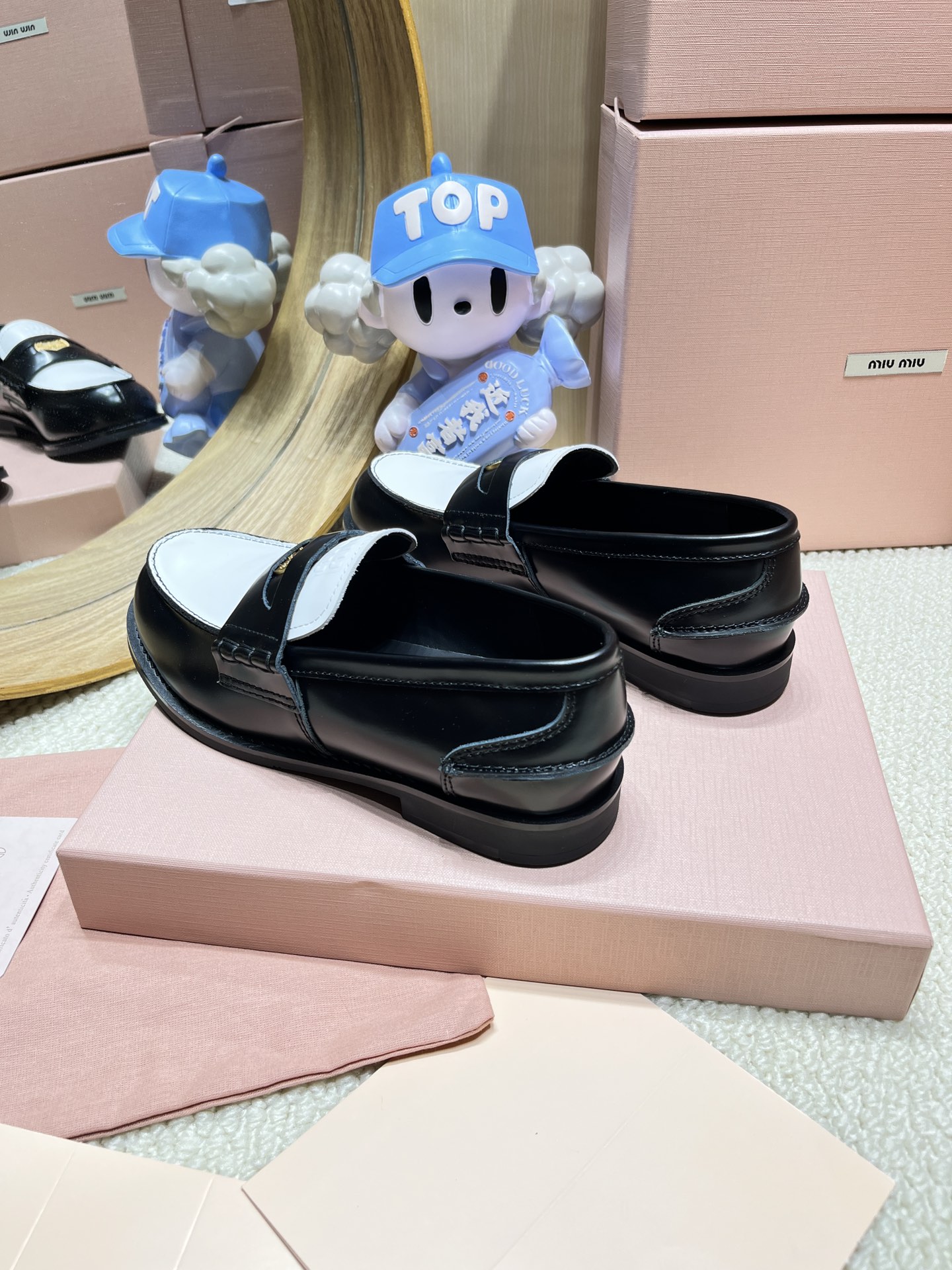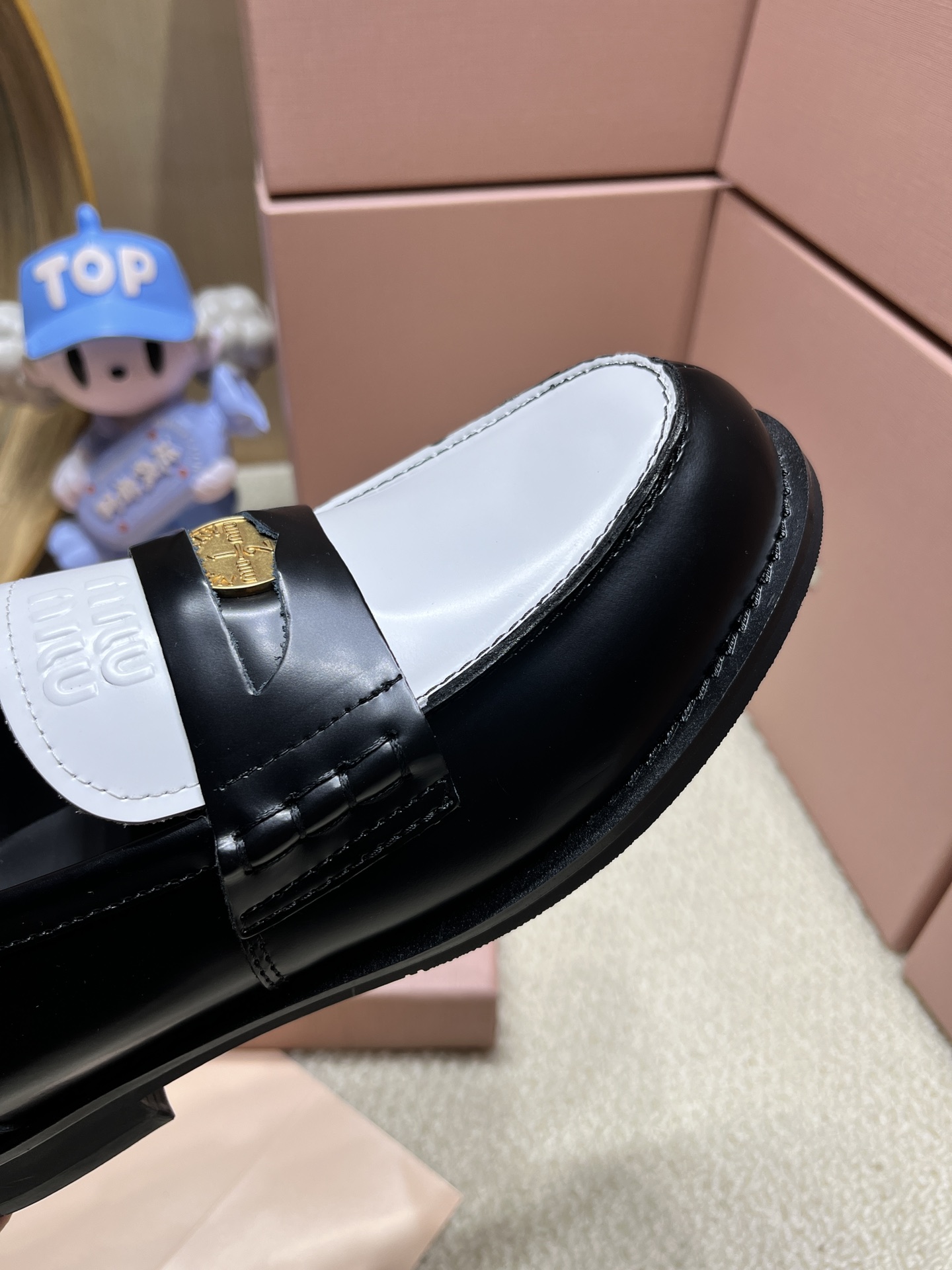 這款鞋子是AAAAA 1:1 質量(非常棒). 使用了和原版一模一樣的材料. 商標部分也保持了和繆繆/Miu Miu一樣. 圖片拍攝是實物鞋子拍攝, 您所收到的實物保證和我們圖片一模一樣.