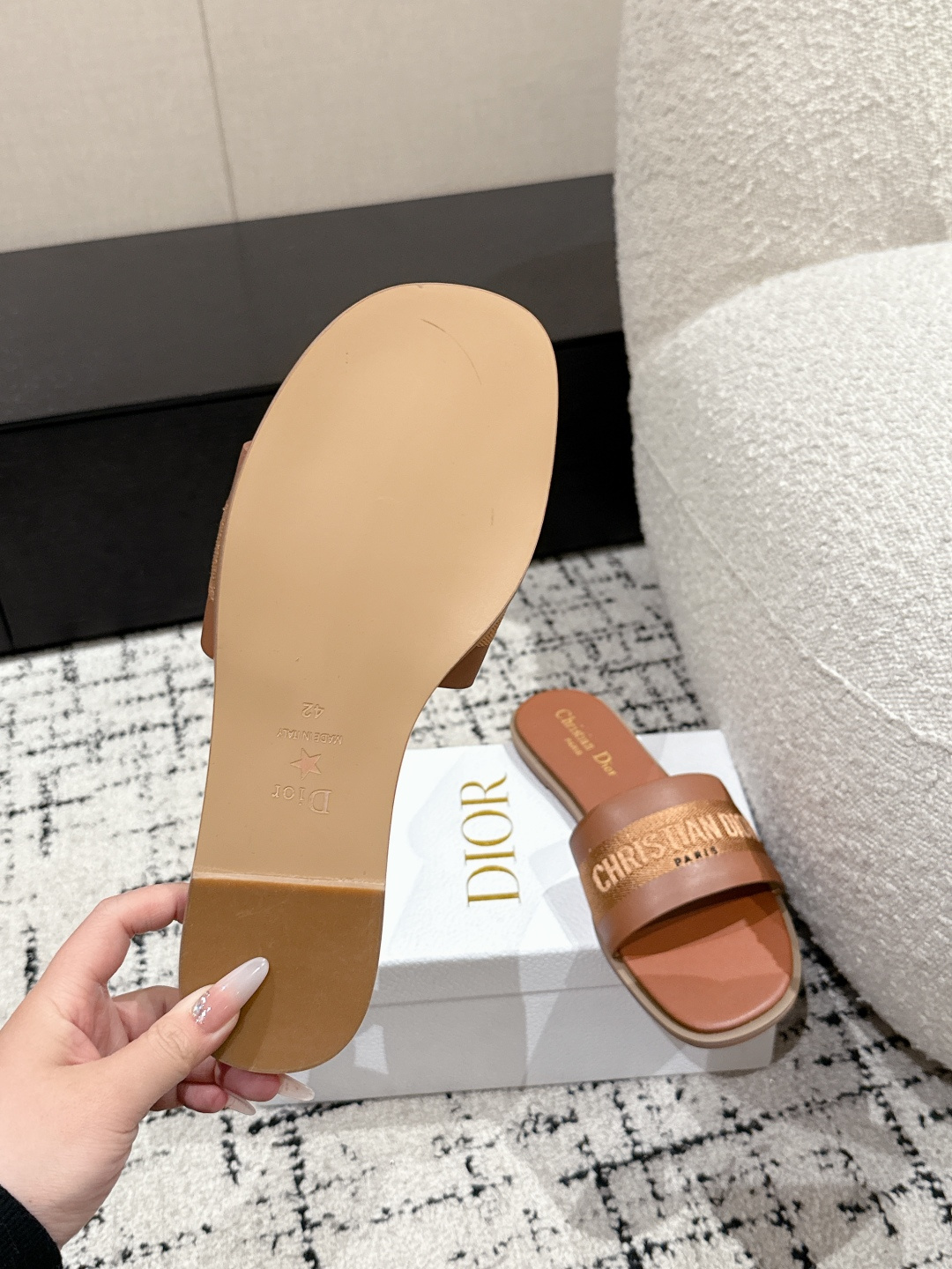 這款鞋子是AAAAA 1:1 質量(非常棒). 使用了和原版一模一樣的材料. 商標部分也保持了和迪奧/Dior一樣. 圖片拍攝是實物鞋子拍攝, 您所收到的實物保證和我們圖片一模一樣.