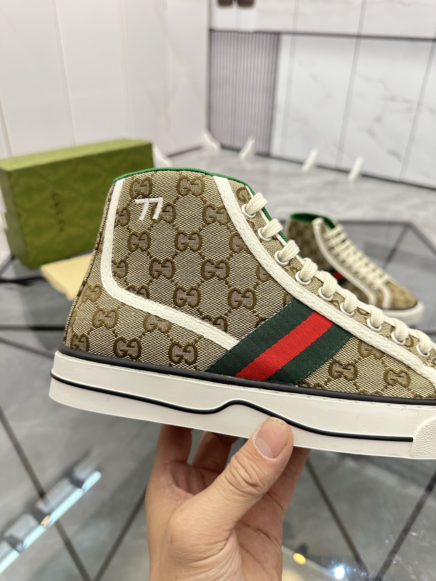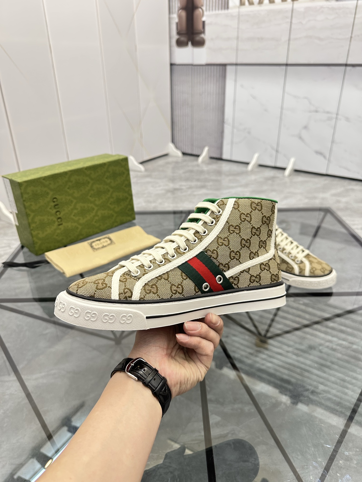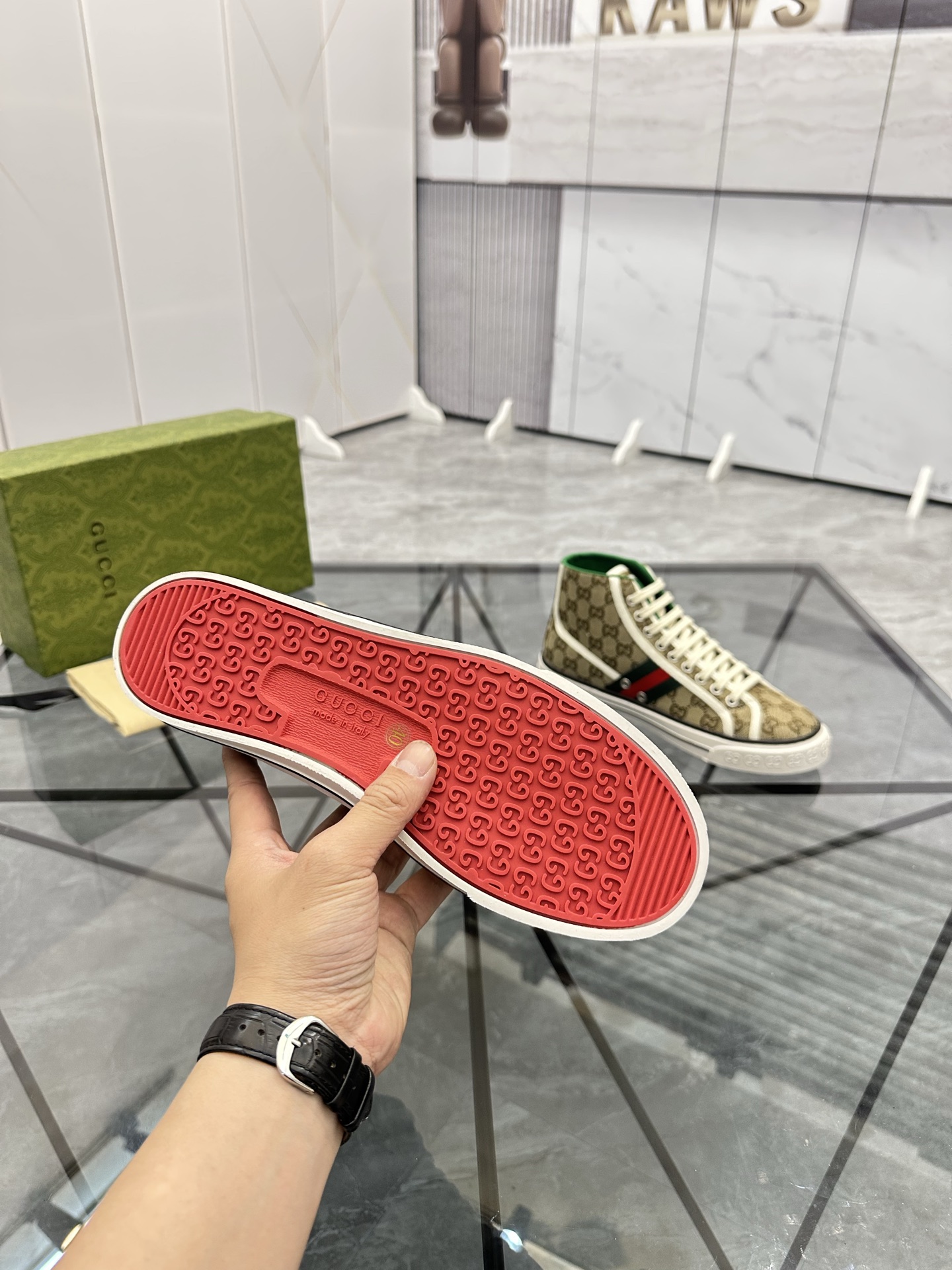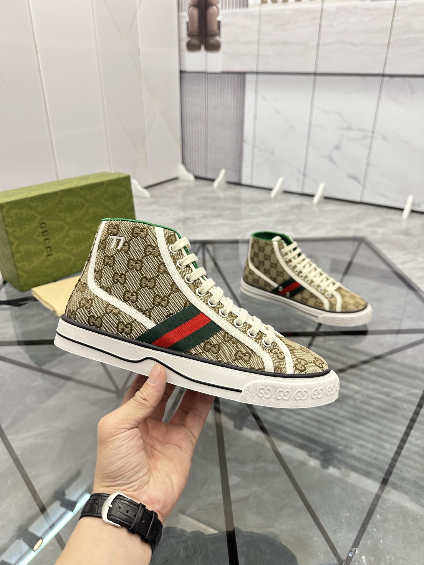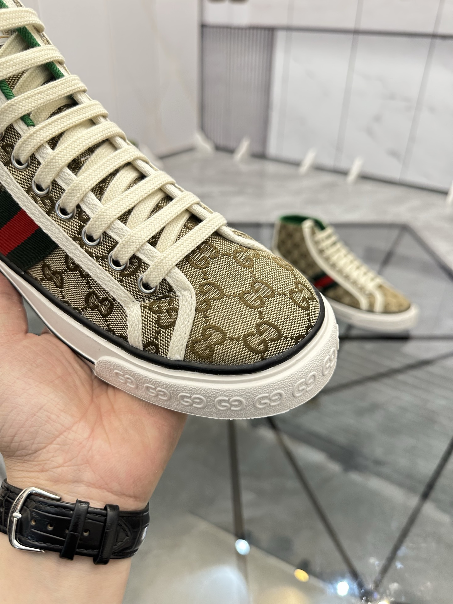 這款鞋子是AAAAA 1:1 質量(非常棒). 使用了和原版一模一樣的材料. 商標部分也保持了和古奇/Gucci一樣. 圖片拍攝是實物鞋子拍攝, 您所收到的實物保證和我們圖片一模一樣.