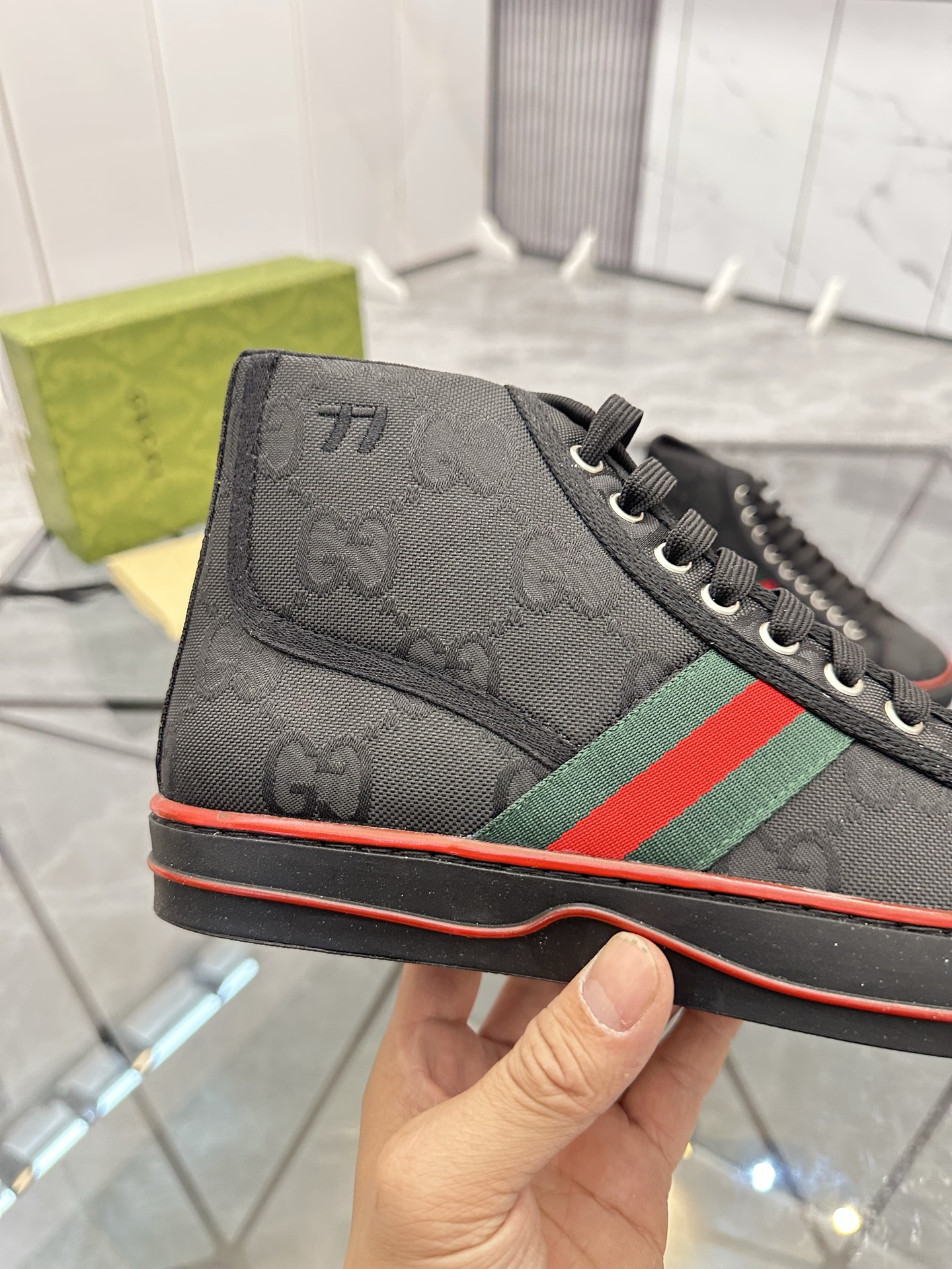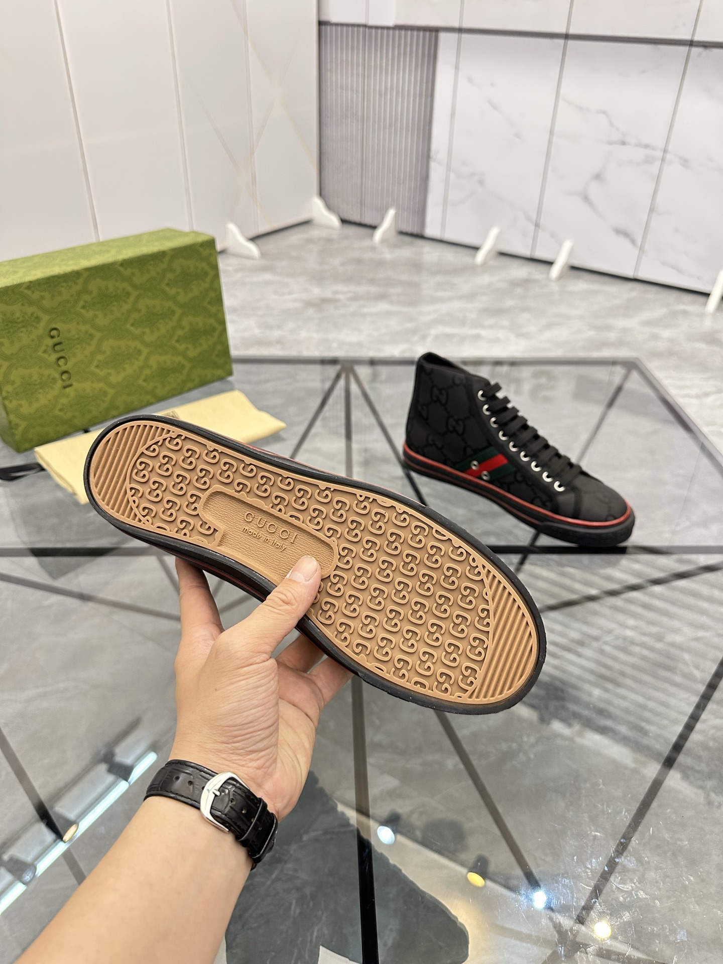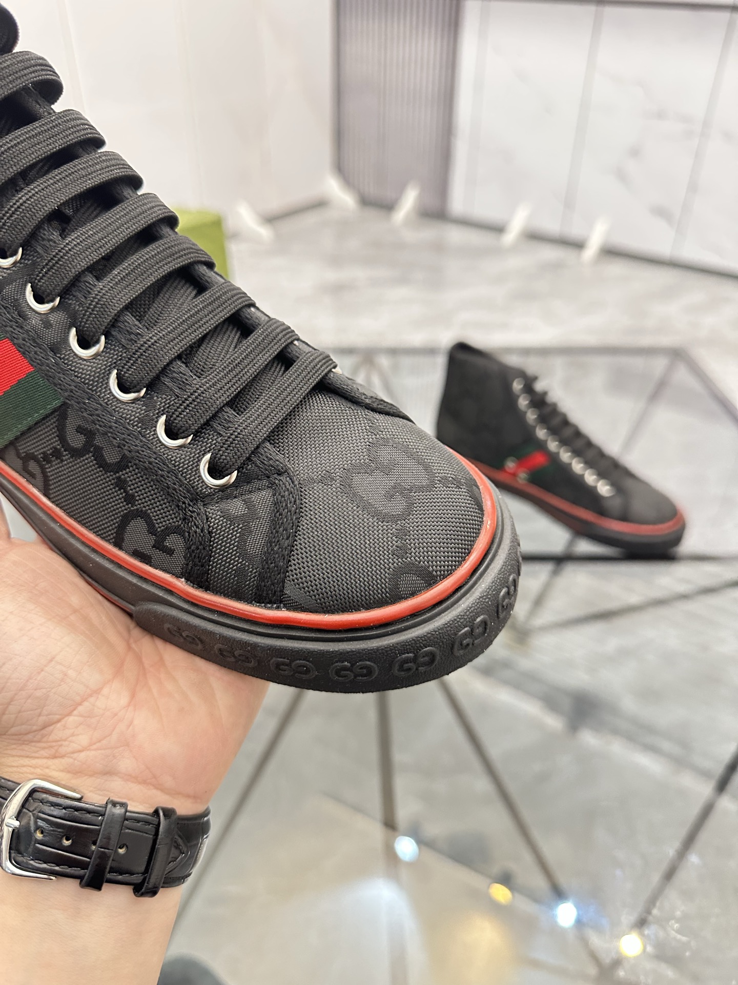 這款鞋子是AAAAA 1:1 質量(非常棒). 使用了和原版一模一樣的材料. 商標部分也保持了和古奇/Gucci一樣. 圖片拍攝是實物鞋子拍攝, 您所收到的實物保證和我們圖片一模一樣.