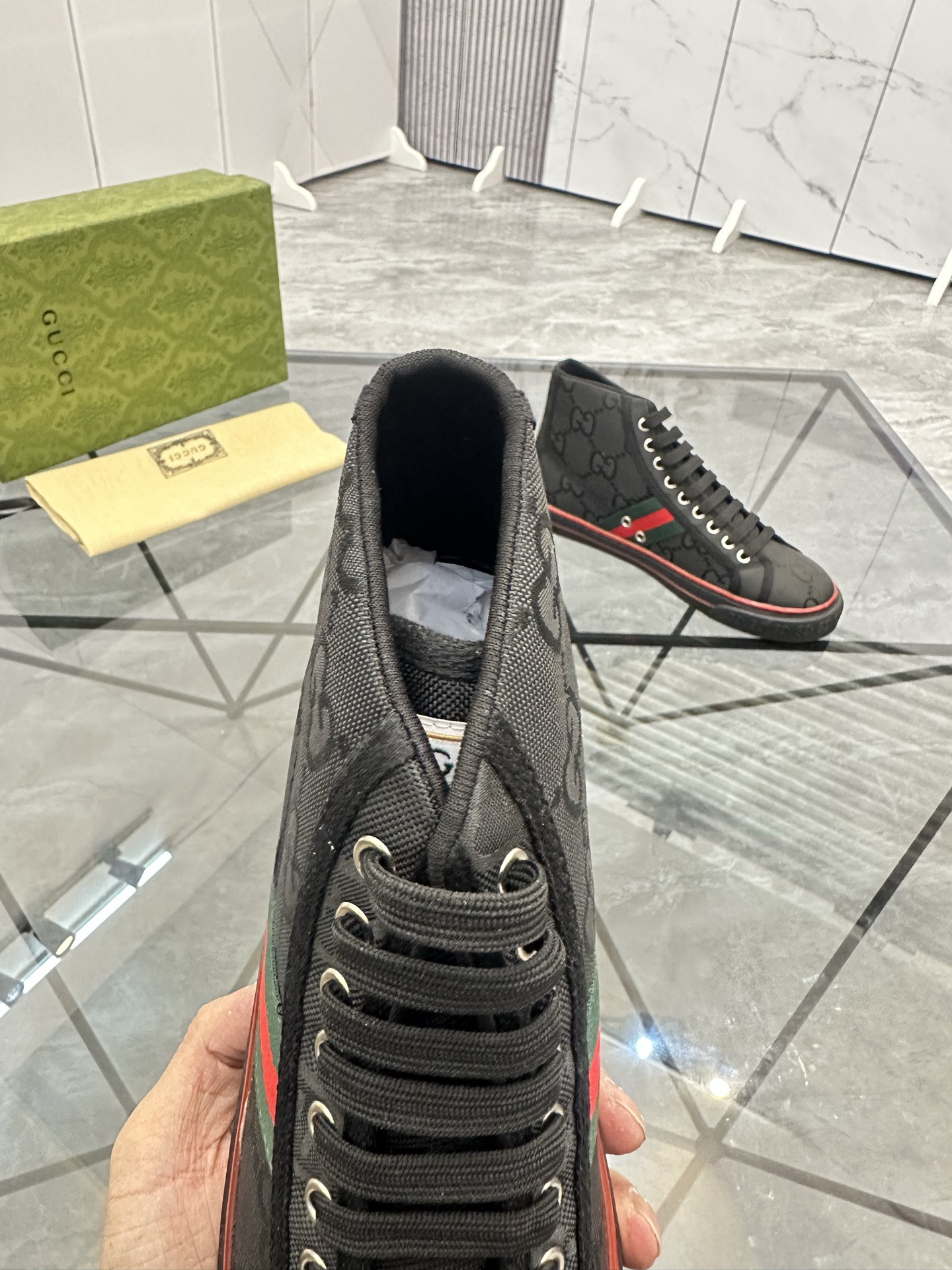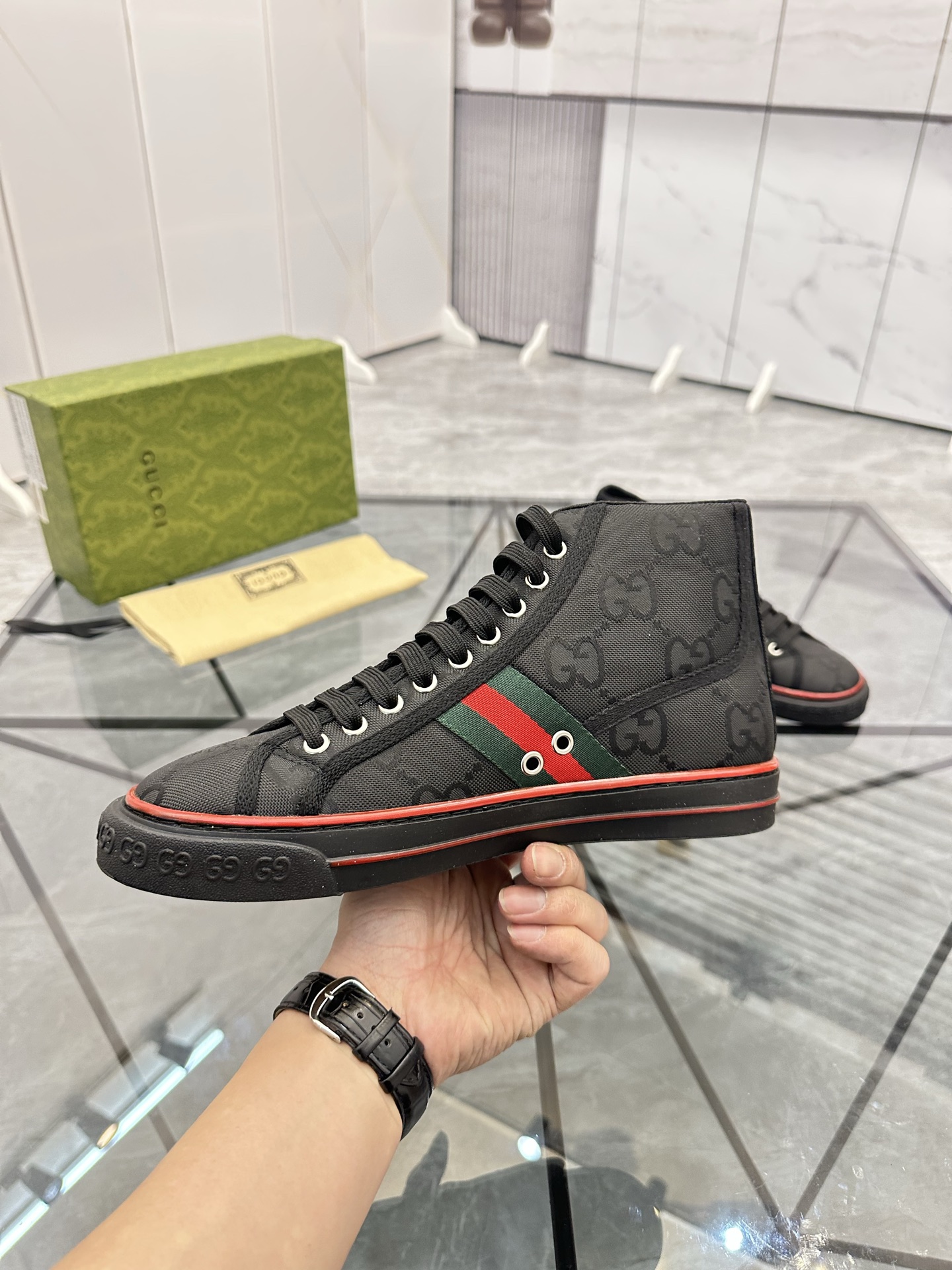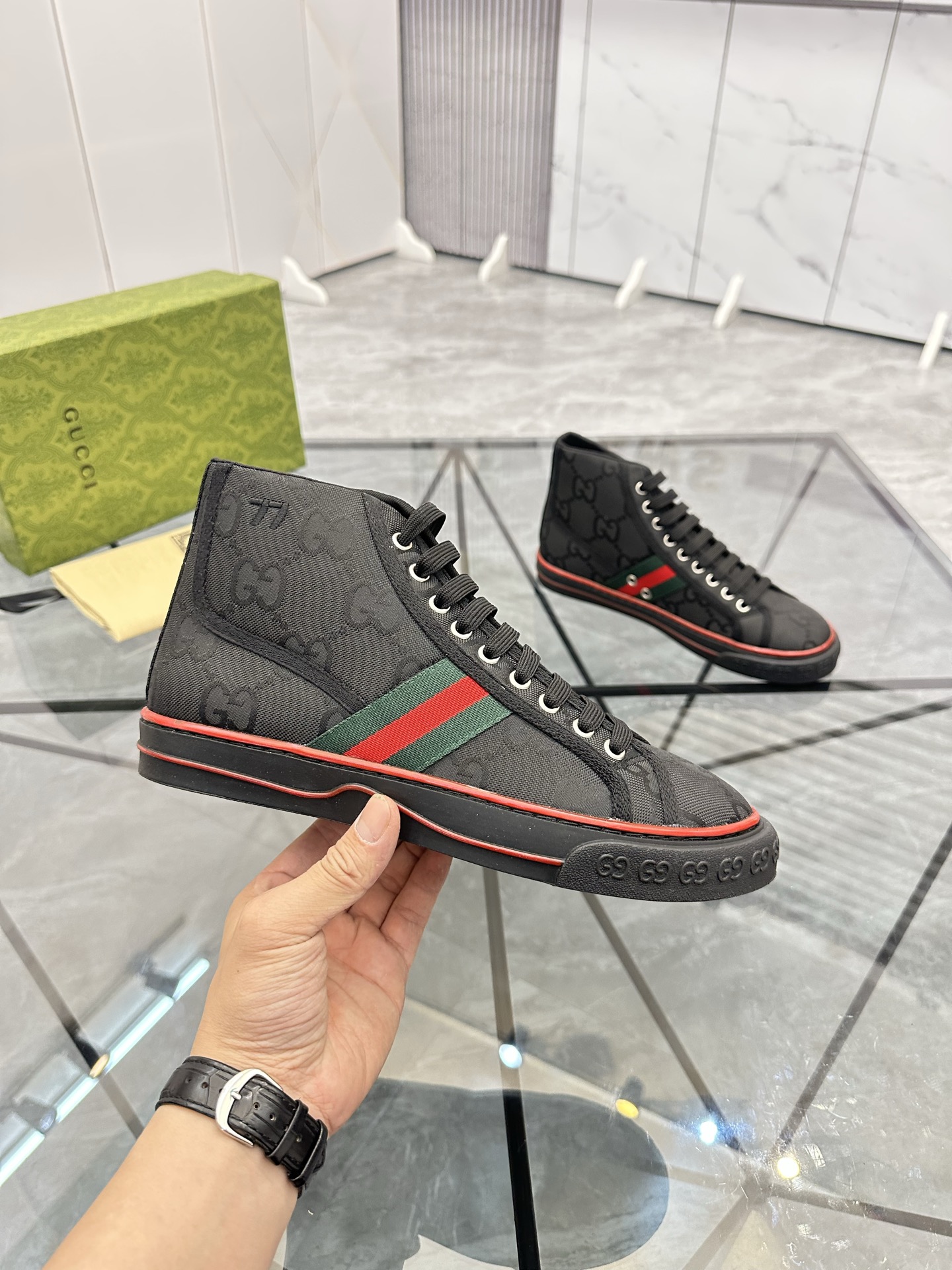這款鞋子是AAAAA 1:1 質量(非常棒). 使用了和原版一模一樣的材料. 商標部分也保持了和古奇/Gucci一樣. 圖片拍攝是實物鞋子拍攝, 您所收到的實物保證和我們圖片一模一樣.