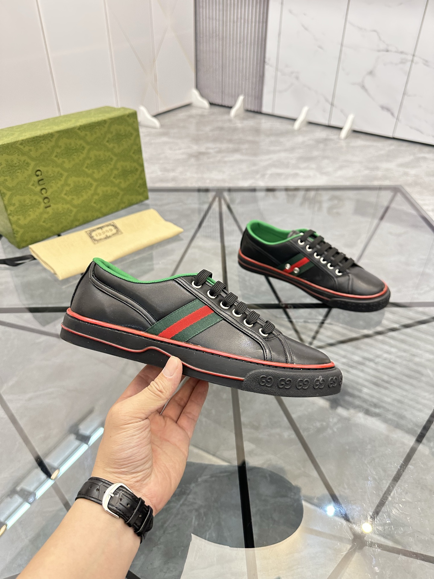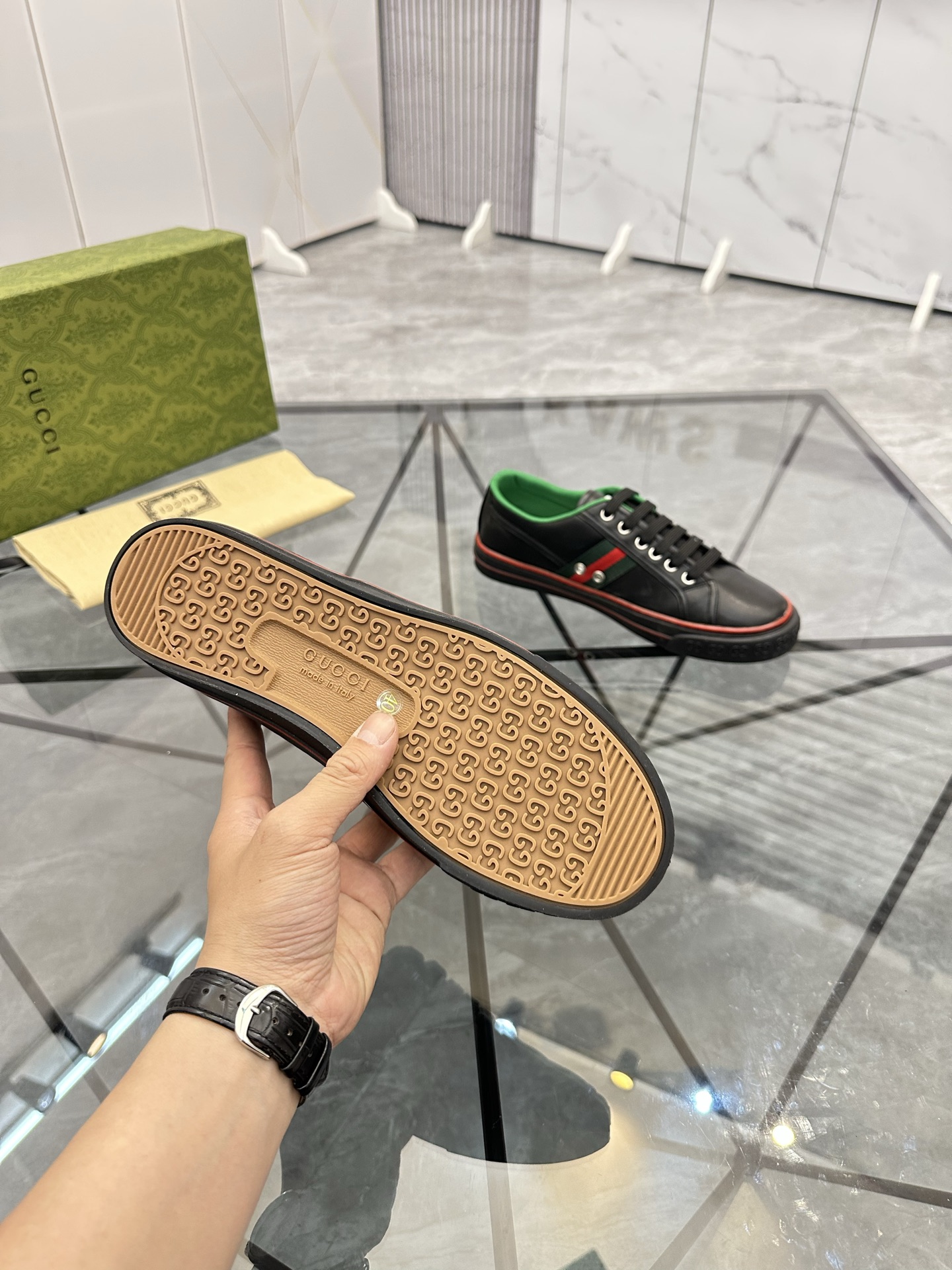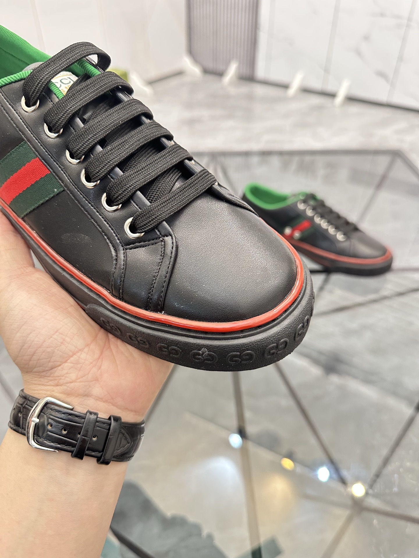 這款鞋子是AAAAA 1:1 質量(非常棒). 使用了和原版一模一樣的材料. 商標部分也保持了和古奇/Gucci一樣. 圖片拍攝是實物鞋子拍攝, 您所收到的實物保證和我們圖片一模一樣.