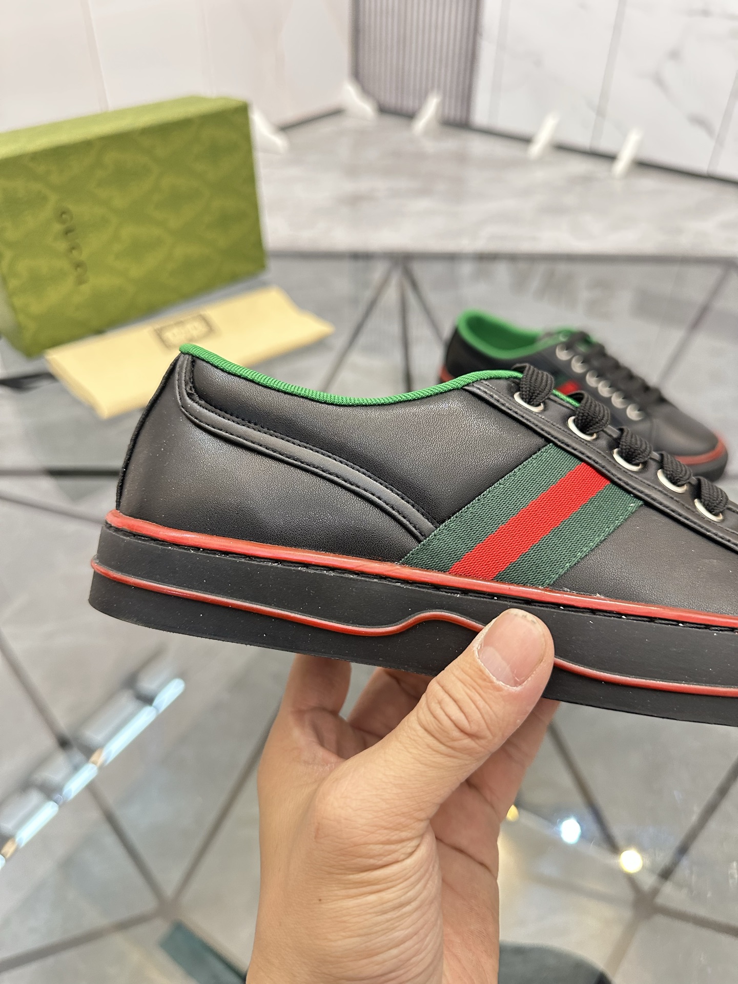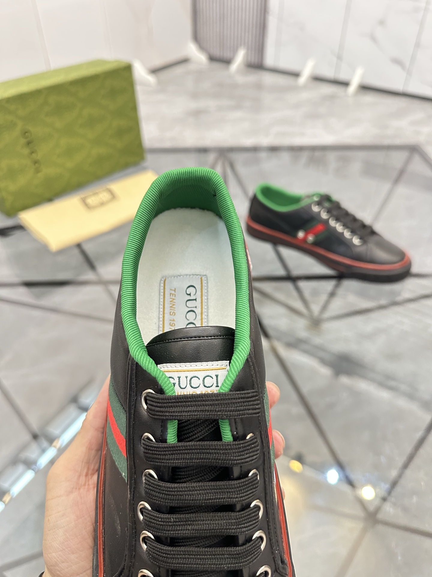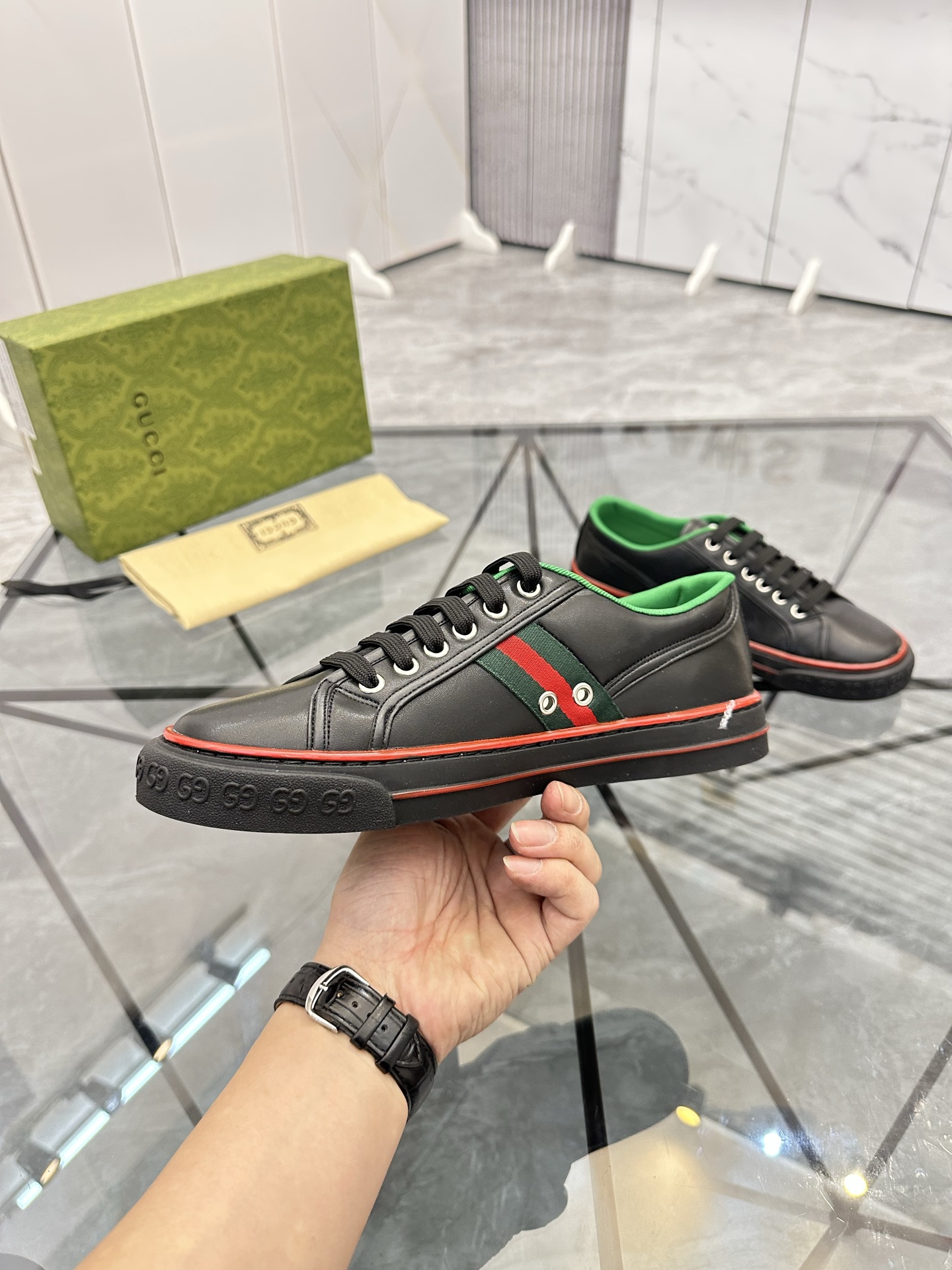 這款鞋子是AAAAA 1:1 質量(非常棒). 使用了和原版一模一樣的材料. 商標部分也保持了和古奇/Gucci一樣. 圖片拍攝是實物鞋子拍攝, 您所收到的實物保證和我們圖片一模一樣.