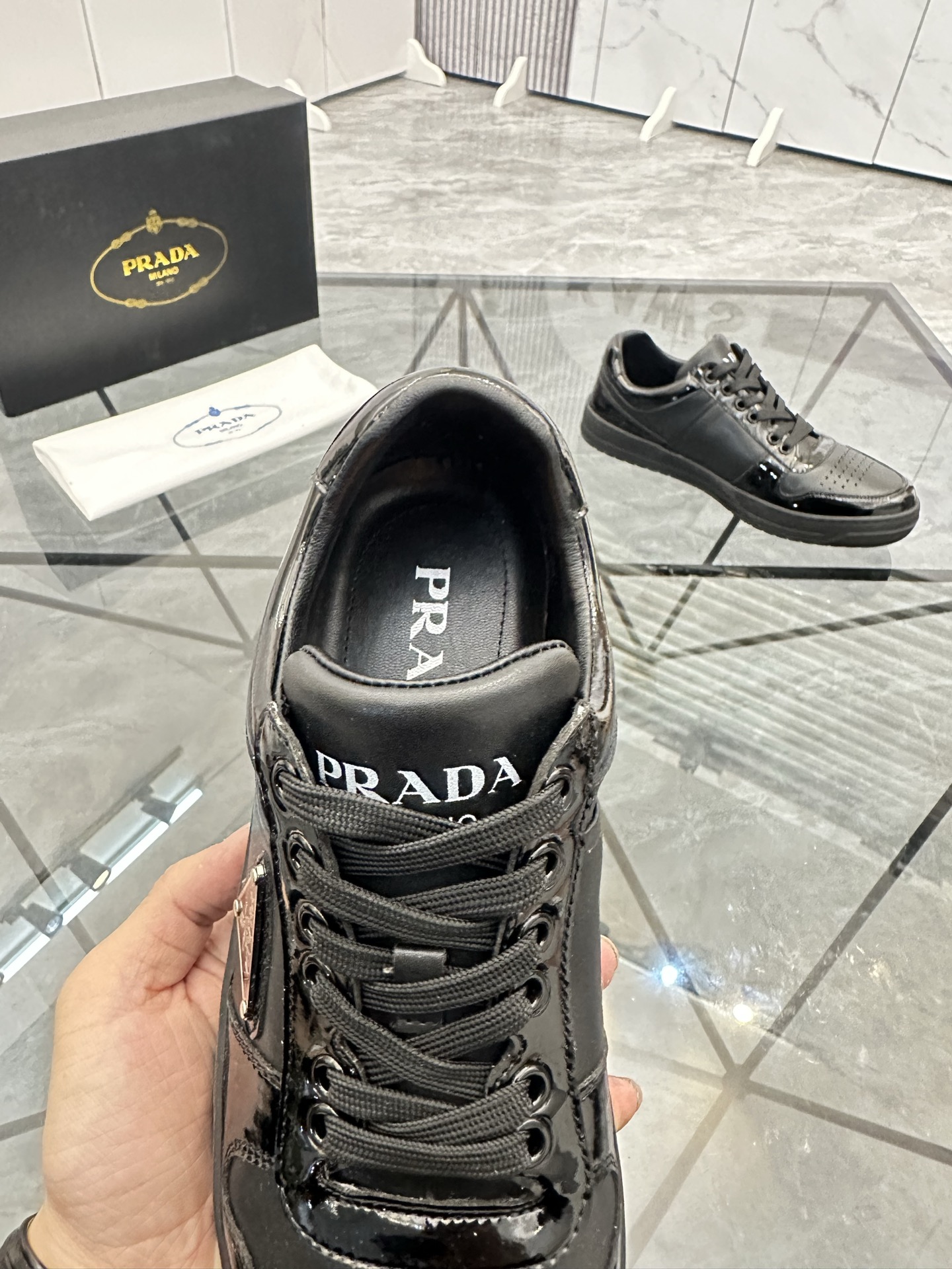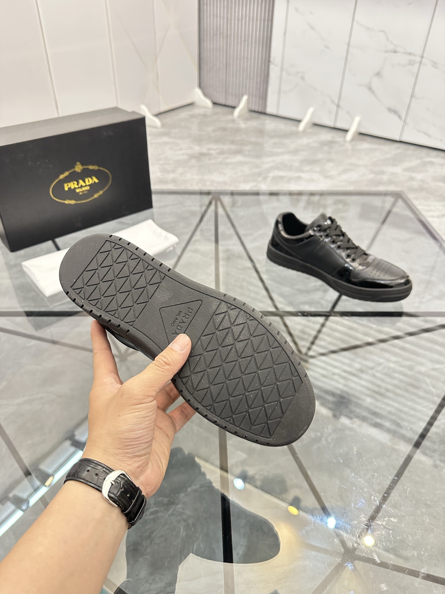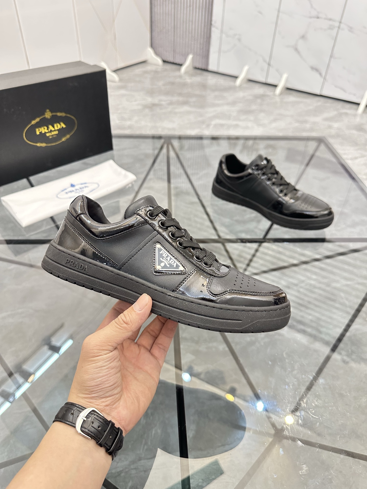 這款鞋子是AAAAA 1:1 質量(非常棒). 使用了和原版一模一樣的材料. 商標部分也保持了和普拉達/Prada一樣. 圖片拍攝是實物鞋子拍攝, 您所收到的實物保證和我們圖片一模一樣.