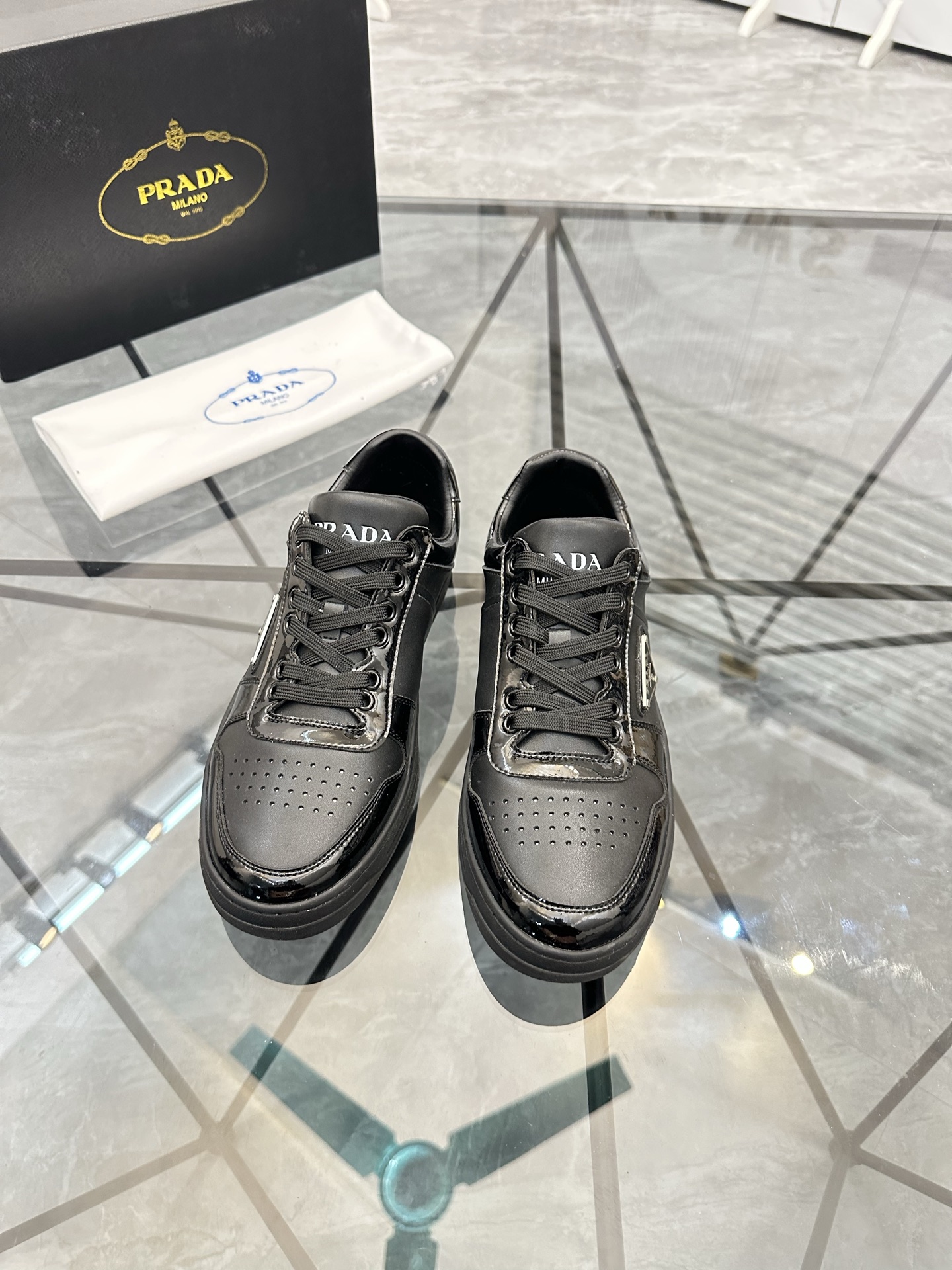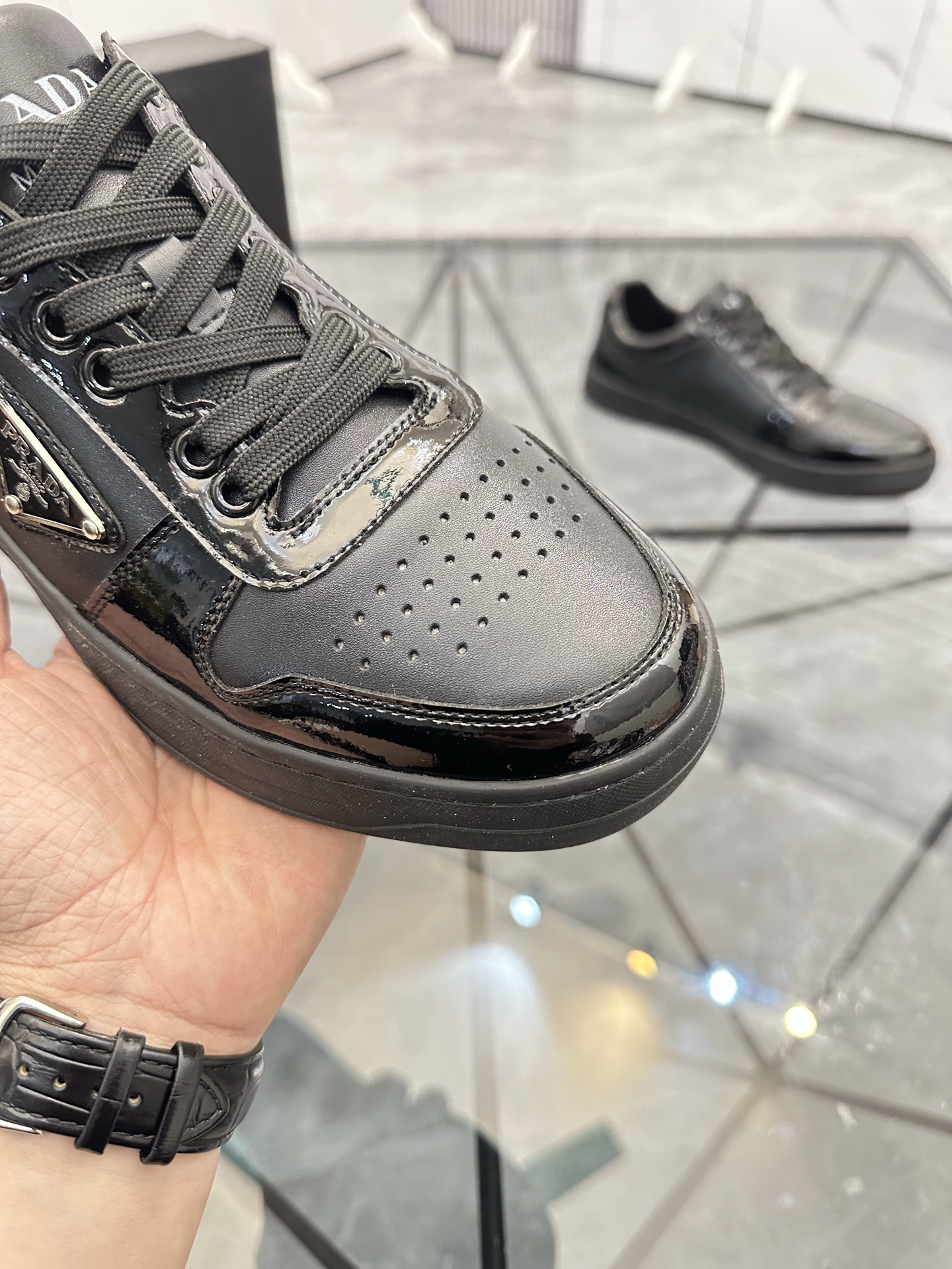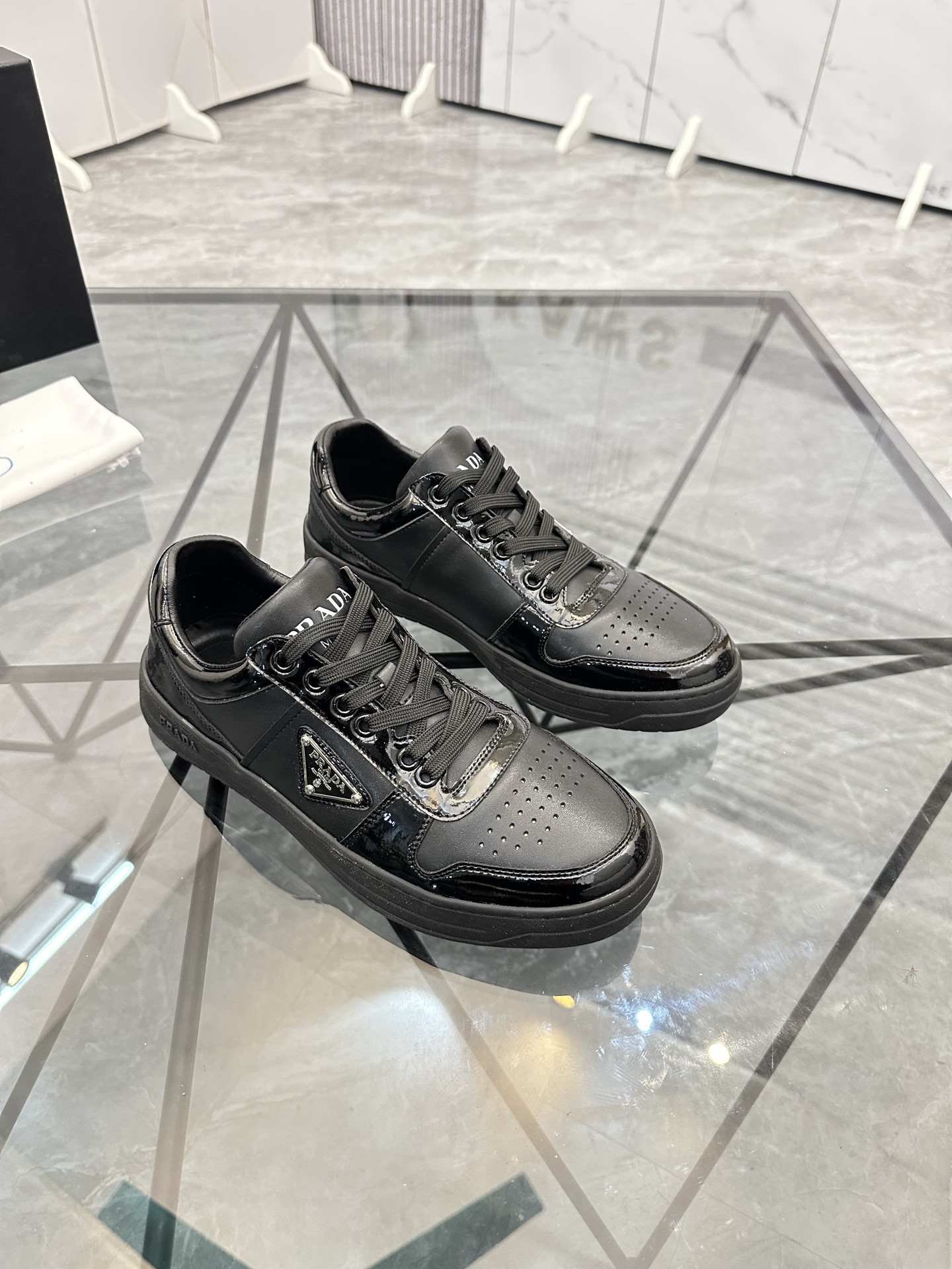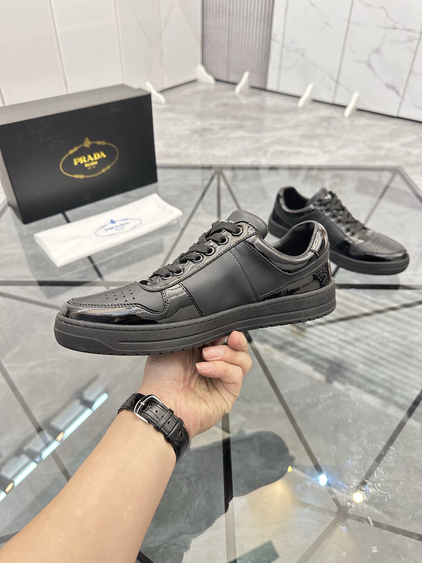 這款鞋子是AAAAA 1:1 質量(非常棒). 使用了和原版一模一樣的材料. 商標部分也保持了和普拉達/Prada一樣. 圖片拍攝是實物鞋子拍攝, 您所收到的實物保證和我們圖片一模一樣.