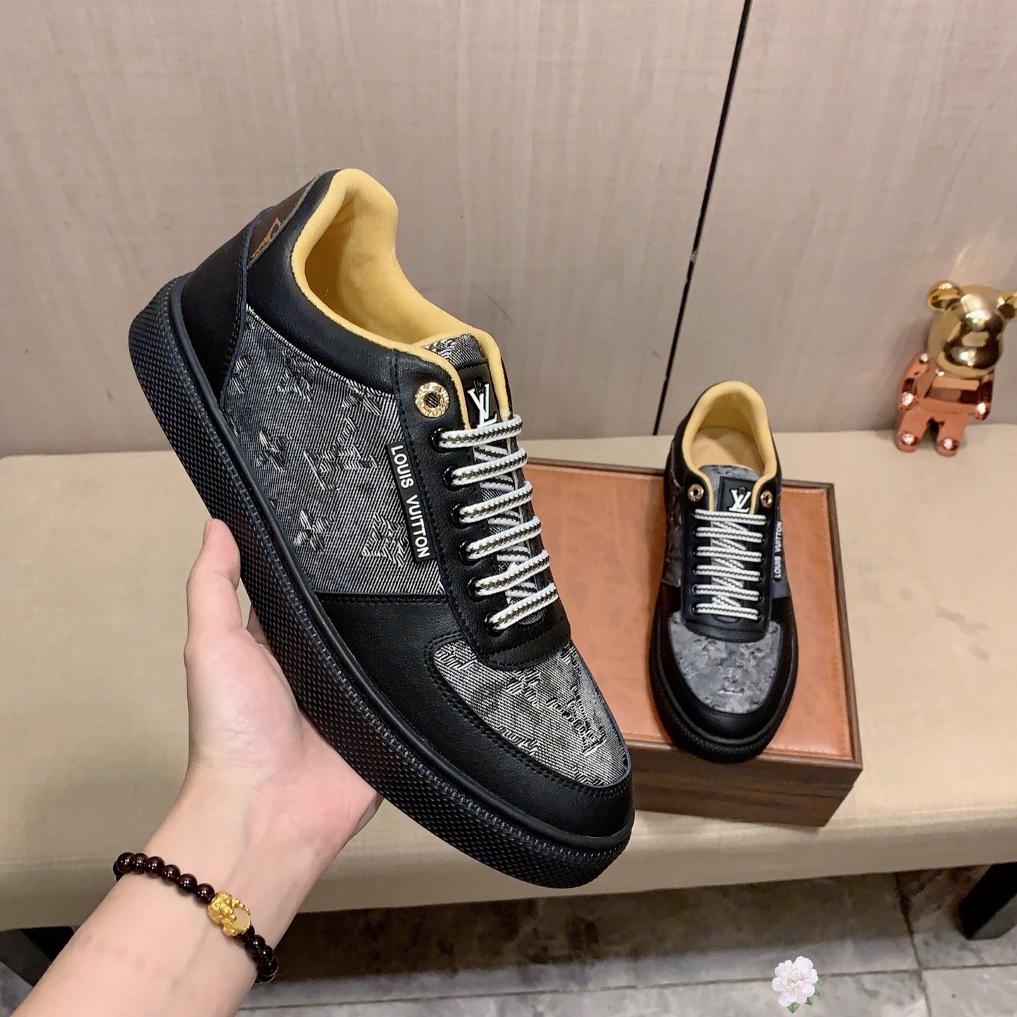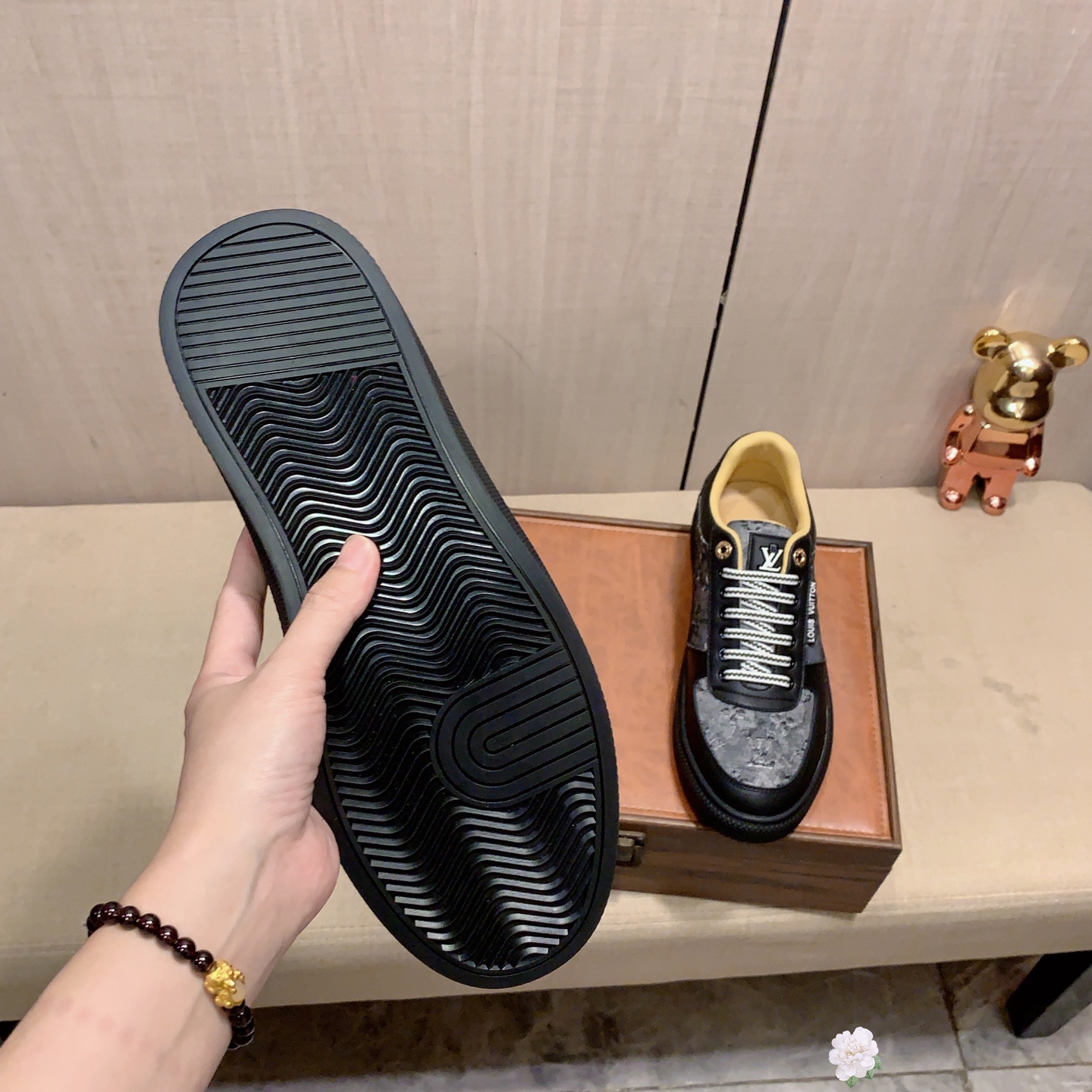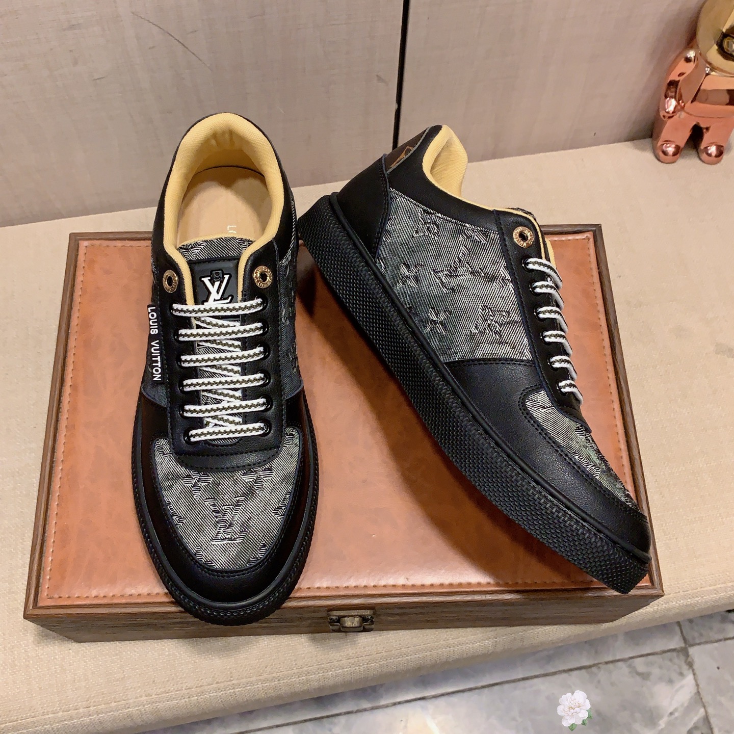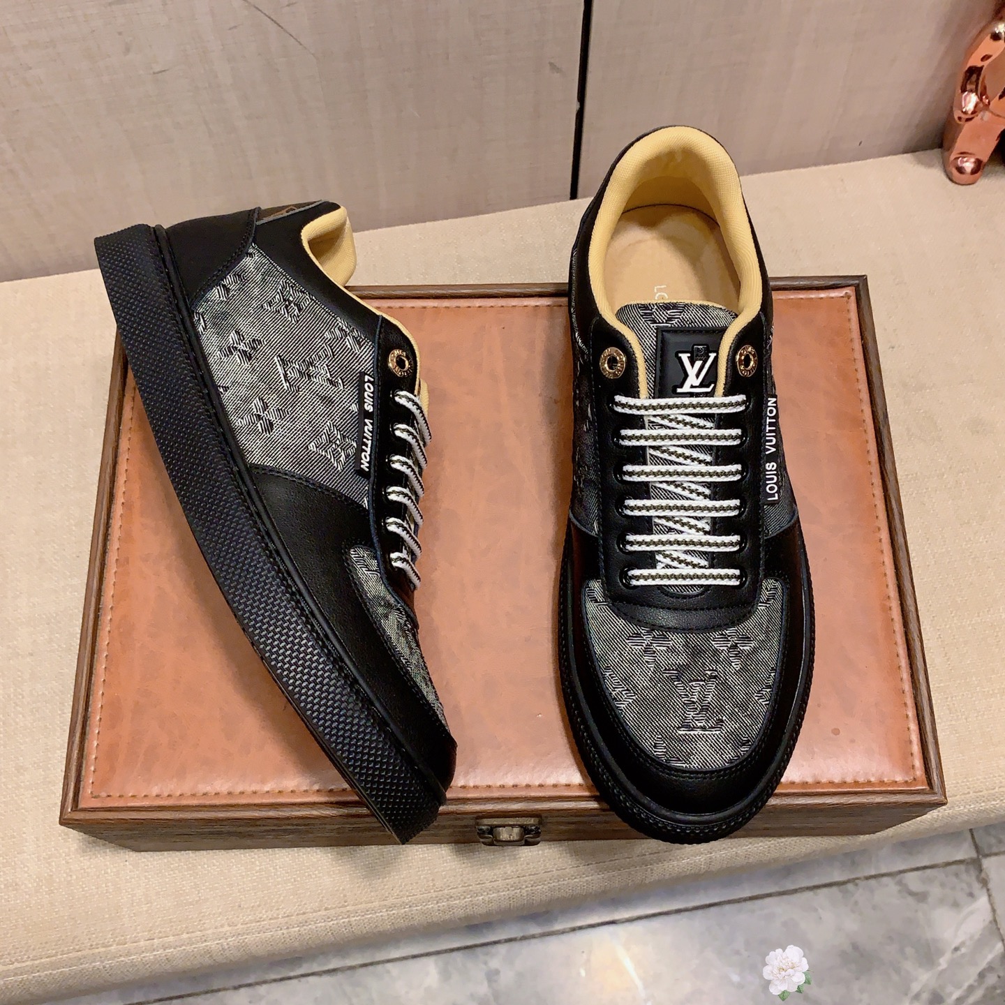 這款鞋子是AAAAA 1:1 質量(非常棒). 使用了和原版一模一樣的材料. 商標部分也保持了和路易威登/Louis Vuitton一樣. 圖片拍攝是實物鞋子拍攝, 您所收到的實物保證和我們圖片一模一樣.