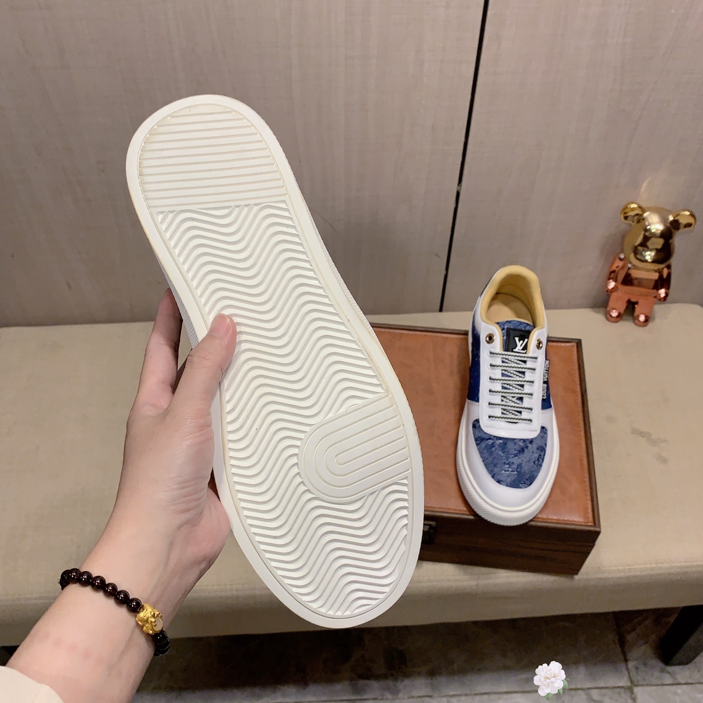 這款鞋子是AAAAA 1:1 質量(非常棒). 使用了和原版一模一樣的材料. 商標部分也保持了和路易威登/Louis Vuitton一樣. 圖片拍攝是實物鞋子拍攝, 您所收到的實物保證和我們圖片一模一樣.