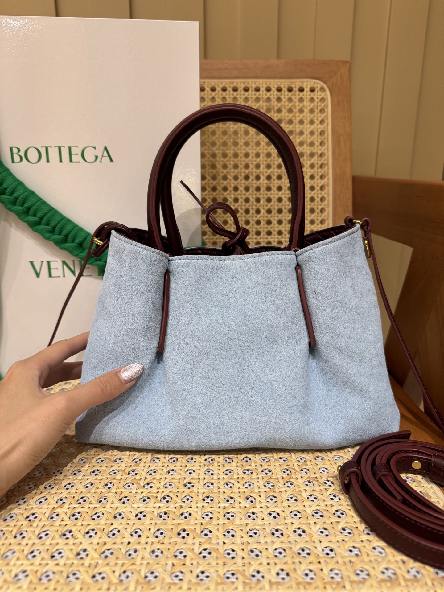 這款包包是AAAAA 1:1 質量(非常棒). 使用了和原版一模一樣的材料. 商標部分也保持了和葆蝶家/Bottega Veneta一樣. 圖片拍攝是實物包包拍攝, 您所收到的實物保證和我們圖片一模一樣.