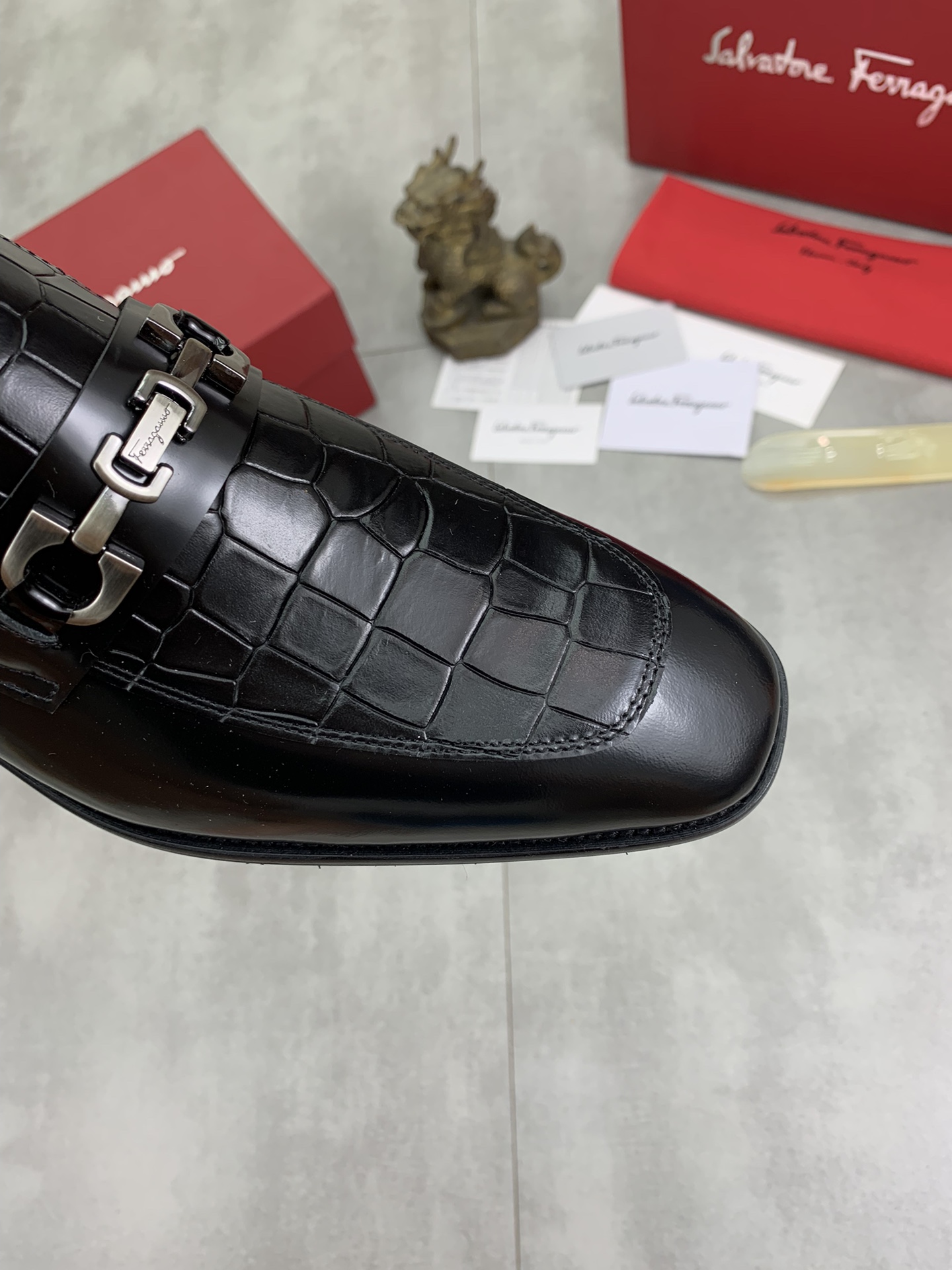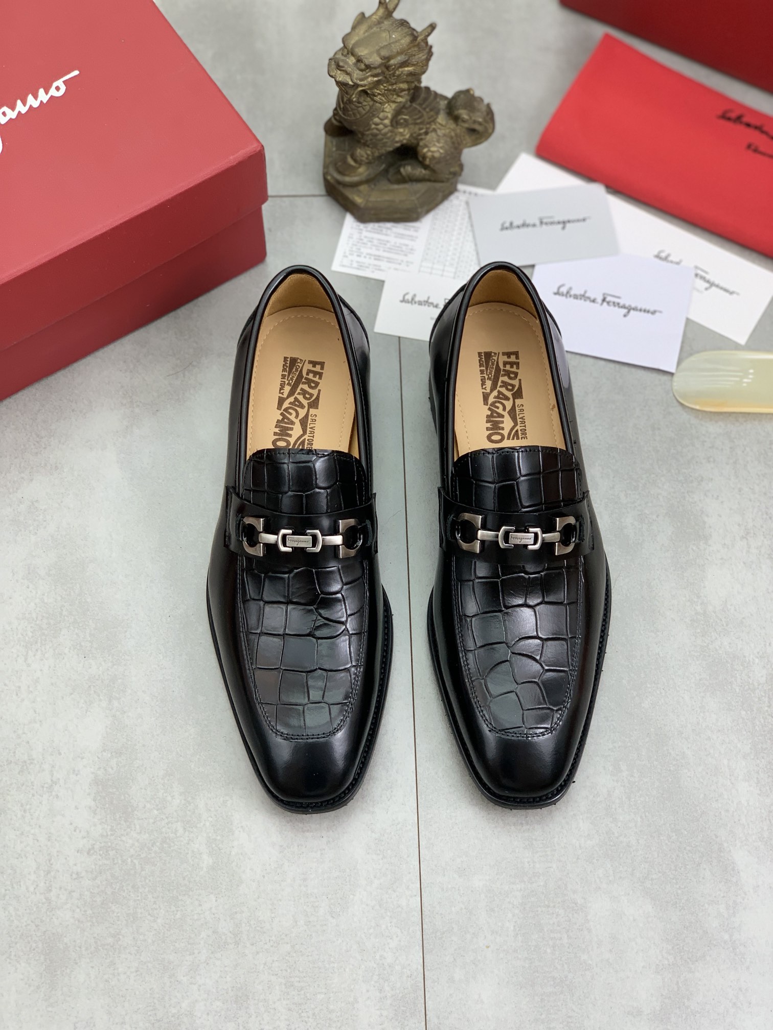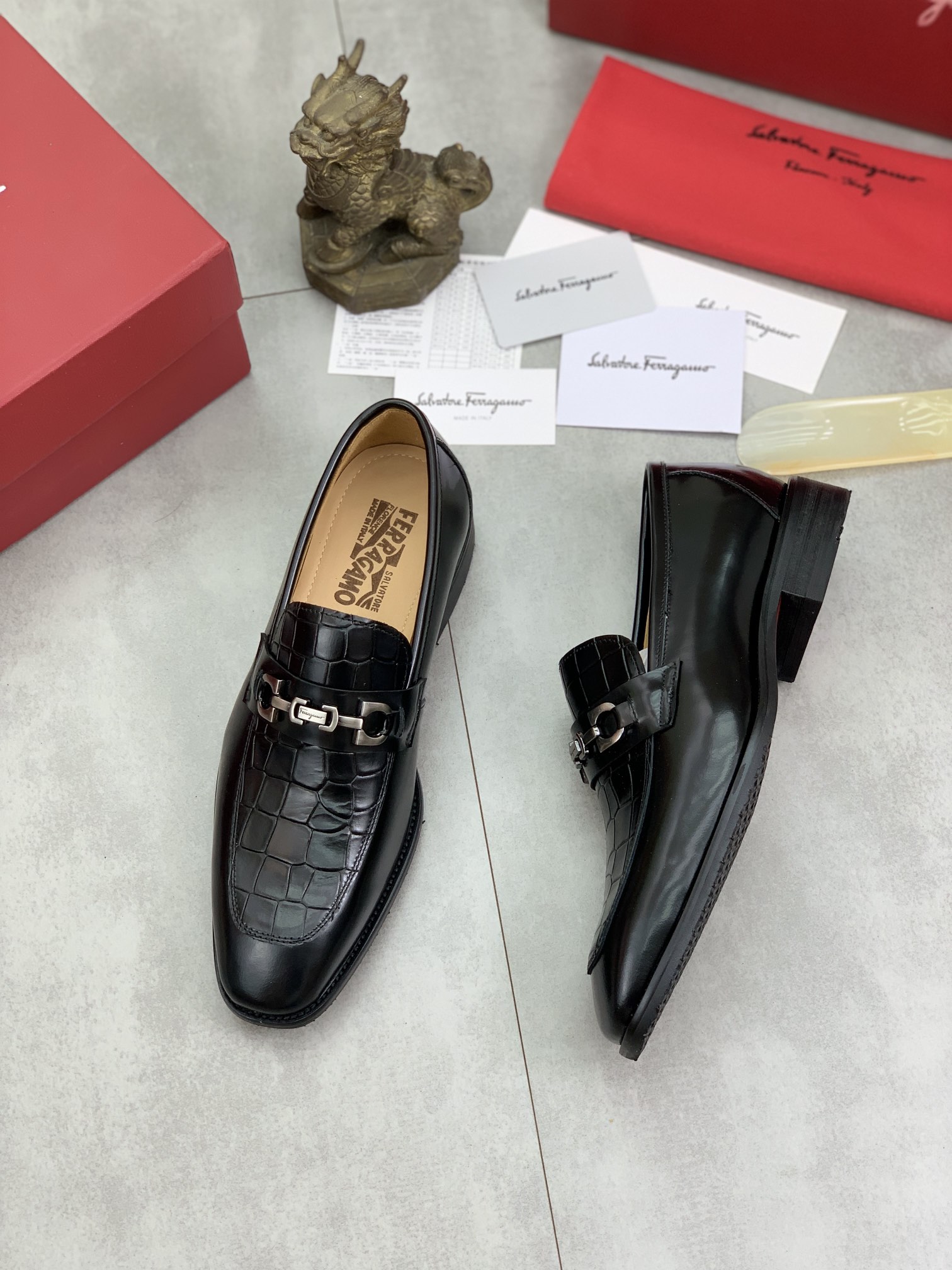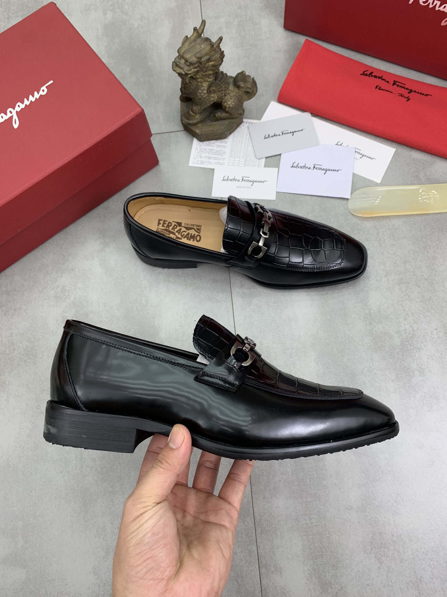 這款鞋子是AAAAA 1:1 質量(非常棒). 使用了和原版一模一樣的材料. 商標部分也保持了和菲拉格慕/Salvatore Ferragamo一樣. 圖片拍攝是實物鞋子拍攝, 您所收到的實物保證和我們圖片一模一樣.