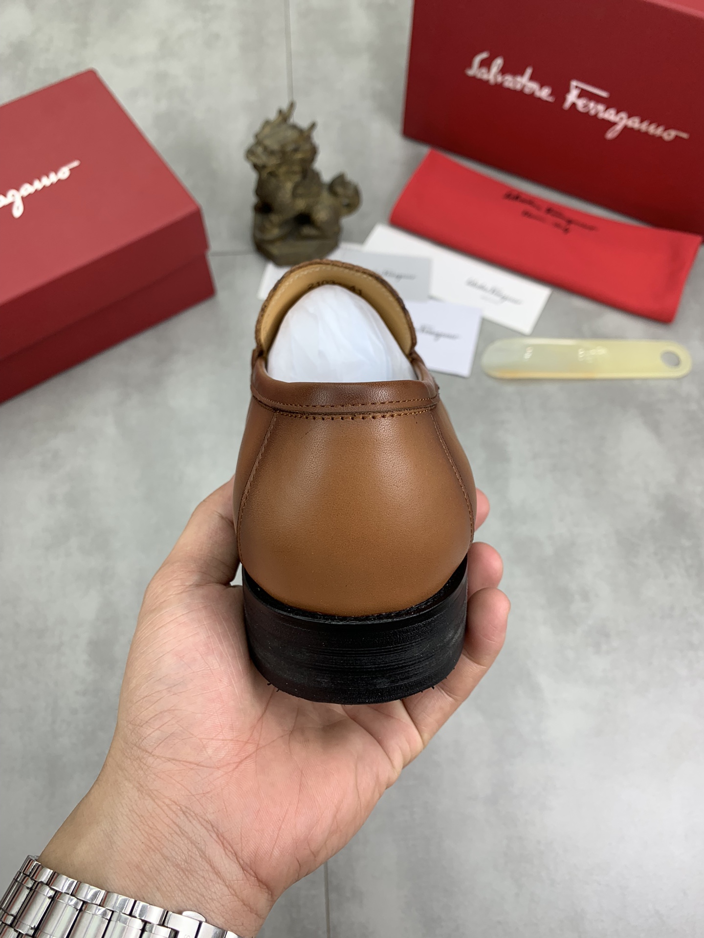這款鞋子是AAAAA 1:1 質量(非常棒). 使用了和原版一模一樣的材料. 商標部分也保持了和菲拉格慕/Salvatore Ferragamo一樣. 圖片拍攝是實物鞋子拍攝, 您所收到的實物保證和我們圖片一模一樣.