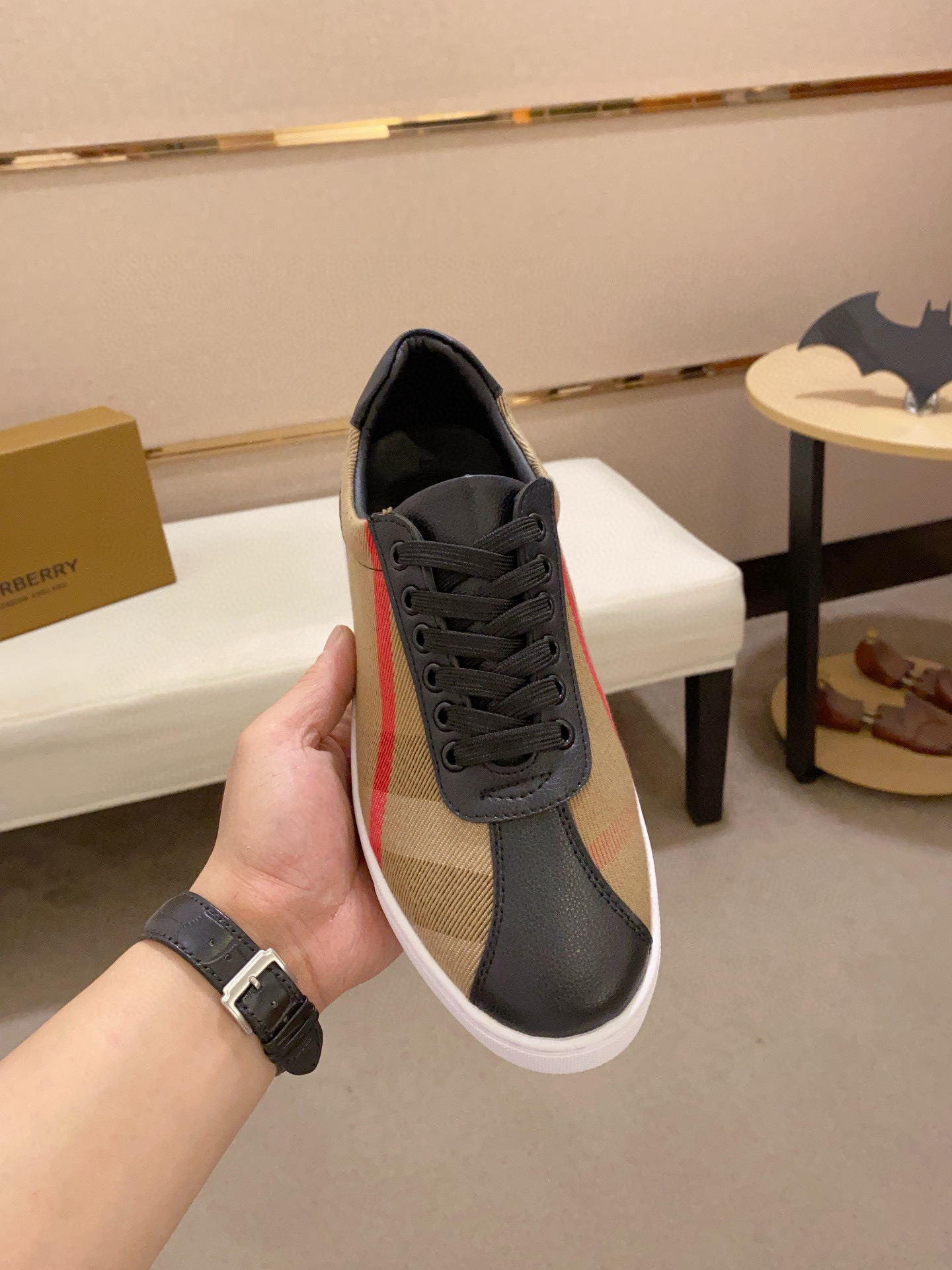 這款鞋子是AAAAA 1:1 質量(非常棒). 使用了和原版一模一樣的材料. 商標部分也保持了和巴寶莉/Burberry一樣. 圖片拍攝是實物鞋子拍攝, 您所收到的實物保證和我們圖片一模一樣.