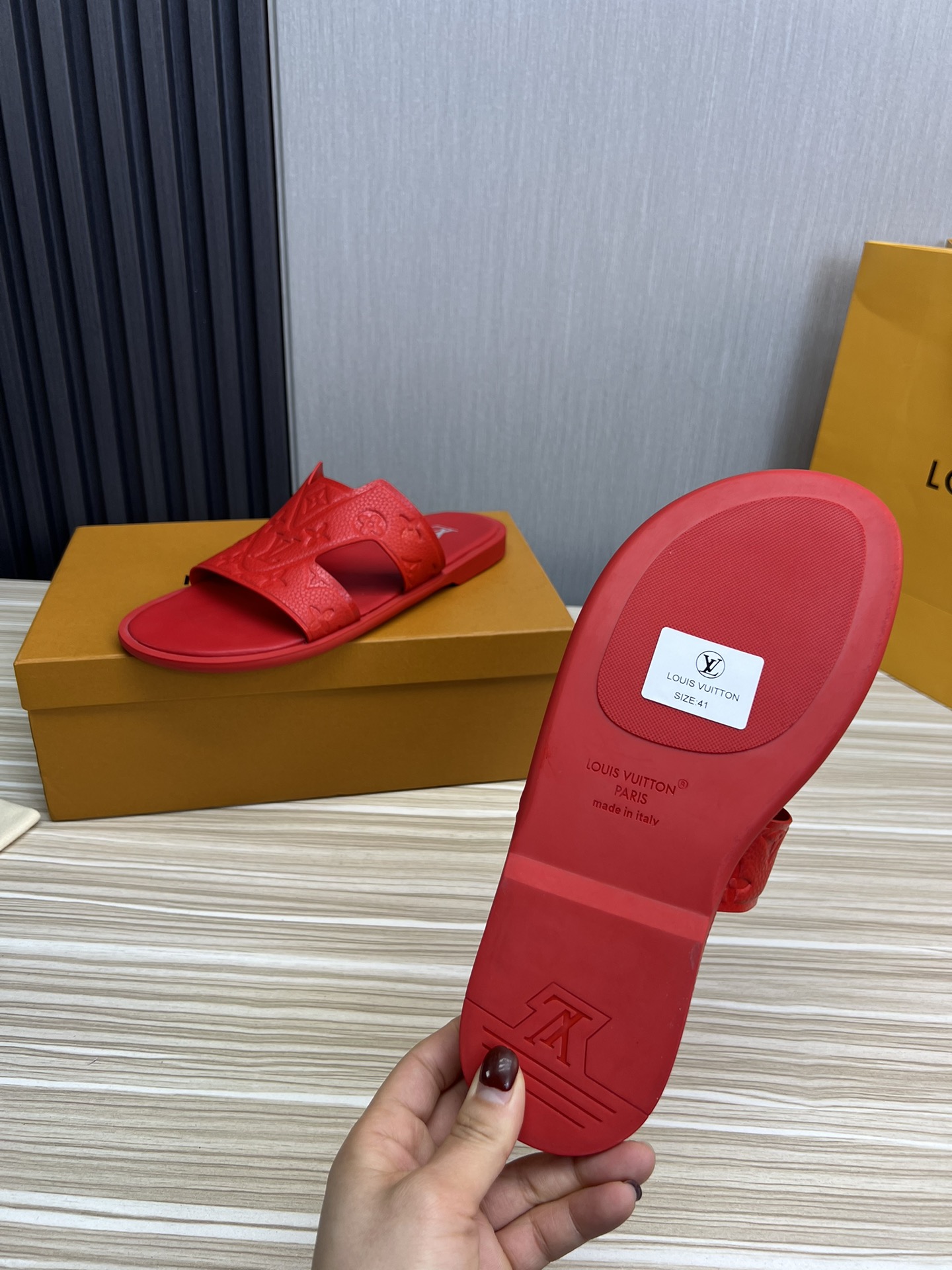 這款鞋子是AAAAA 1:1 質量(非常棒). 使用了和原版一模一樣的材料. 商標部分也保持了和路易威登/Louis Vuitton一樣. 圖片拍攝是實物鞋子拍攝, 您所收到的實物保證和我們圖片一模一樣.