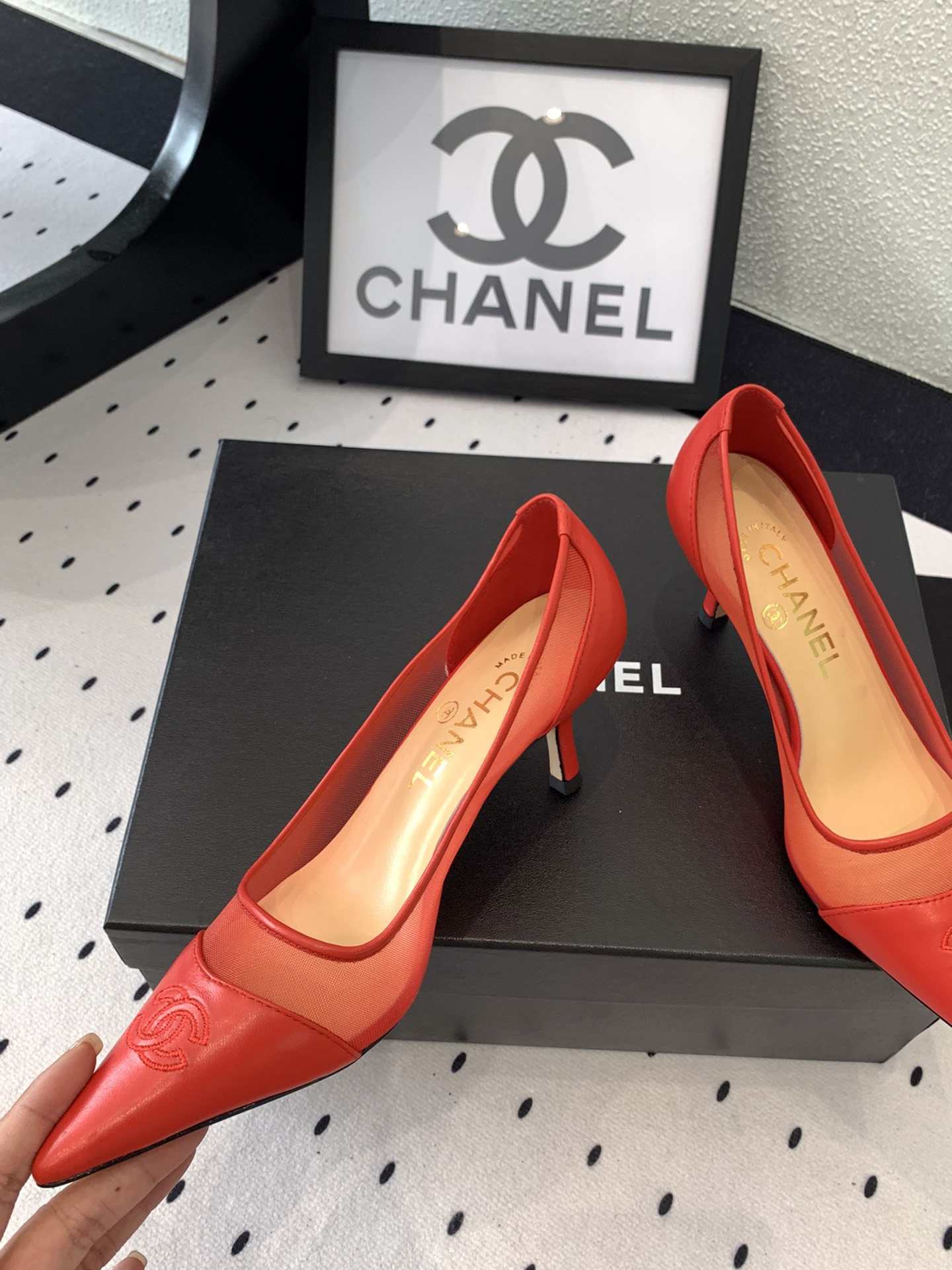 這款鞋子是AAAAA 1:1 質量(非常棒). 使用了和原版一模一樣的材料. 商標部分也保持了和香奈兒/Chanel一樣. 圖片拍攝是實物鞋子拍攝, 您所收到的實物保證和我們圖片一模一樣.