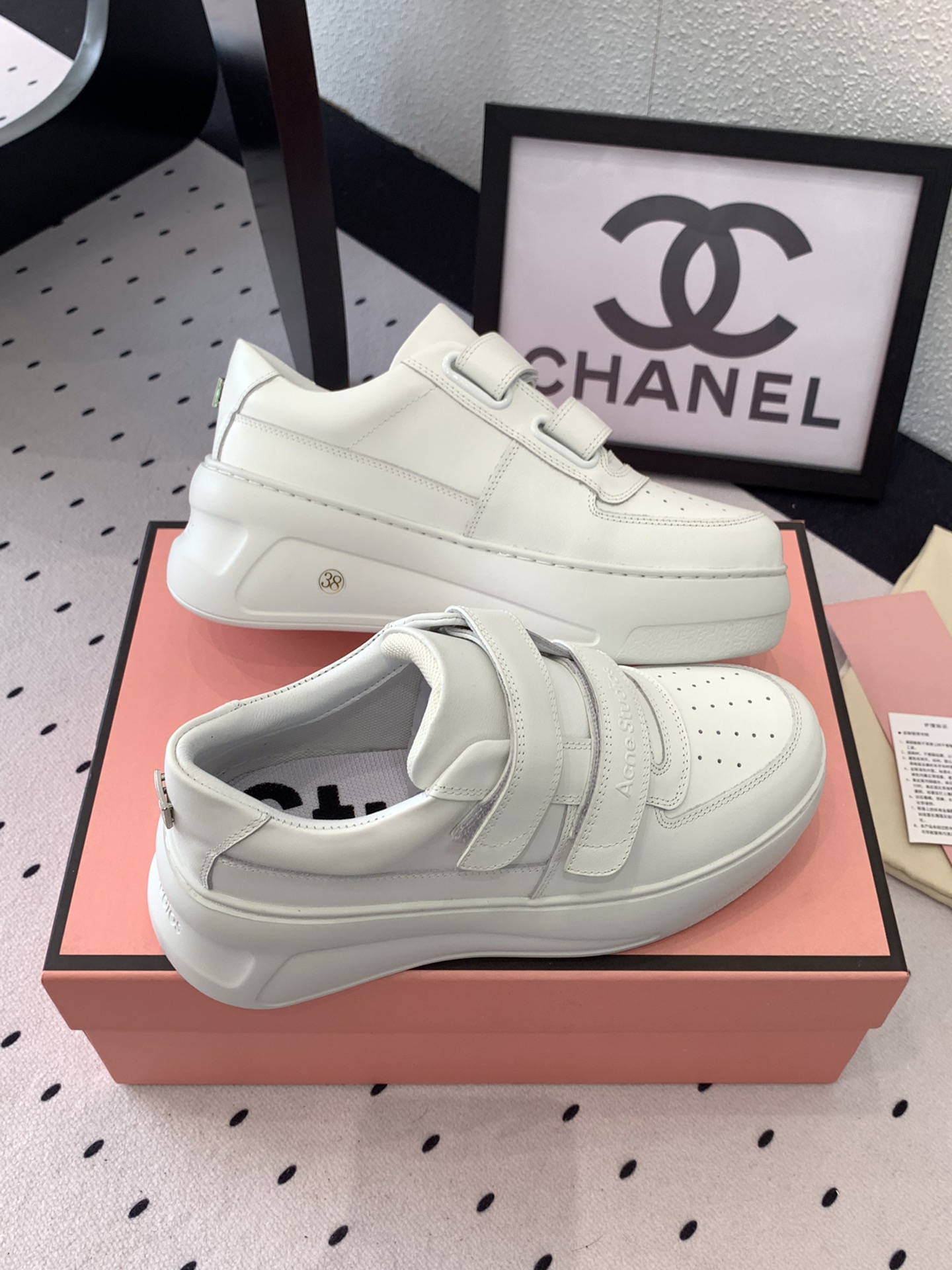 這款鞋子是AAAAA 1:1 質量(非常棒). 使用了和原版一模一樣的材料. 商標部分也保持了和Acne一樣. 圖片拍攝是實物鞋子拍攝, 您所收到的實物保證和我們圖片一模一樣.