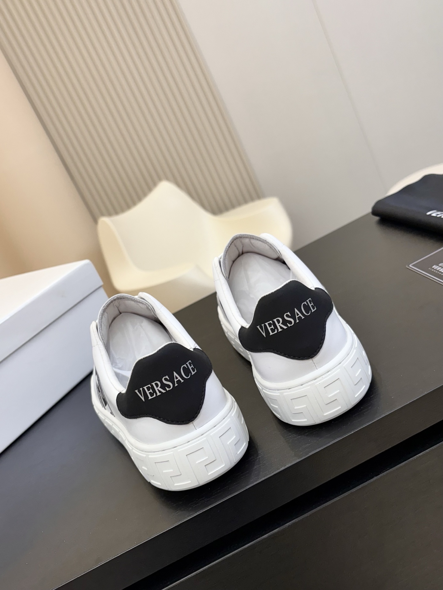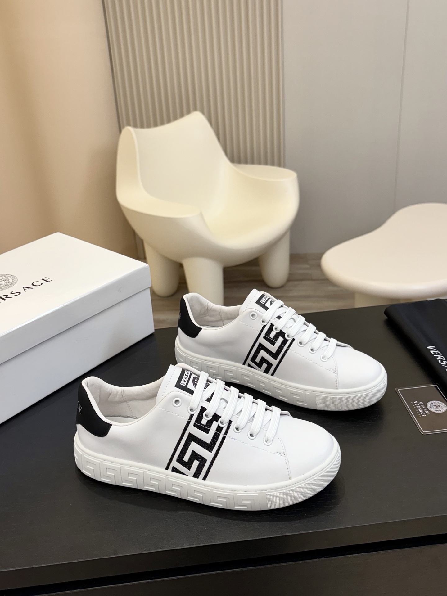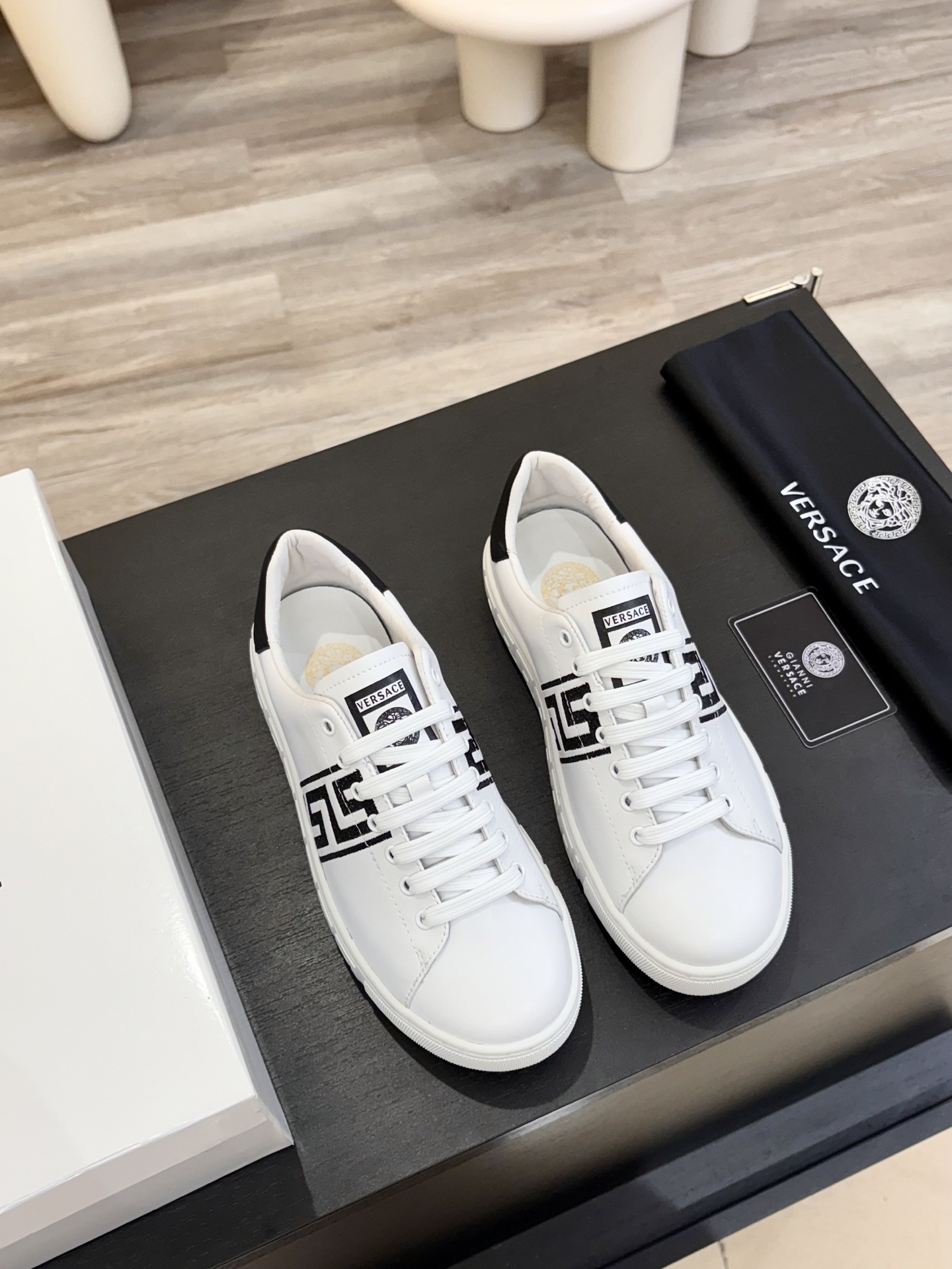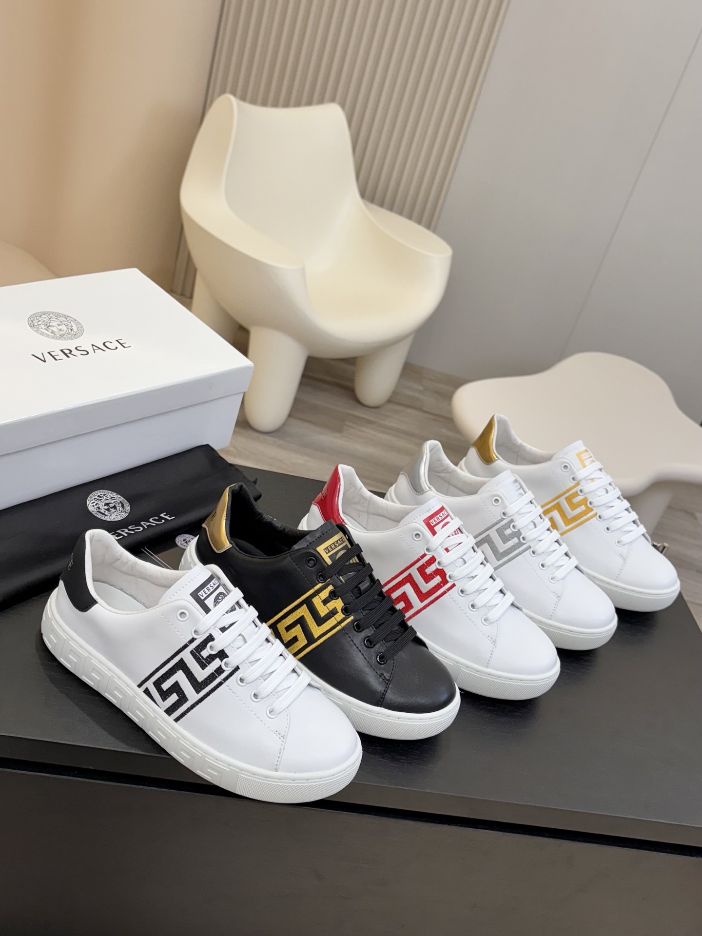 這款鞋子是AAAAA 1:1 質量(非常棒). 使用了和原版一模一樣的材料. 商標部分也保持了和范思哲/Versace一樣. 圖片拍攝是實物鞋子拍攝, 您所收到的實物保證和我們圖片一模一樣.