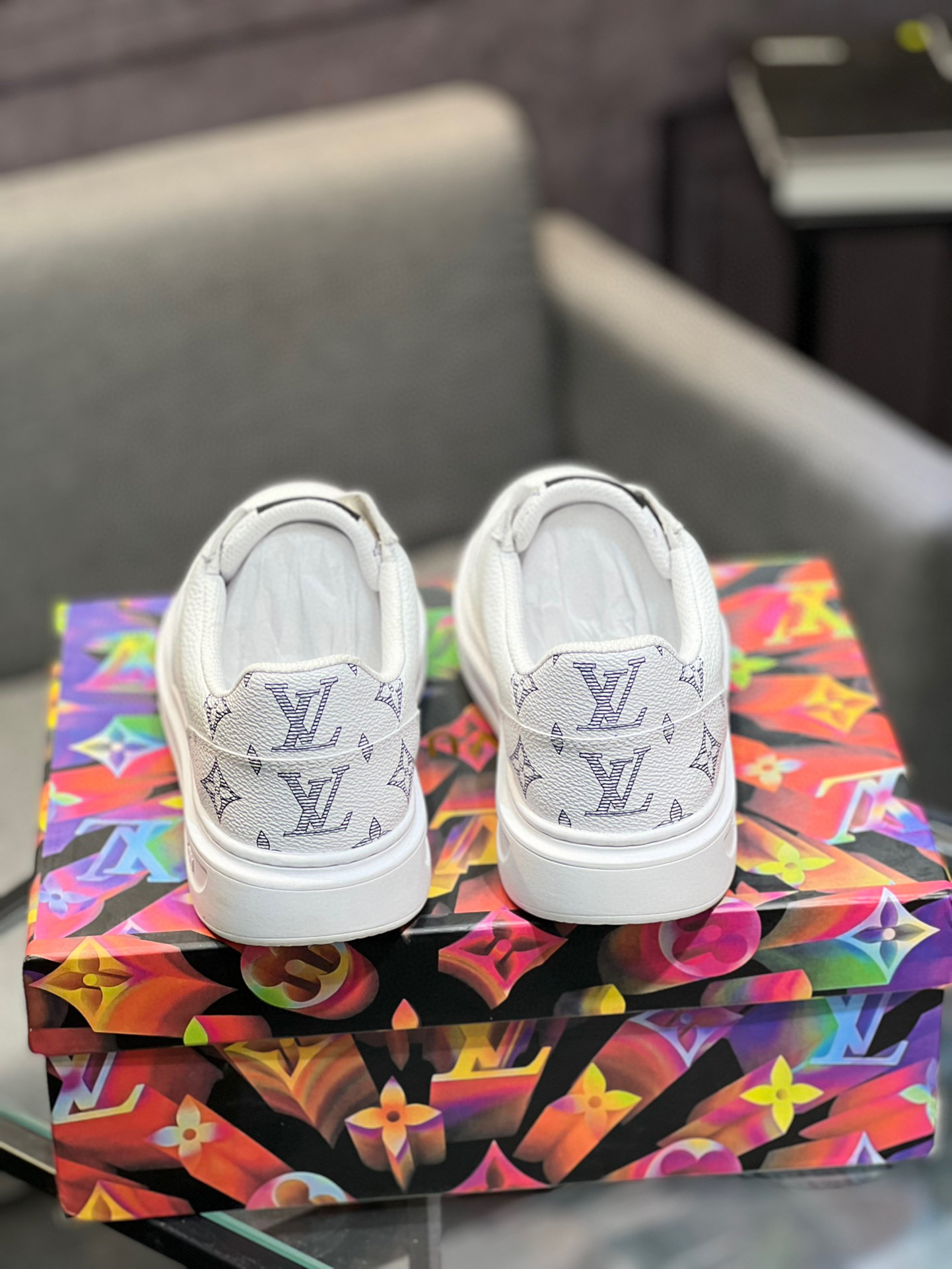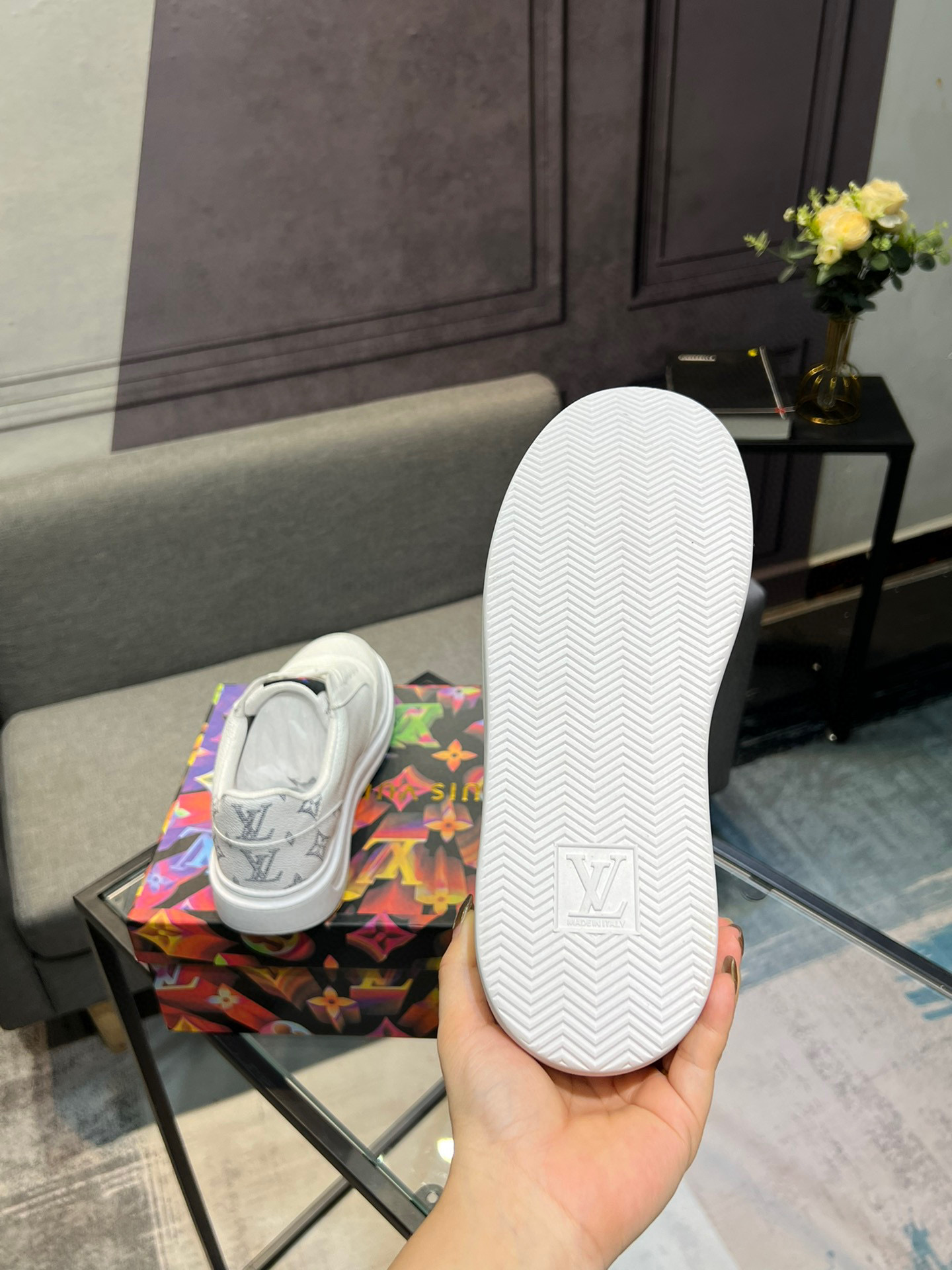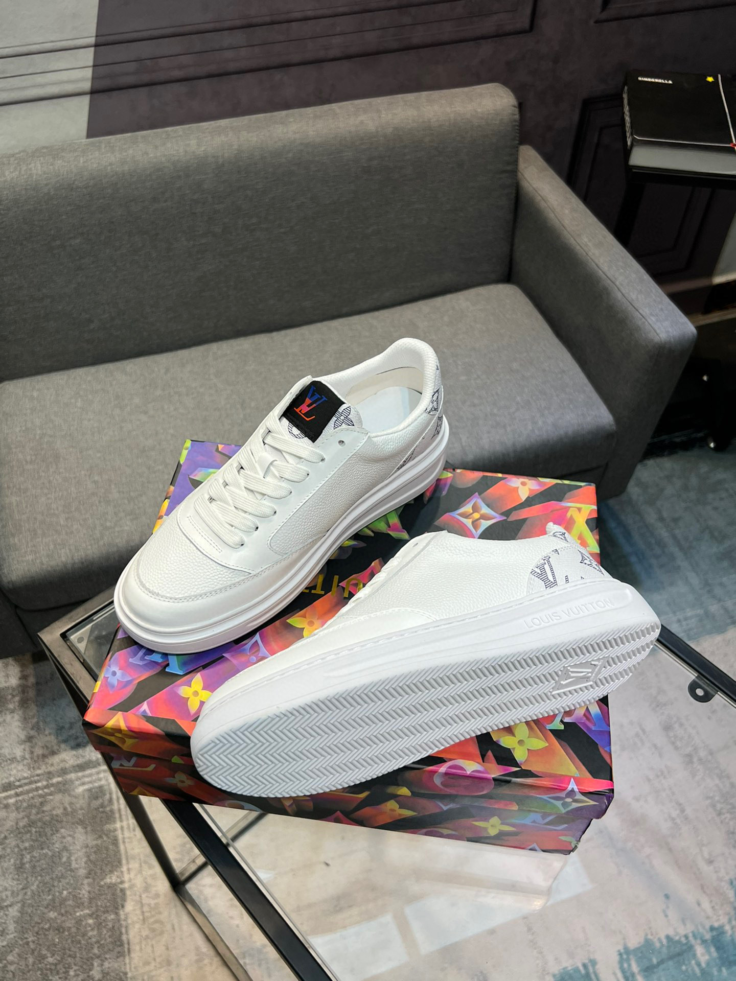 這款鞋子是AAAAA 1:1 質量(非常棒). 使用了和原版一模一樣的材料. 商標部分也保持了和路易威登/Louis Vuitton一樣. 圖片拍攝是實物鞋子拍攝, 您所收到的實物保證和我們圖片一模一樣.