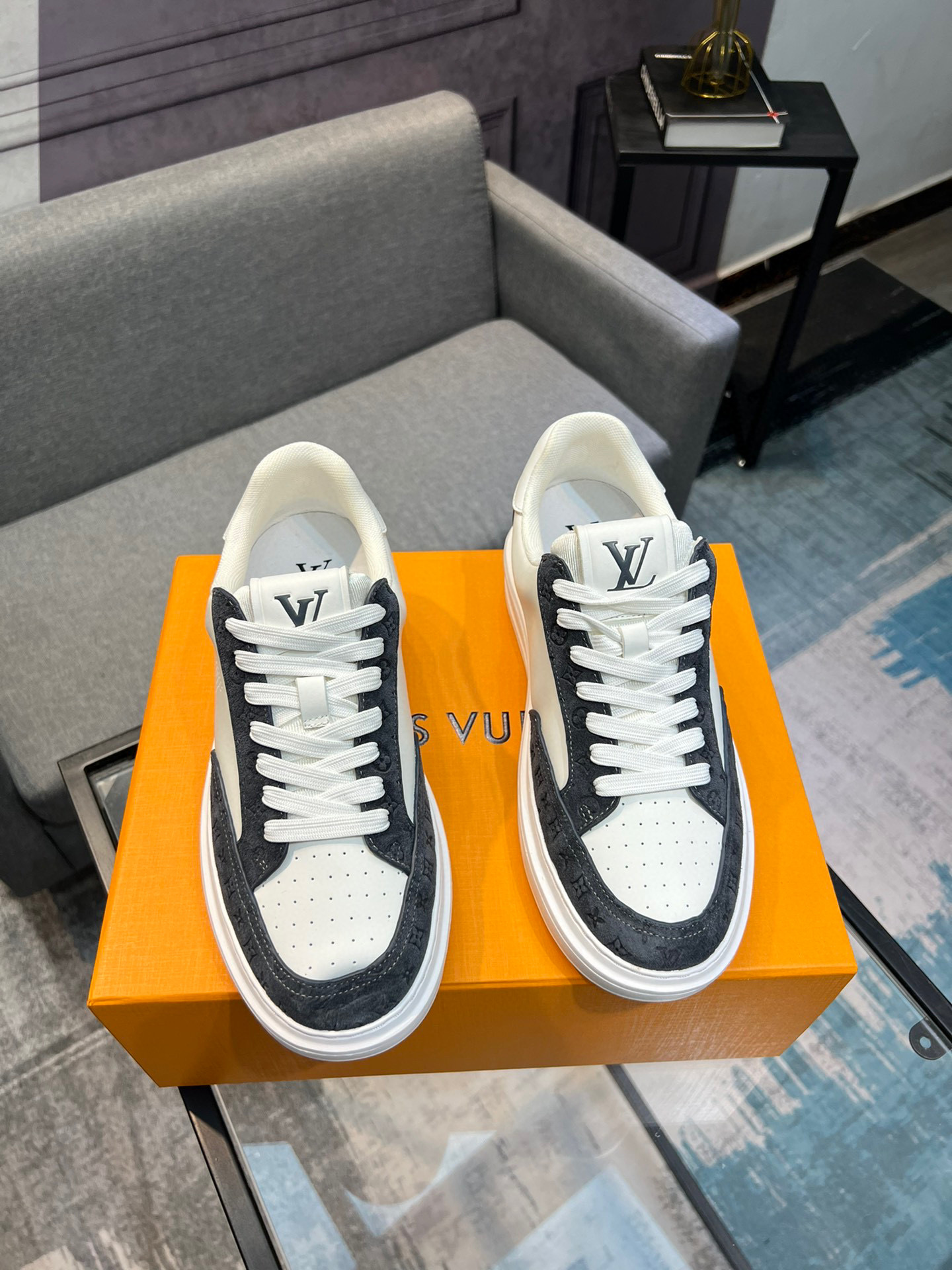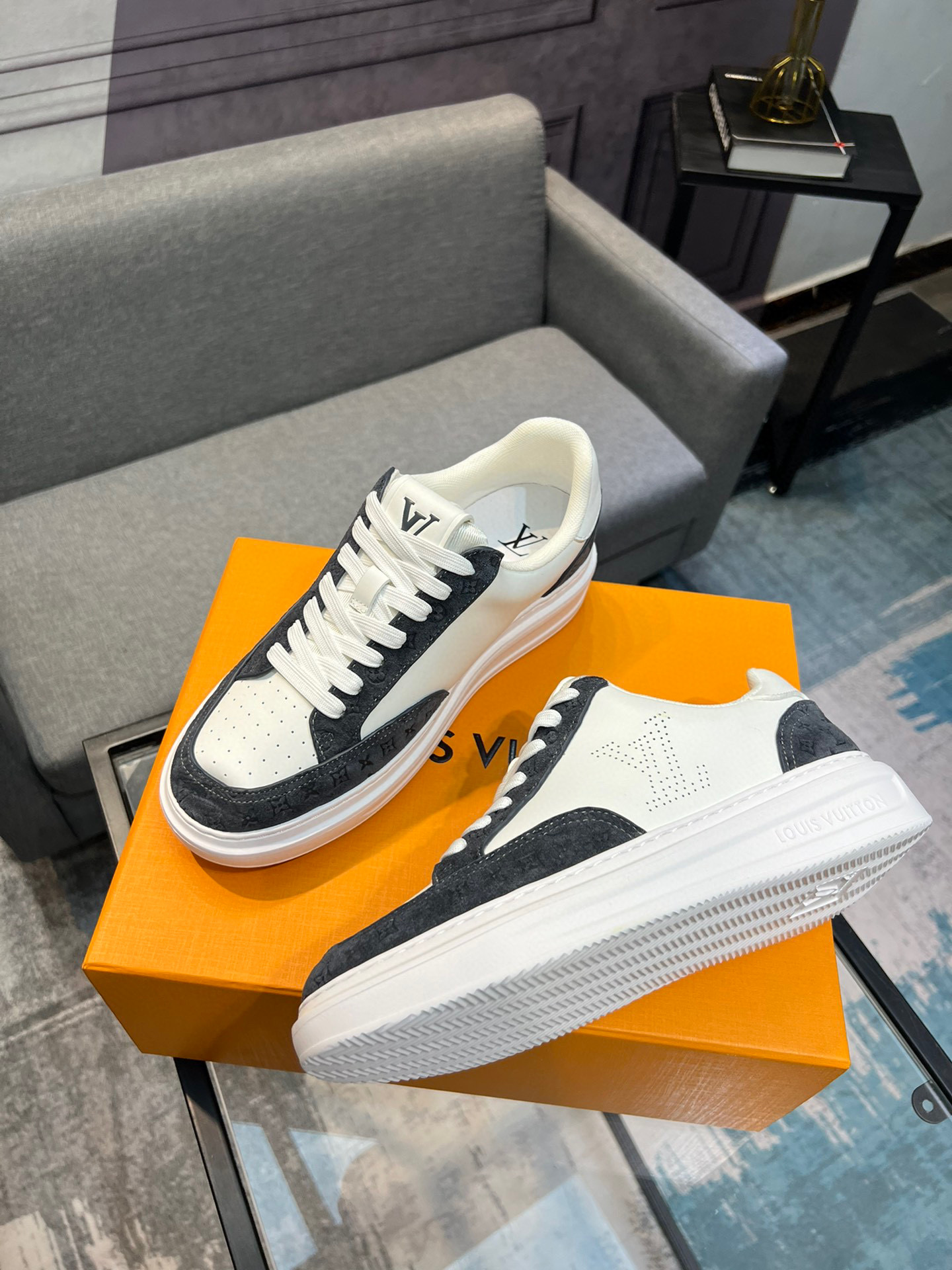 這款鞋子是AAAAA 1:1 質量(非常棒). 使用了和原版一模一樣的材料. 商標部分也保持了和路易威登/Louis Vuitton一樣. 圖片拍攝是實物鞋子拍攝, 您所收到的實物保證和我們圖片一模一樣.