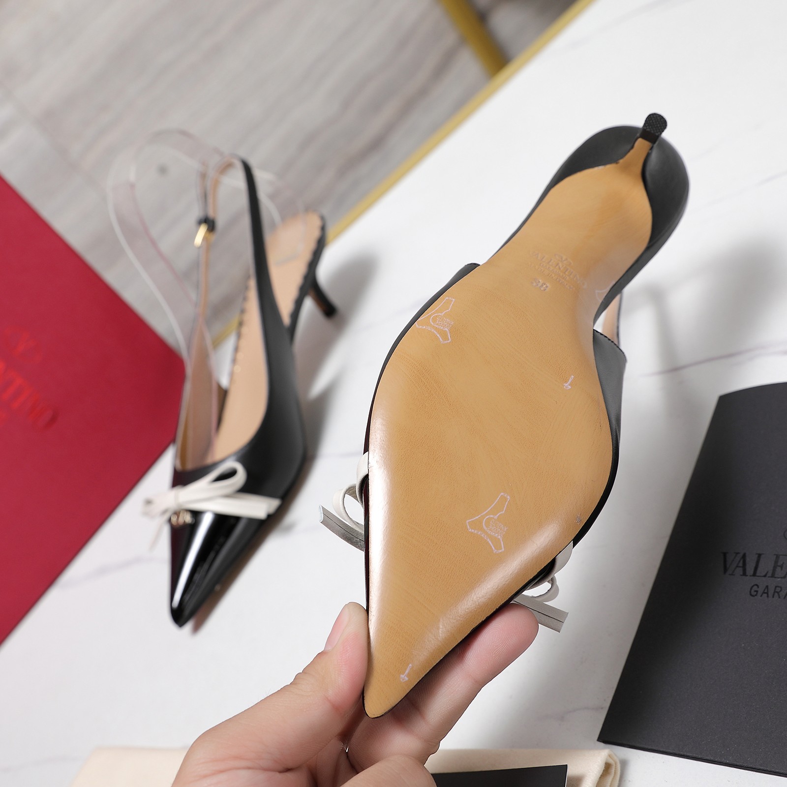 這款鞋子是AAAAA 1:1 質量(非常棒). 使用了和原版一模一樣的材料. 商標部分也保持了和瓦倫蒂諾/Valentino一樣. 圖片拍攝是實物鞋子拍攝, 您所收到的實物保證和我們圖片一模一樣.
