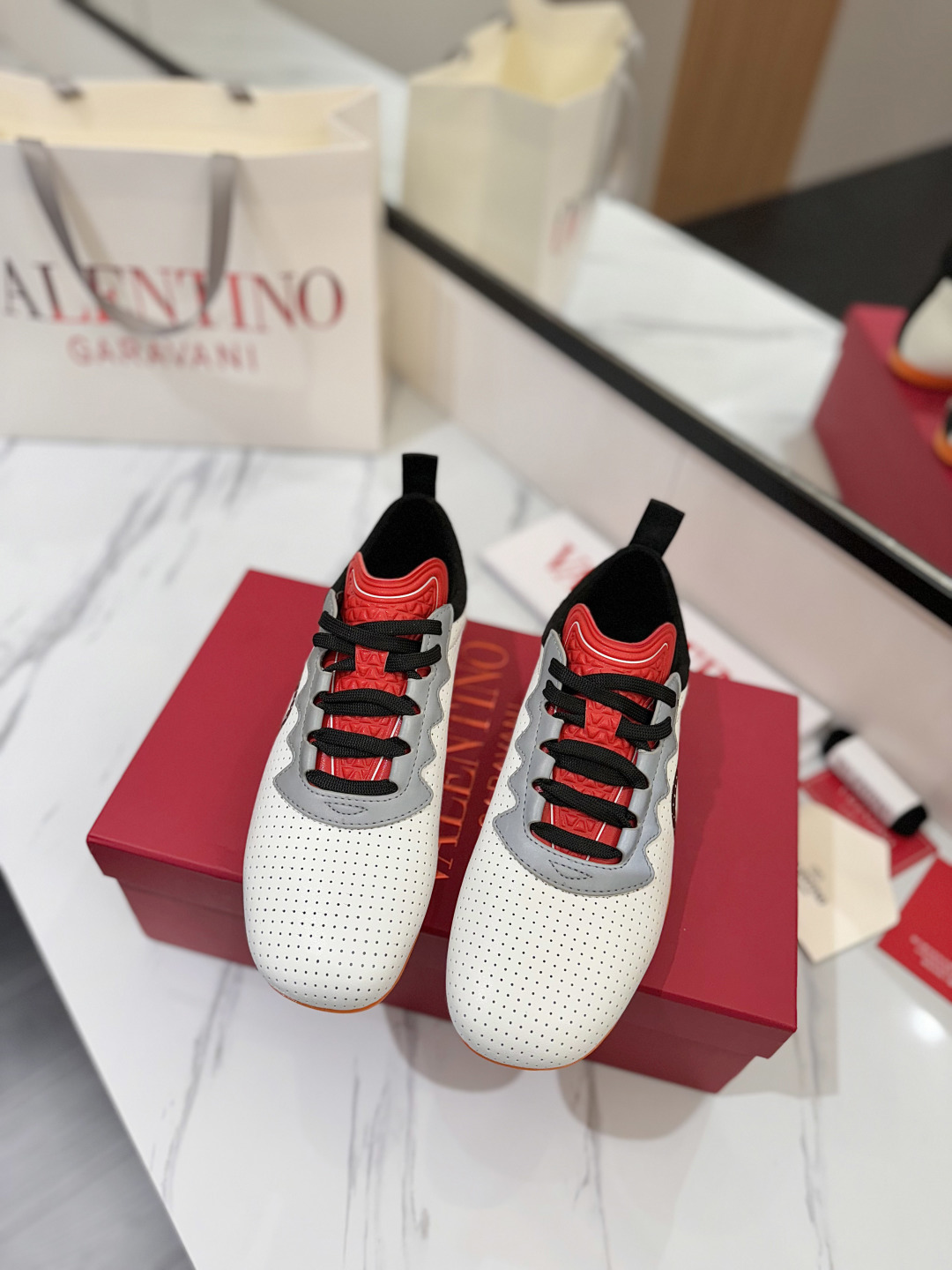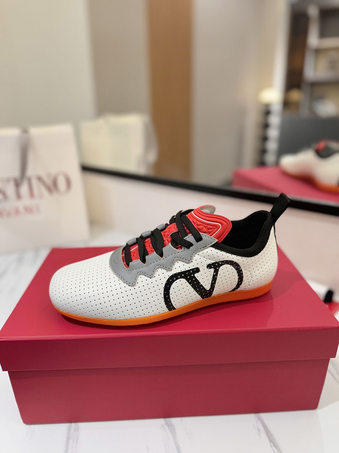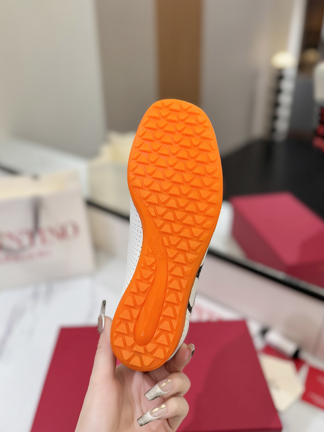 這款鞋子是AAAAA 1:1 質量(非常棒). 使用了和原版一模一樣的材料. 商標部分也保持了和瓦倫蒂諾/Valentino一樣. 圖片拍攝是實物鞋子拍攝, 您所收到的實物保證和我們圖片一模一樣.