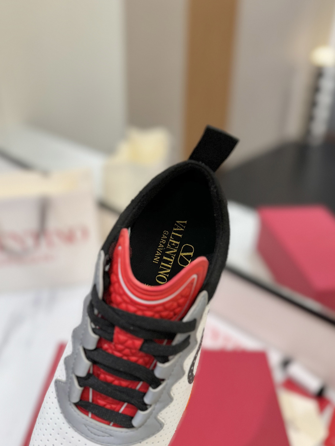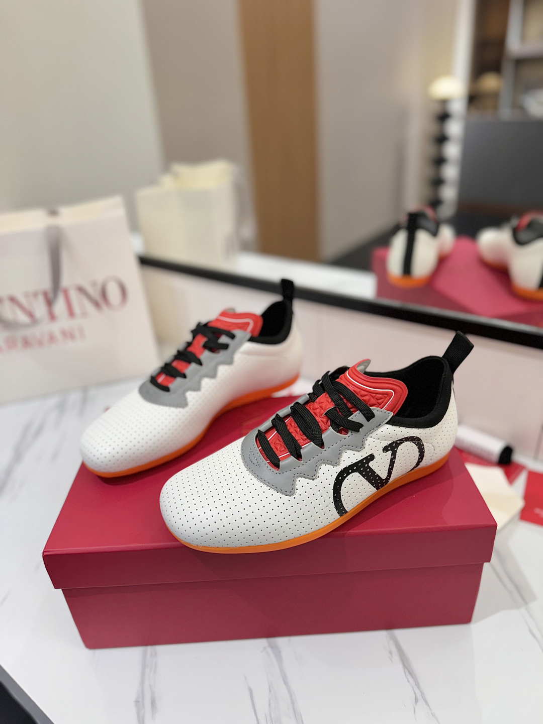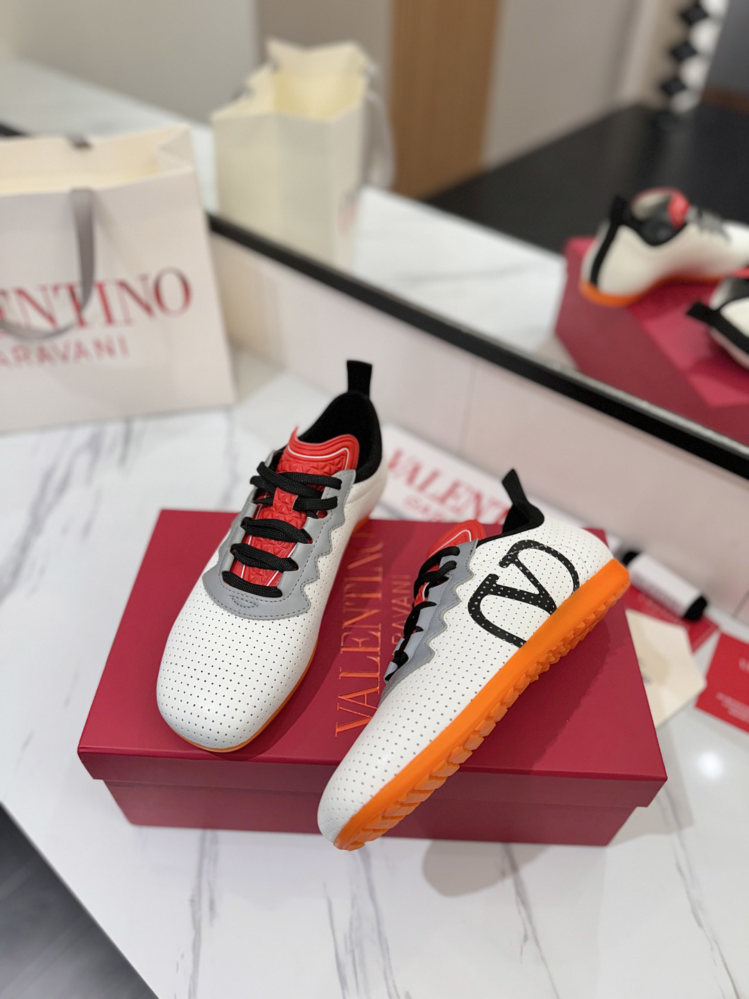 這款鞋子是AAAAA 1:1 質量(非常棒). 使用了和原版一模一樣的材料. 商標部分也保持了和瓦倫蒂諾/Valentino一樣. 圖片拍攝是實物鞋子拍攝, 您所收到的實物保證和我們圖片一模一樣.