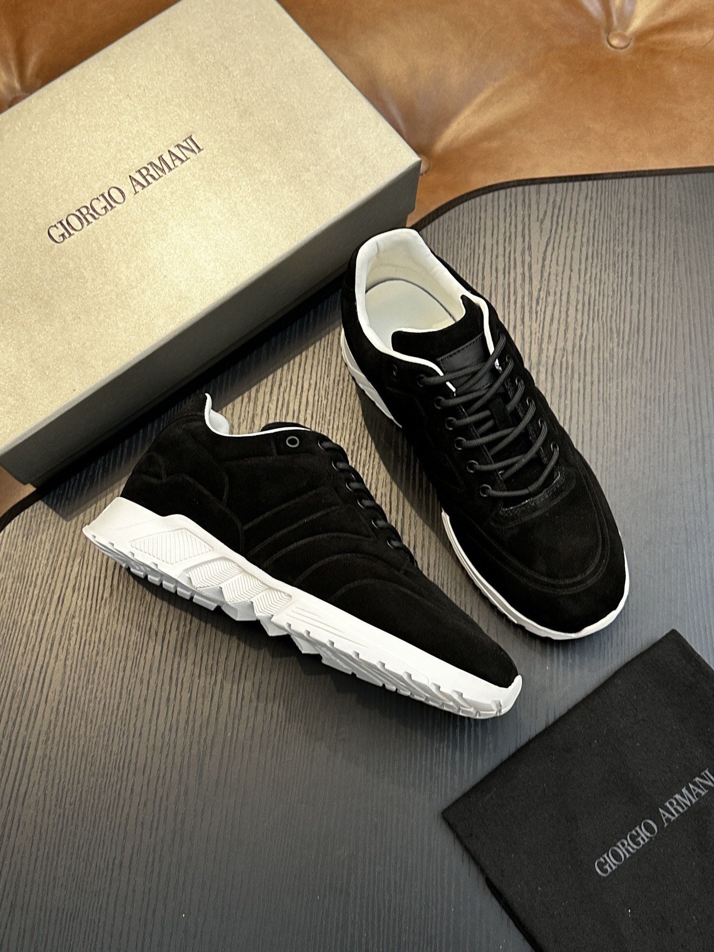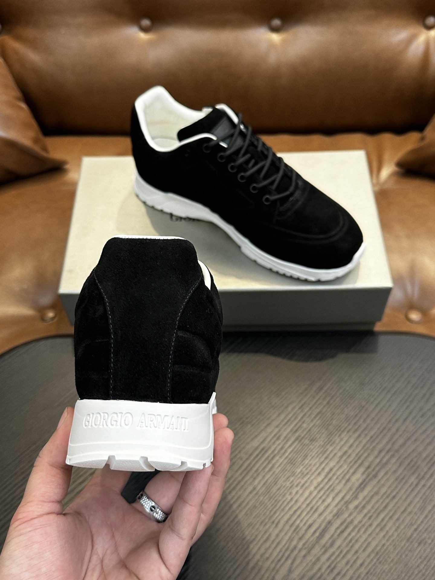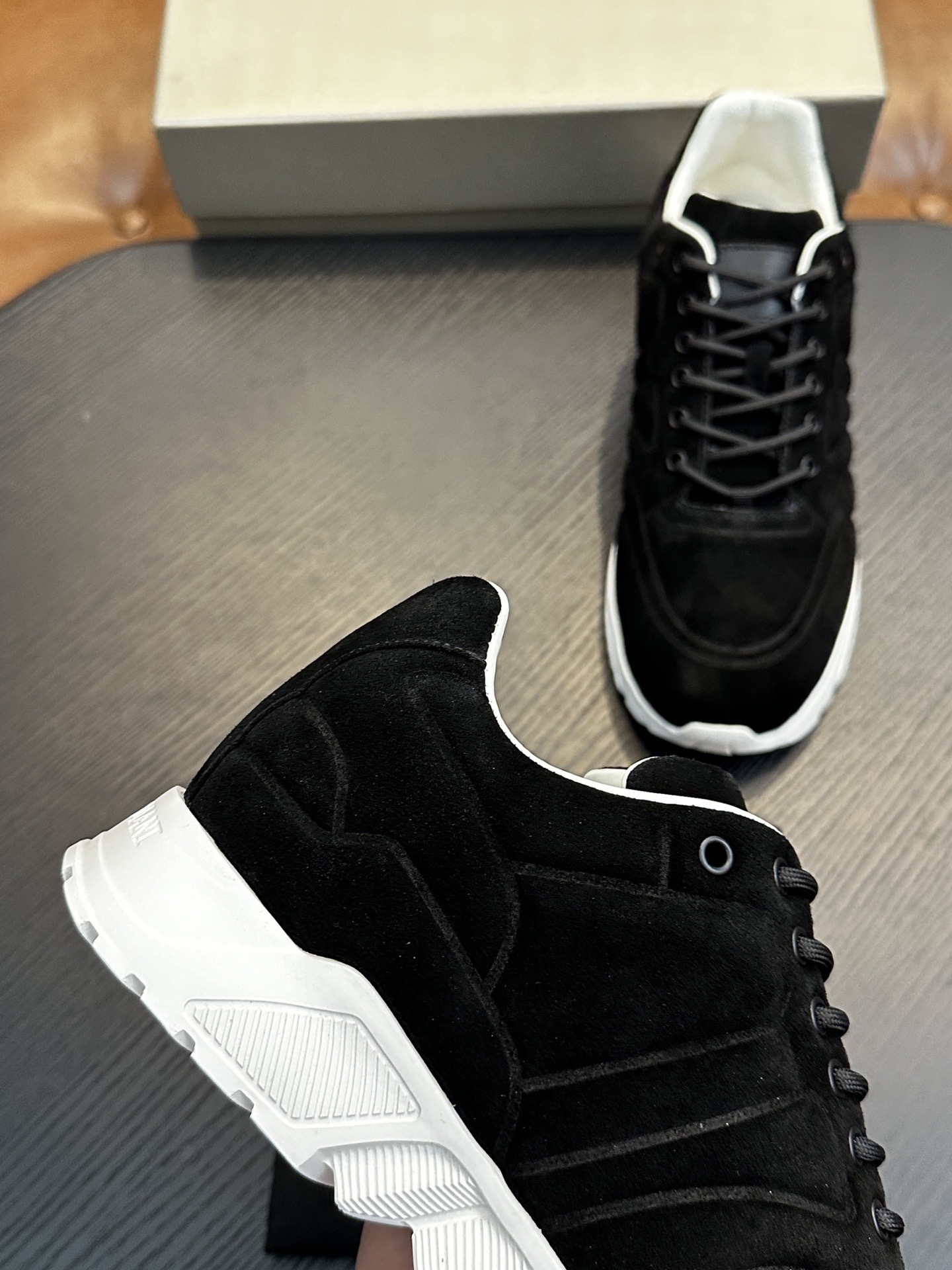 這款鞋子是AAAAA 1:1 質量(非常棒). 使用了和原版一模一樣的材料. 商標部分也保持了和阿瑪尼/Armani一樣. 圖片拍攝是實物鞋子拍攝, 您所收到的實物保證和我們圖片一模一樣.