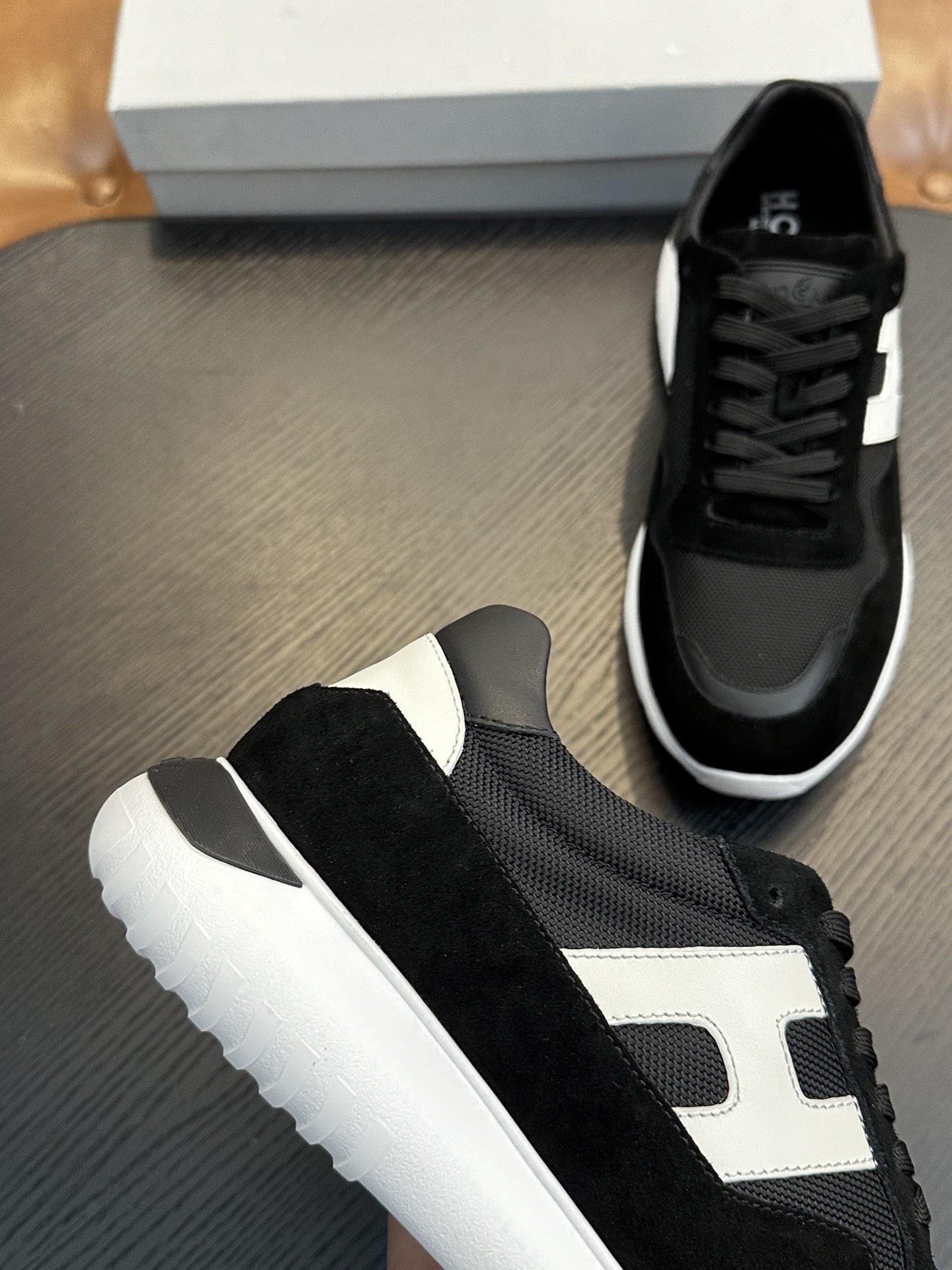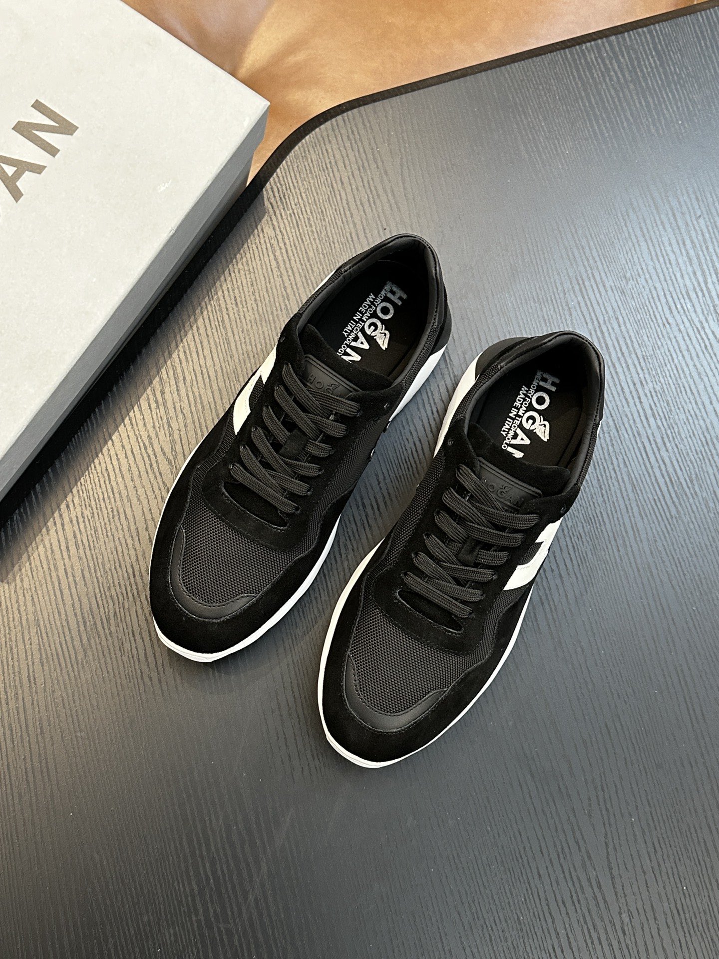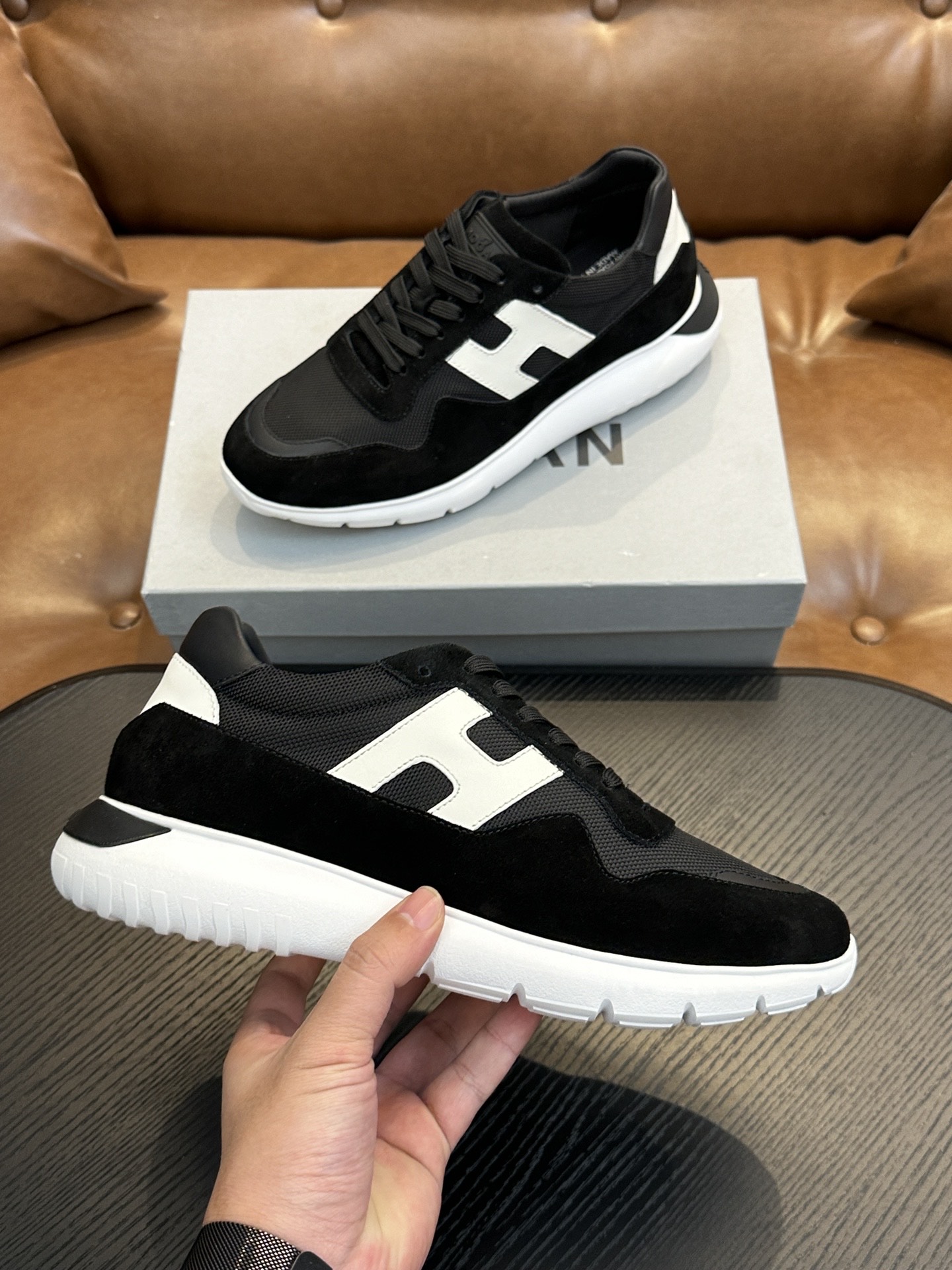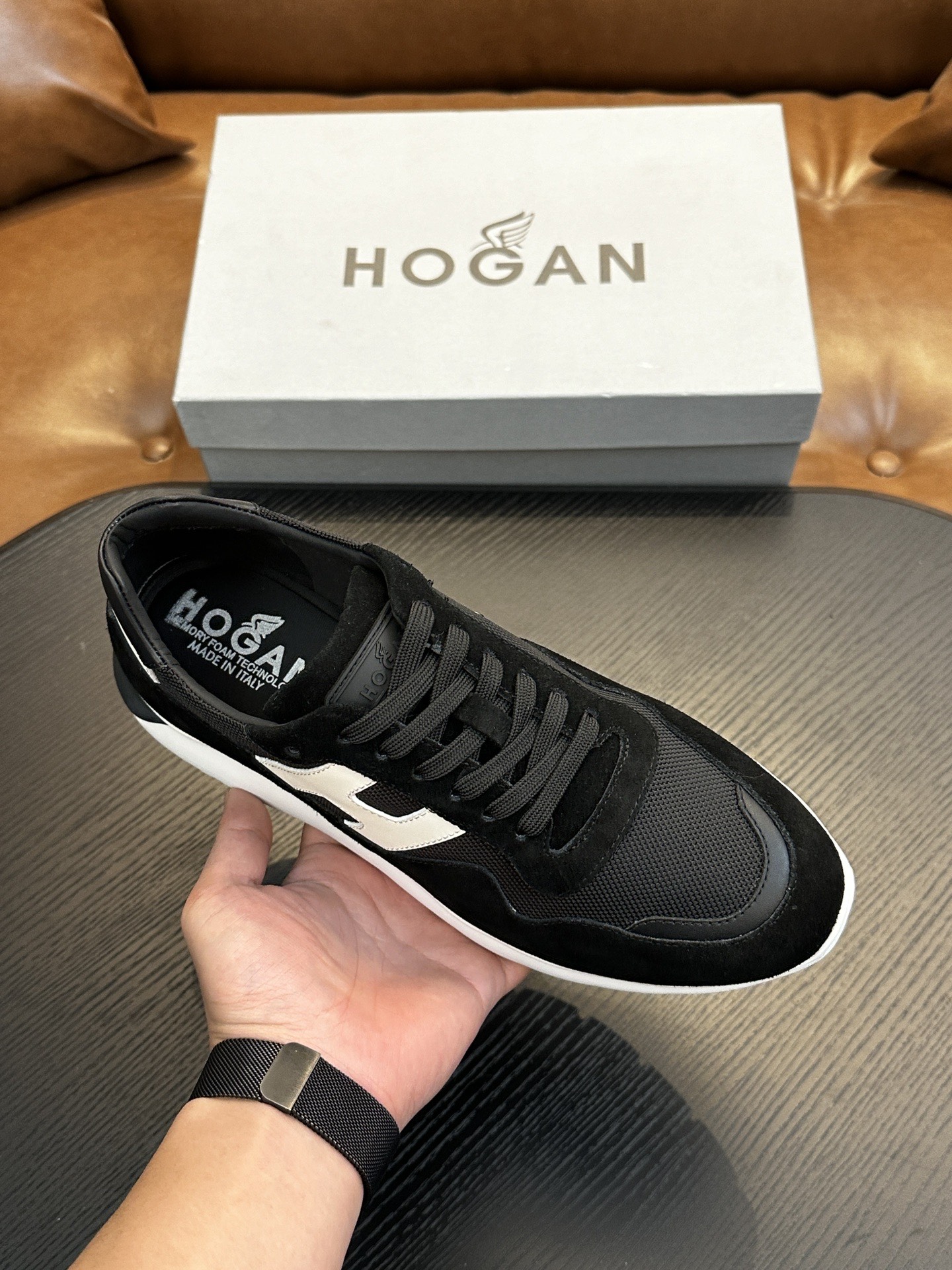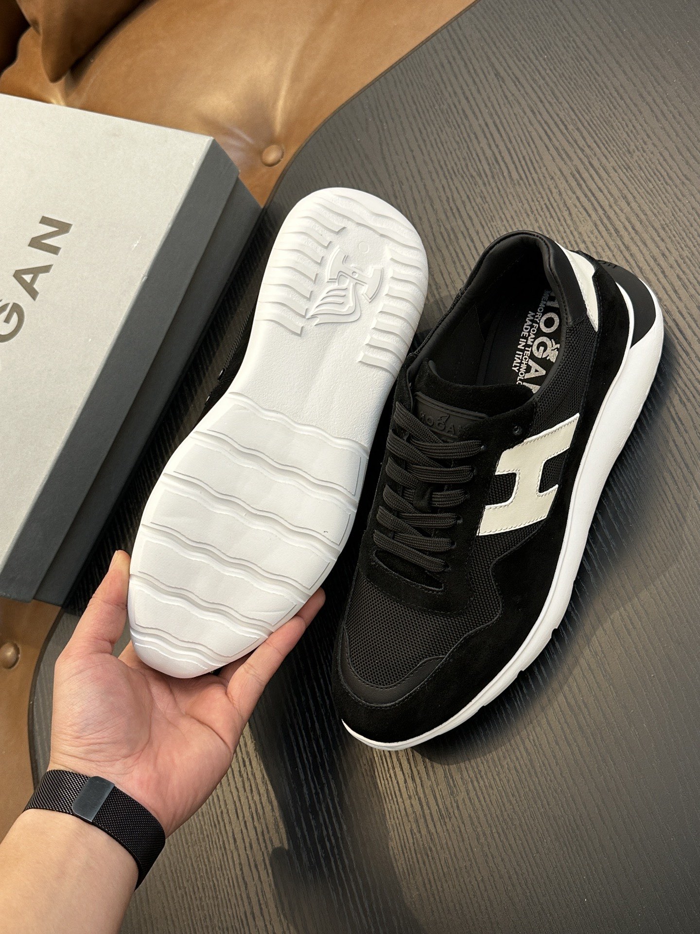 這款鞋子是AAAAA 1:1 質量(非常棒). 使用了和原版一模一樣的材料. 商標部分也保持了和Hogan一樣. 圖片拍攝是實物鞋子拍攝, 您所收到的實物保證和我們圖片一模一樣.