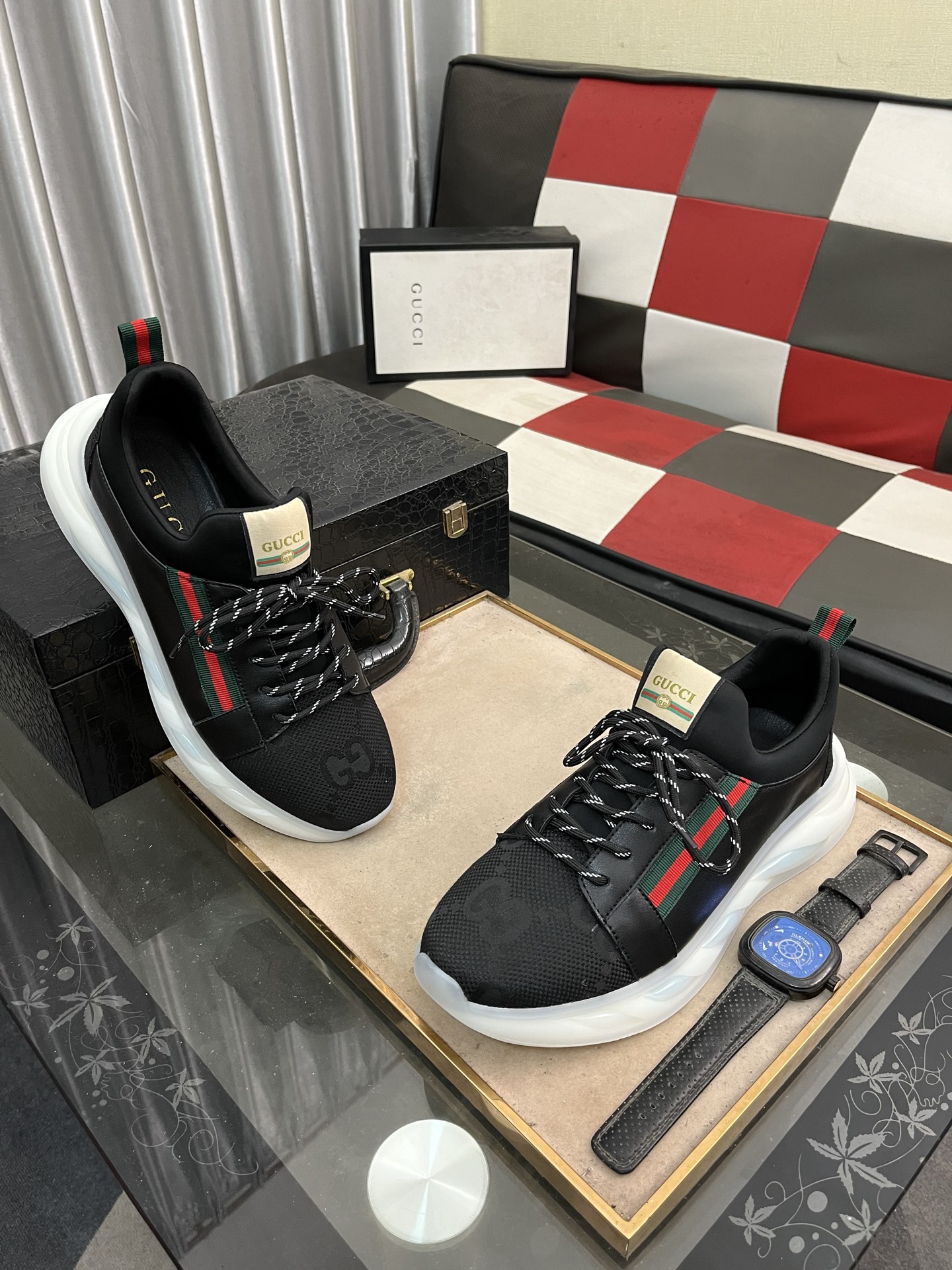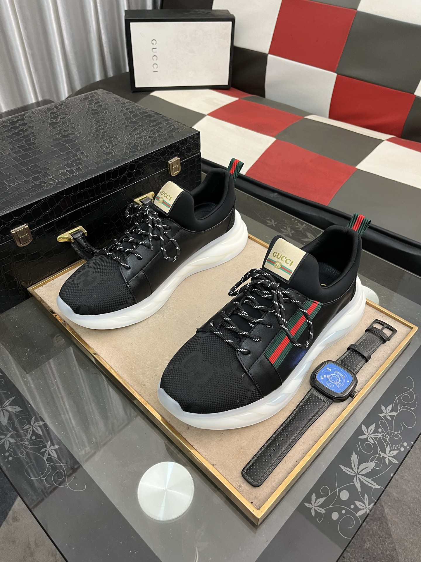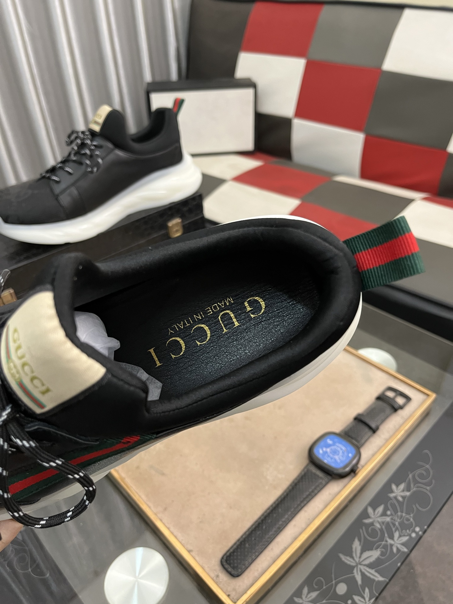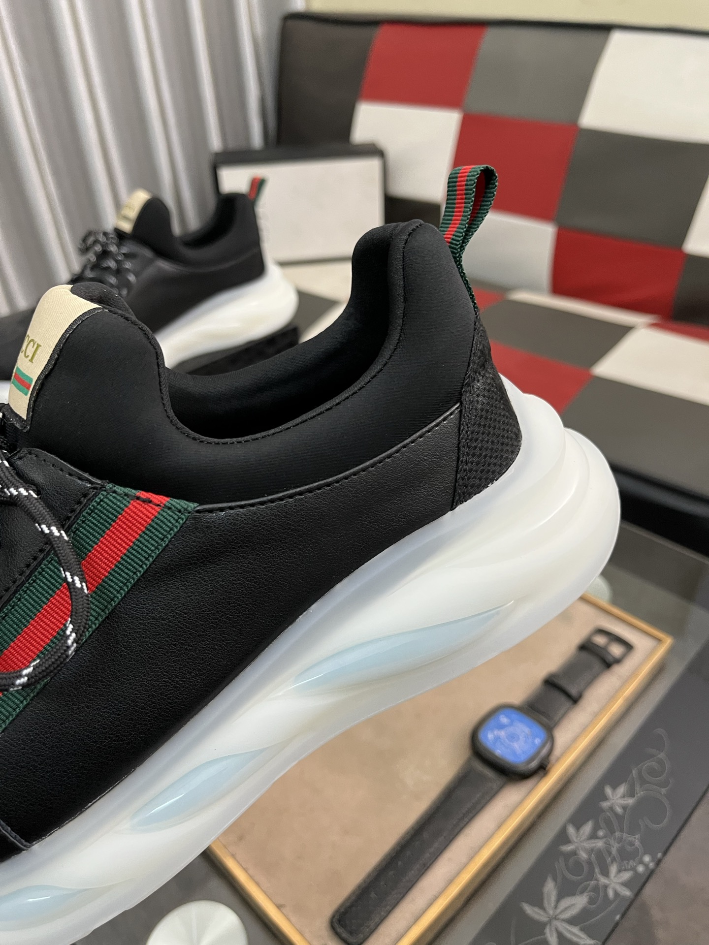 這款鞋子是AAAAA 1:1 質量(非常棒). 使用了和原版一模一樣的材料. 商標部分也保持了和古奇/Gucci一樣. 圖片拍攝是實物鞋子拍攝, 您所收到的實物保證和我們圖片一模一樣.