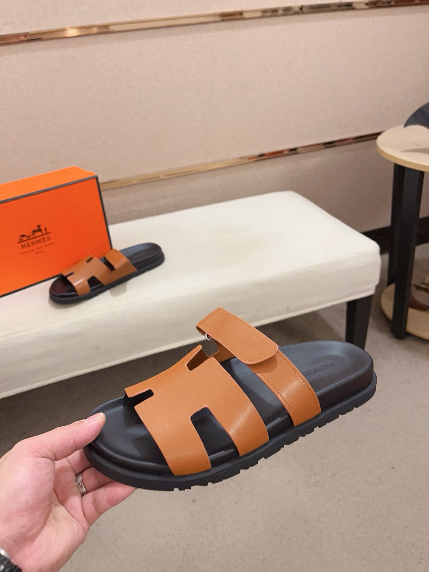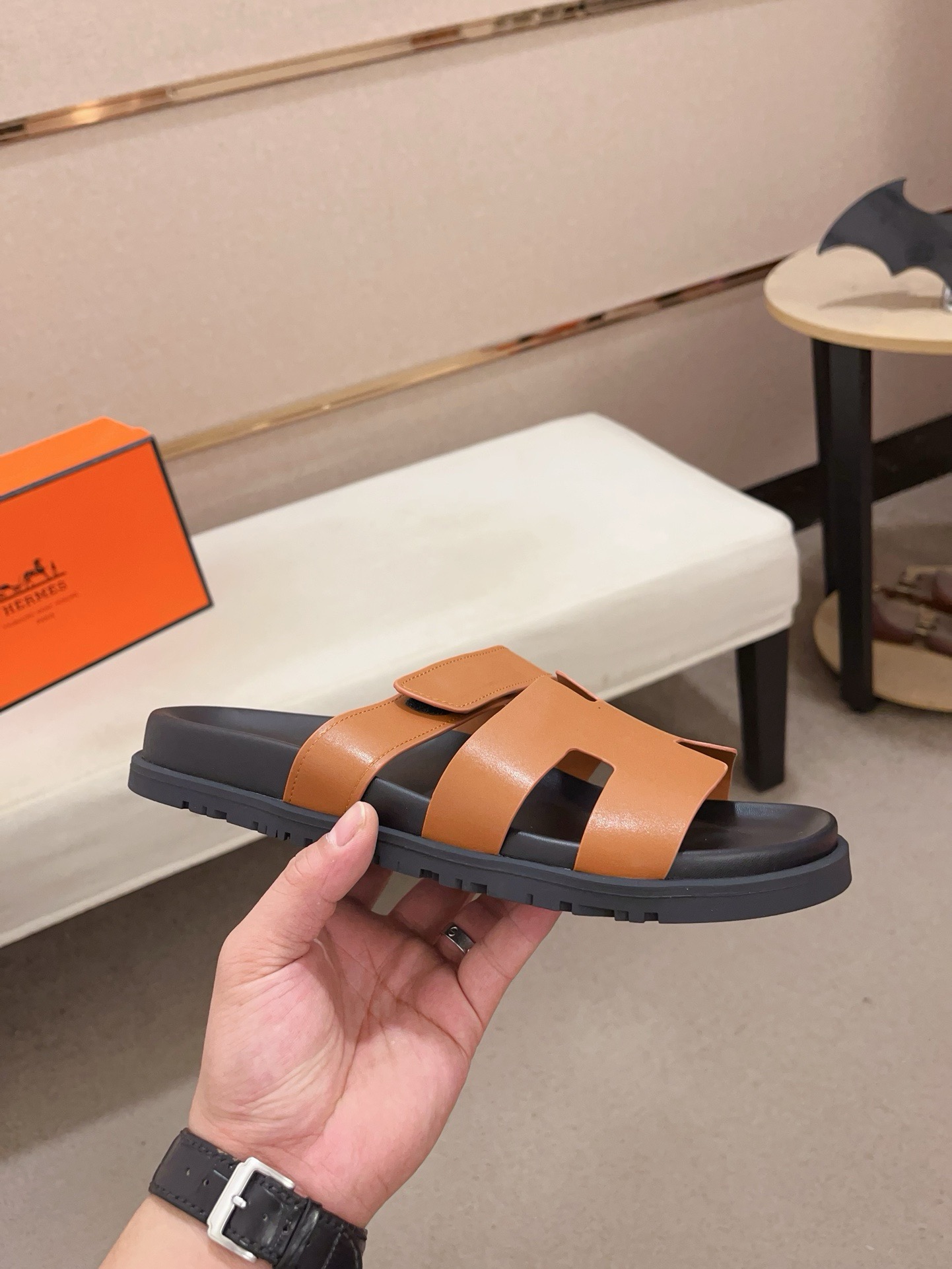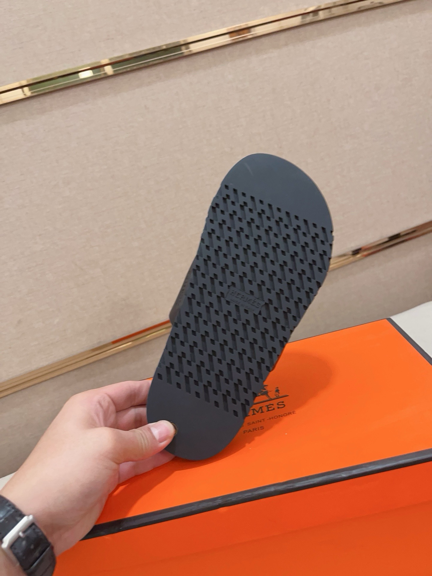 這款鞋子是AAAAA 1:1 質量(非常棒). 使用了和原版一模一樣的材料. 商標部分也保持了和愛馬仕/Hermes一樣. 圖片拍攝是實物鞋子拍攝, 您所收到的實物保證和我們圖片一模一樣.