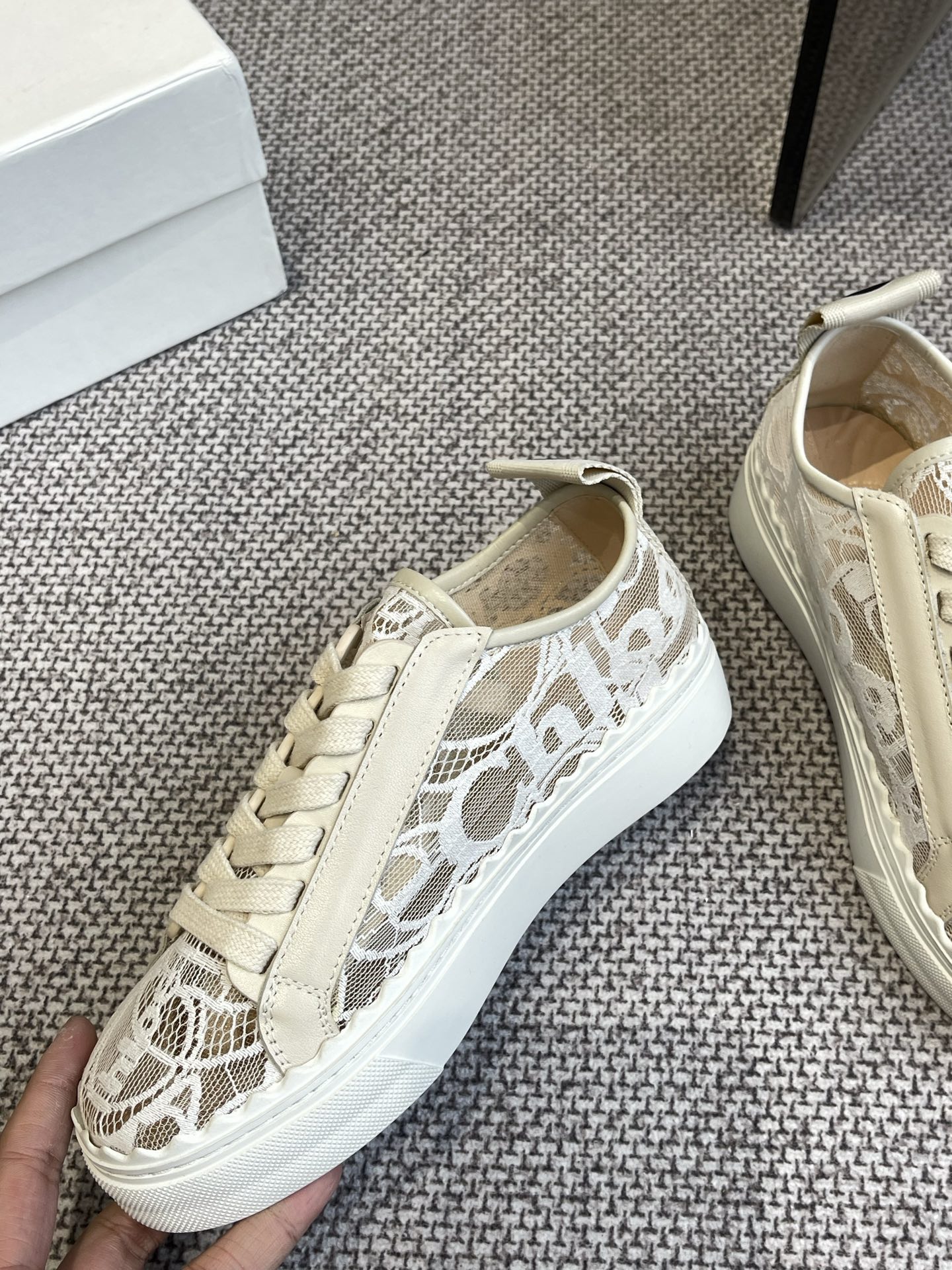這款鞋子是AAAAA 1:1 質量(非常棒). 使用了和原版一模一樣的材料. 商標部分也保持了和克洛伊/Chloe一樣. 圖片拍攝是實物鞋子拍攝, 您所收到的實物保證和我們圖片一模一樣.