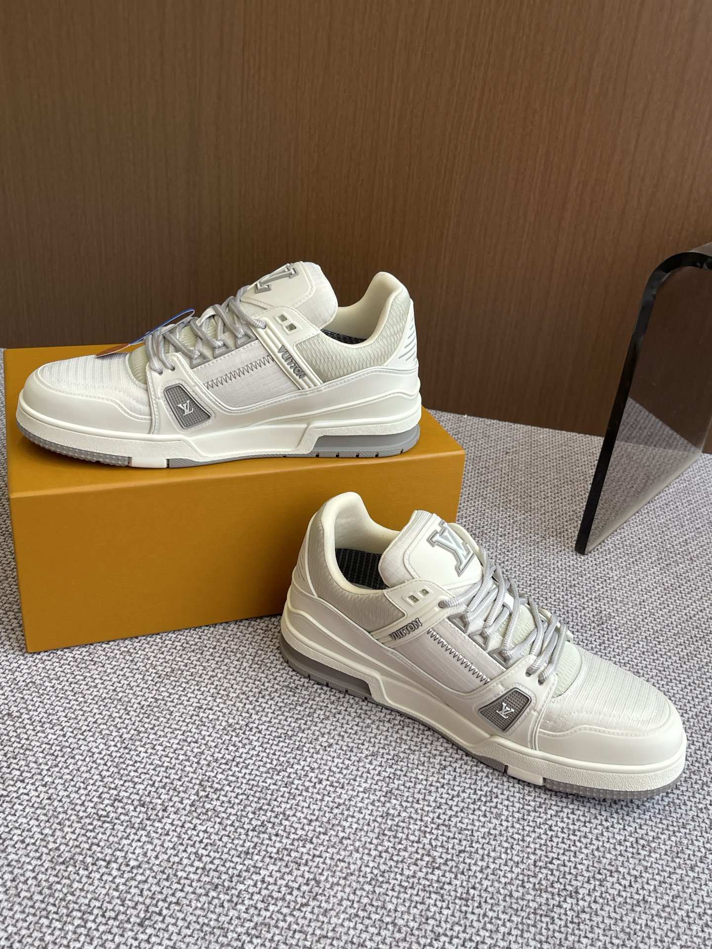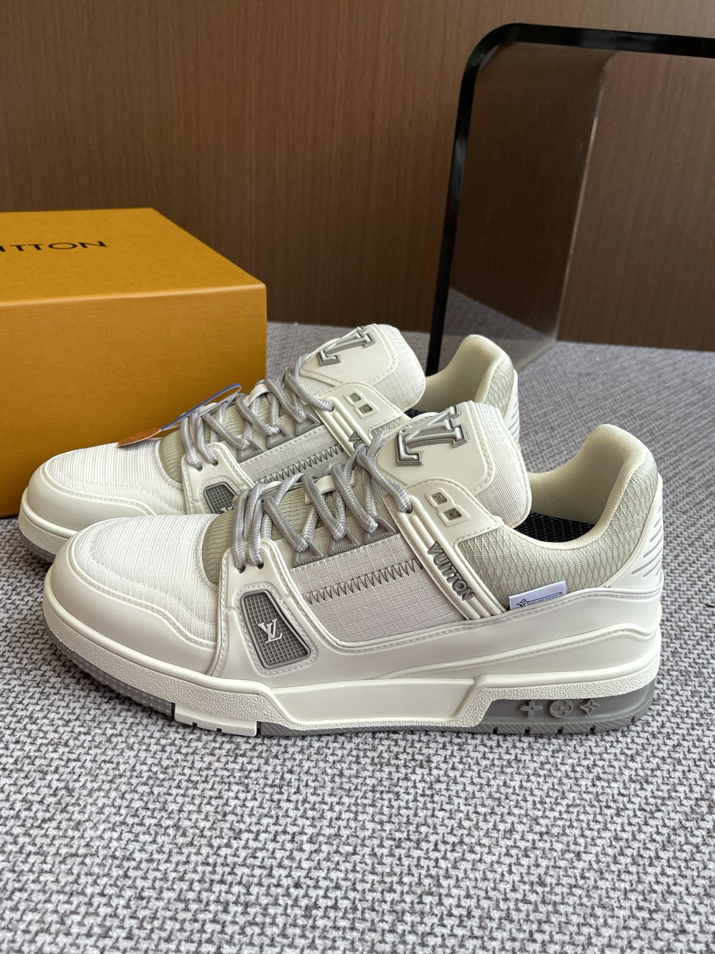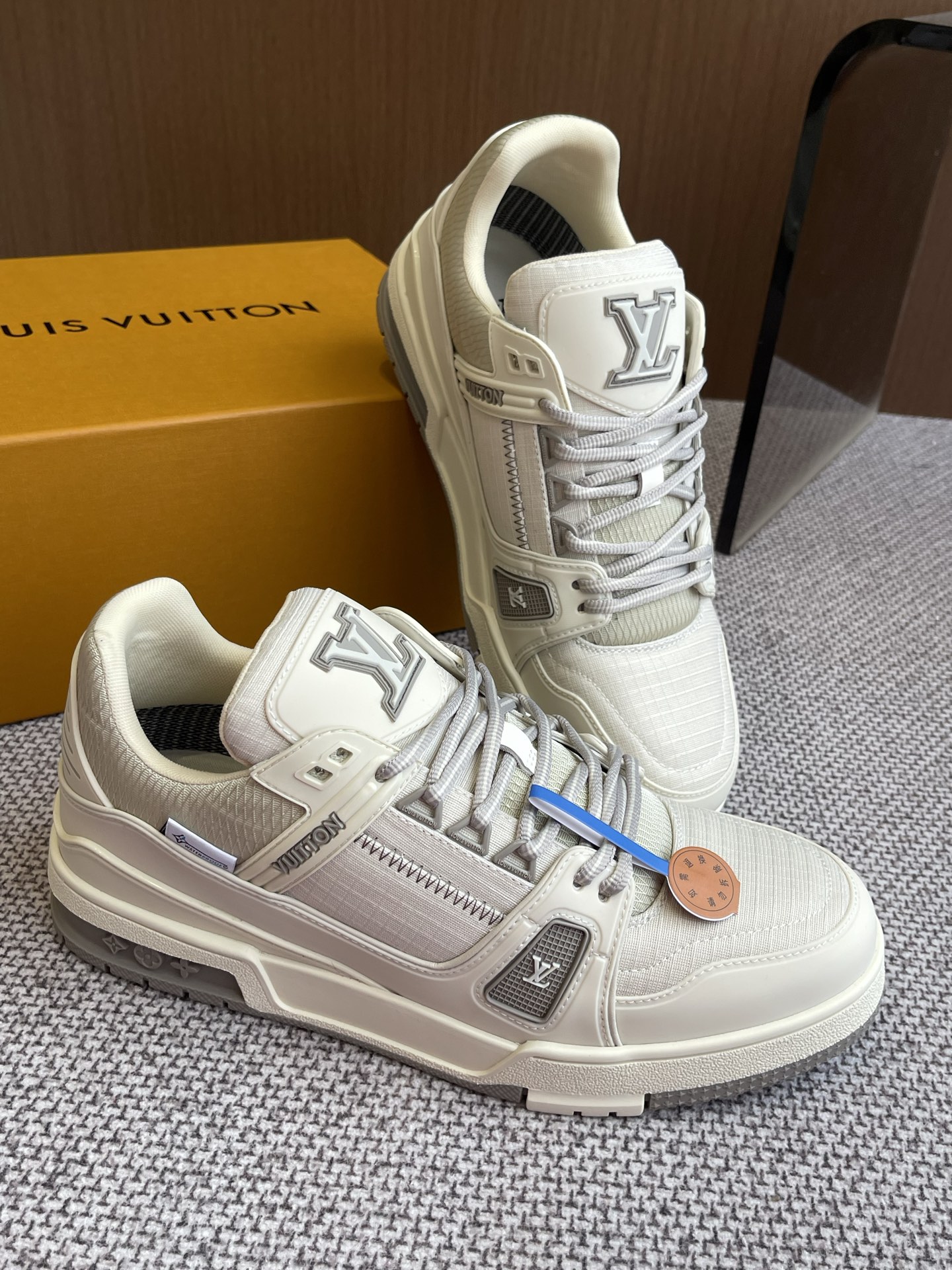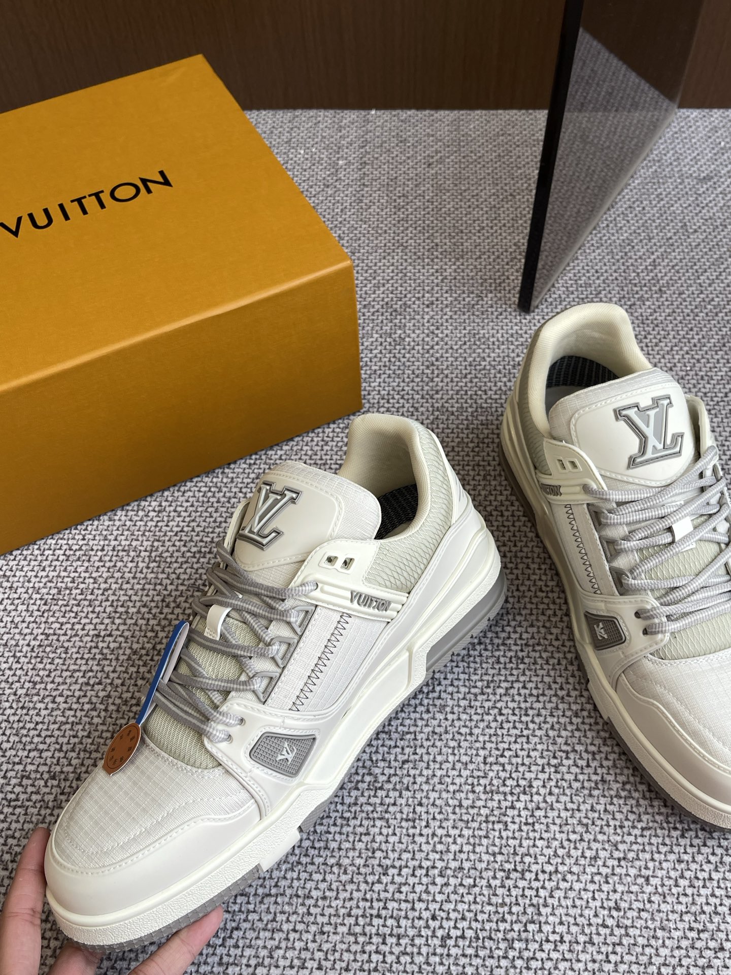 這款鞋子是AAAAA 1:1 質量(非常棒). 使用了和原版一模一樣的材料. 商標部分也保持了和路易威登/Louis Vuitton一樣. 圖片拍攝是實物鞋子拍攝, 您所收到的實物保證和我們圖片一模一樣.