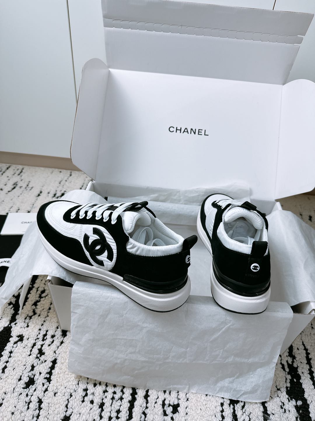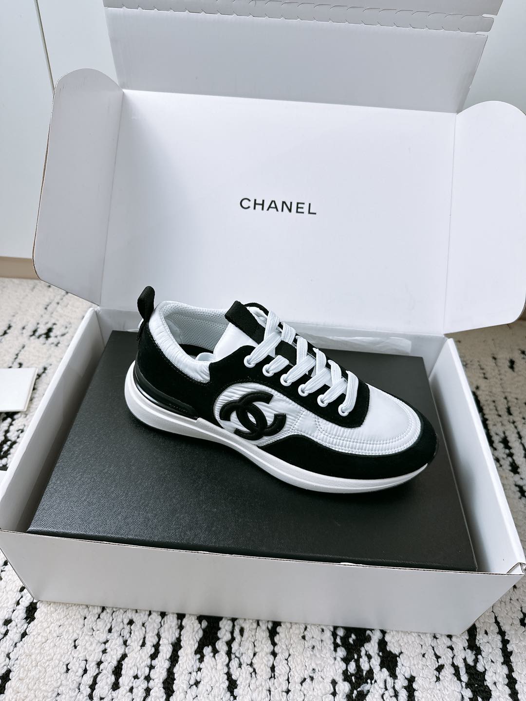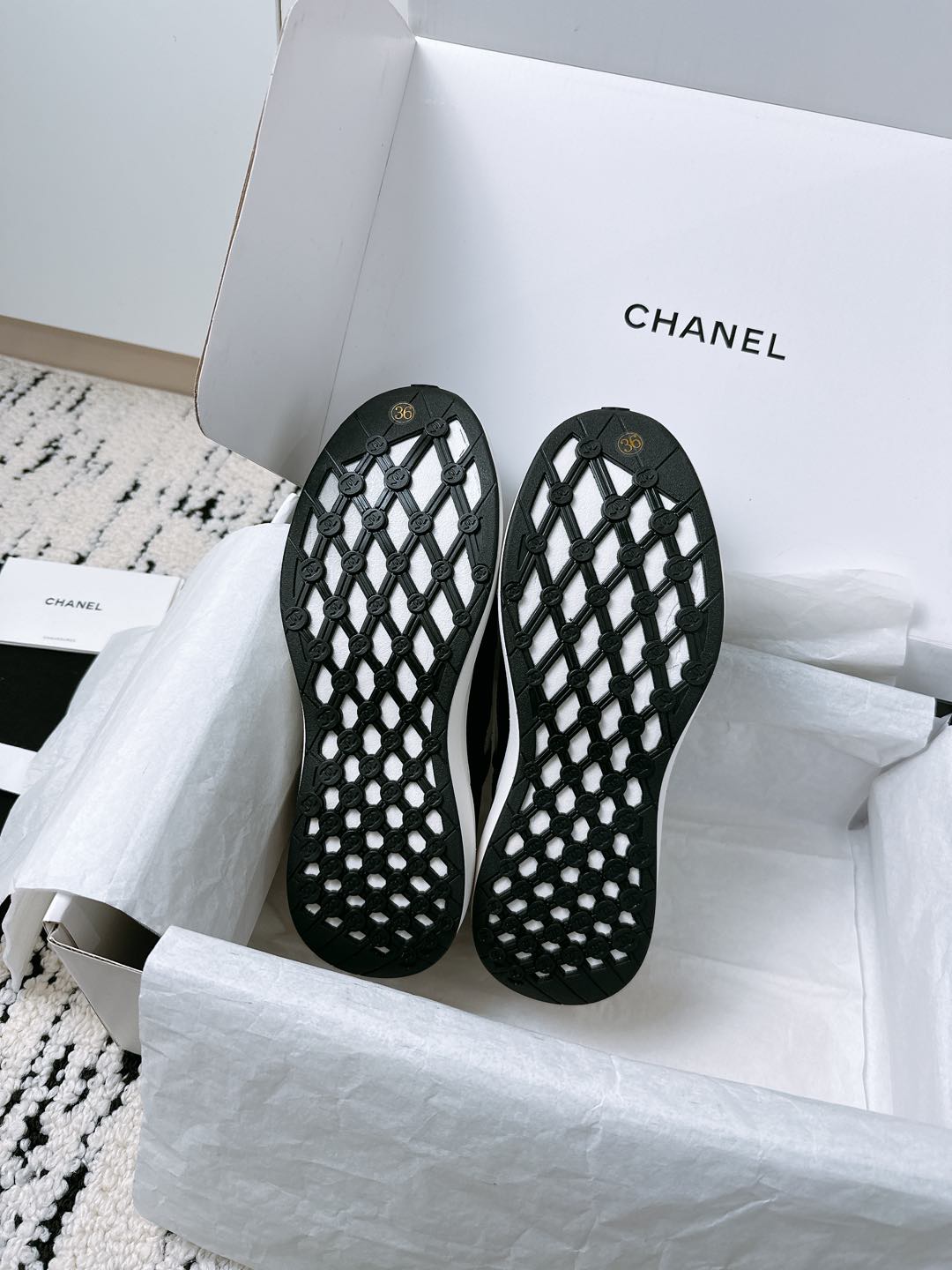 這款鞋子是AAAAA 1:1 質量(非常棒). 使用了和原版一模一樣的材料. 商標部分也保持了和香奈兒/Chanel一樣. 圖片拍攝是實物鞋子拍攝, 您所收到的實物保證和我們圖片一模一樣.
