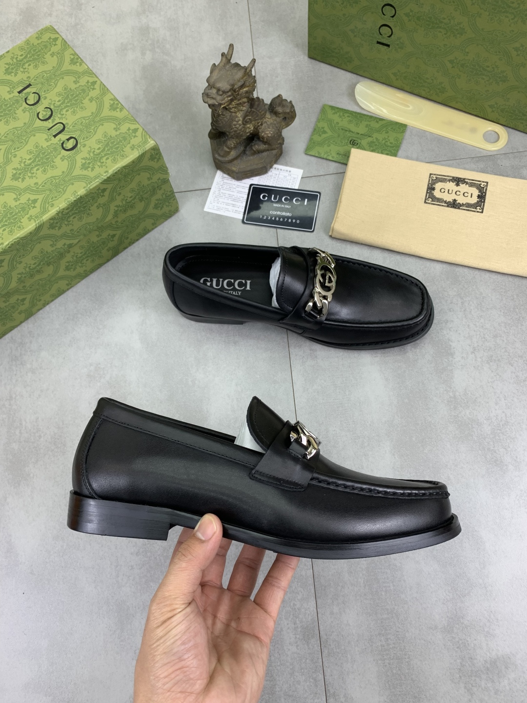 這款鞋子是AAAAA 1:1 質量(非常棒). 使用了和原版一模一樣的材料. 商標部分也保持了和古奇/Gucci一樣. 圖片拍攝是實物鞋子拍攝, 您所收到的實物保證和我們圖片一模一樣.