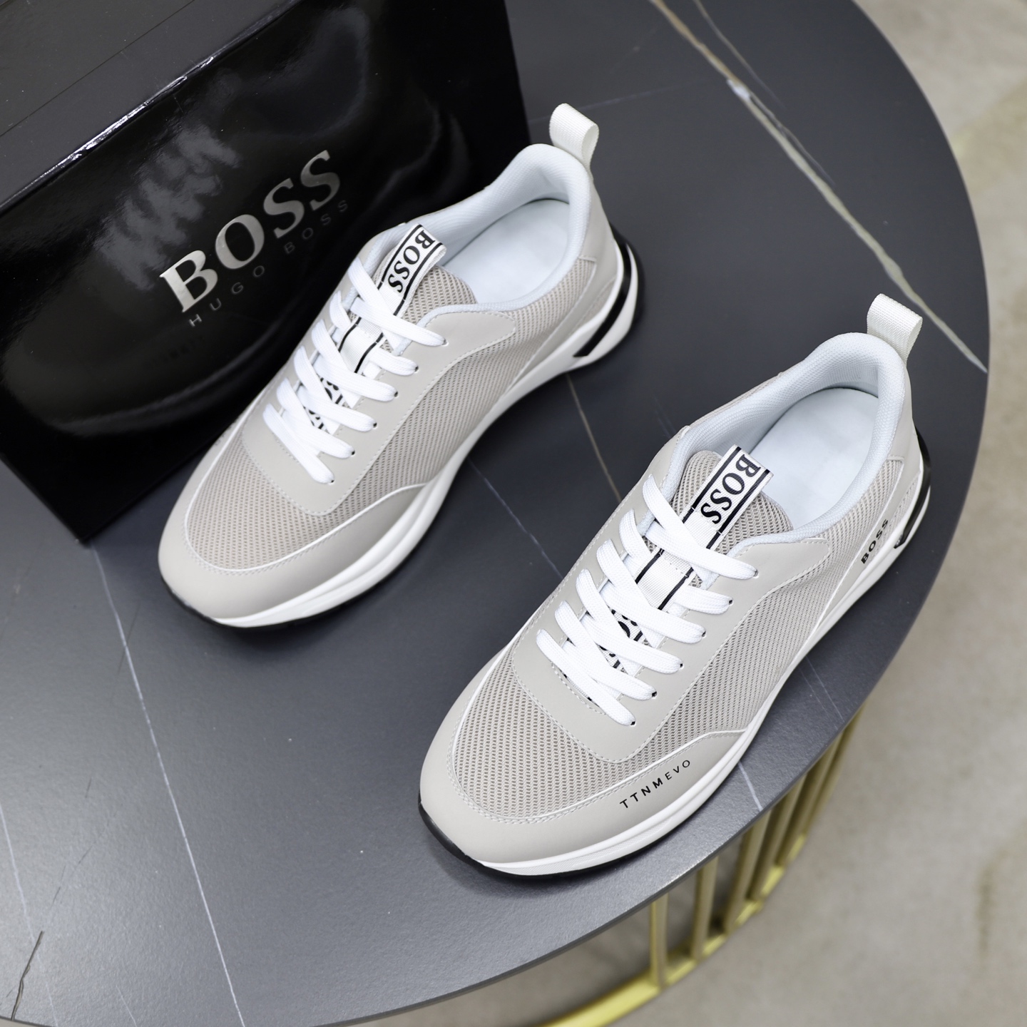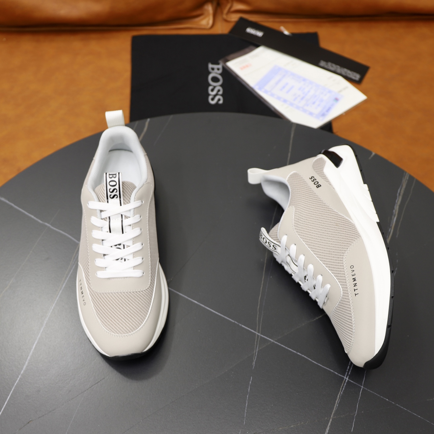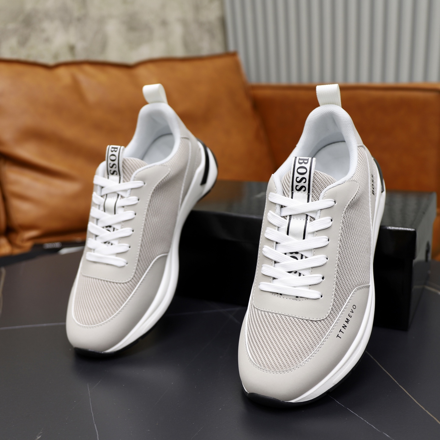 這款鞋子是AAAAA 1:1 質量(非常棒). 使用了和原版一模一樣的材料. 商標部分也保持了和BOSS一樣. 圖片拍攝是實物鞋子拍攝, 您所收到的實物保證和我們圖片一模一樣.