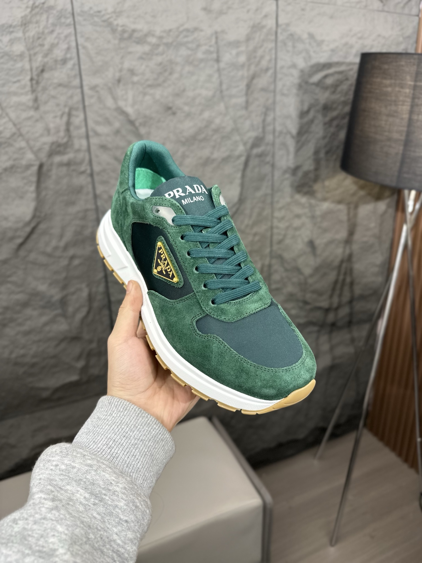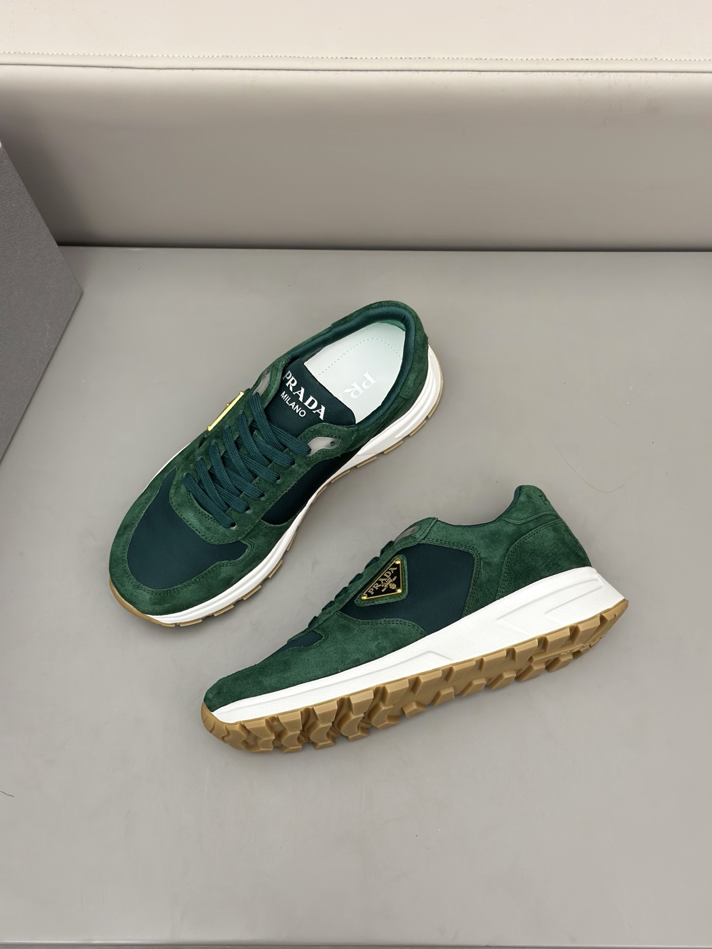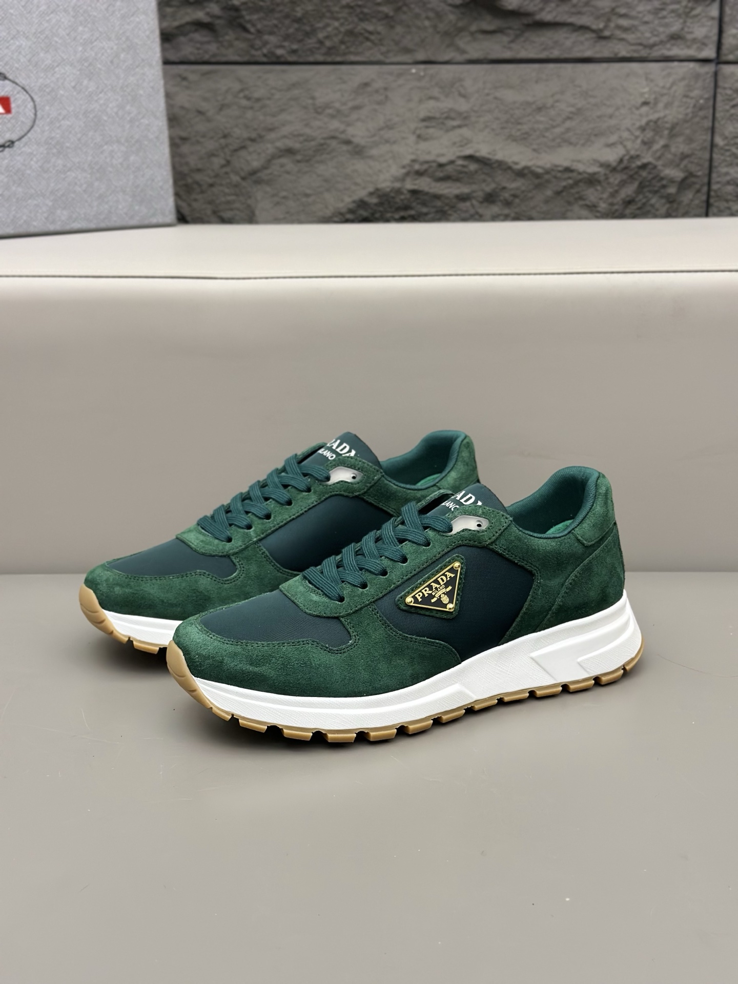 這款鞋子是AAAAA 1:1 質量(非常棒). 使用了和原版一模一樣的材料. 商標部分也保持了和普拉達/Prada一樣. 圖片拍攝是實物鞋子拍攝, 您所收到的實物保證和我們圖片一模一樣.