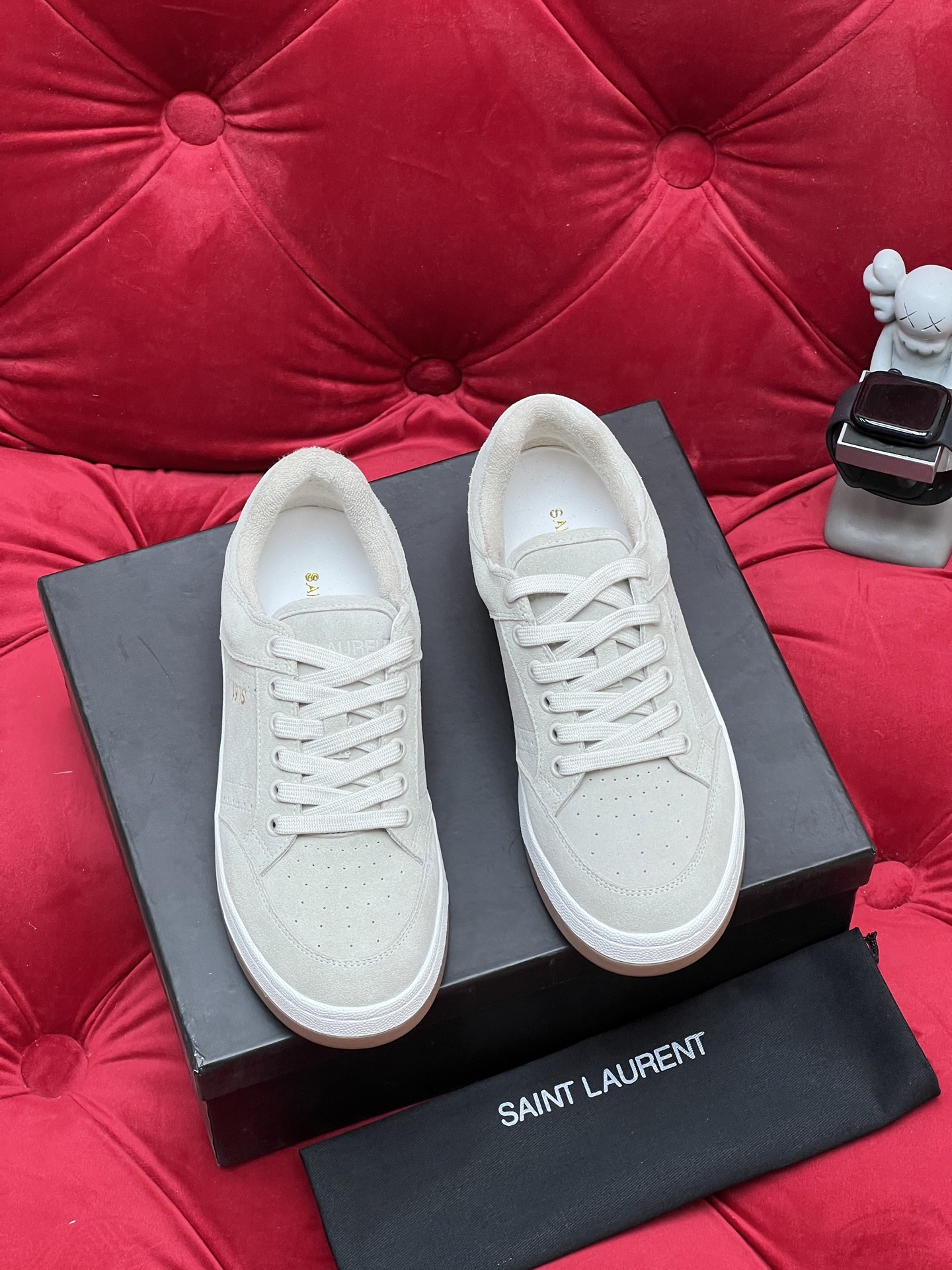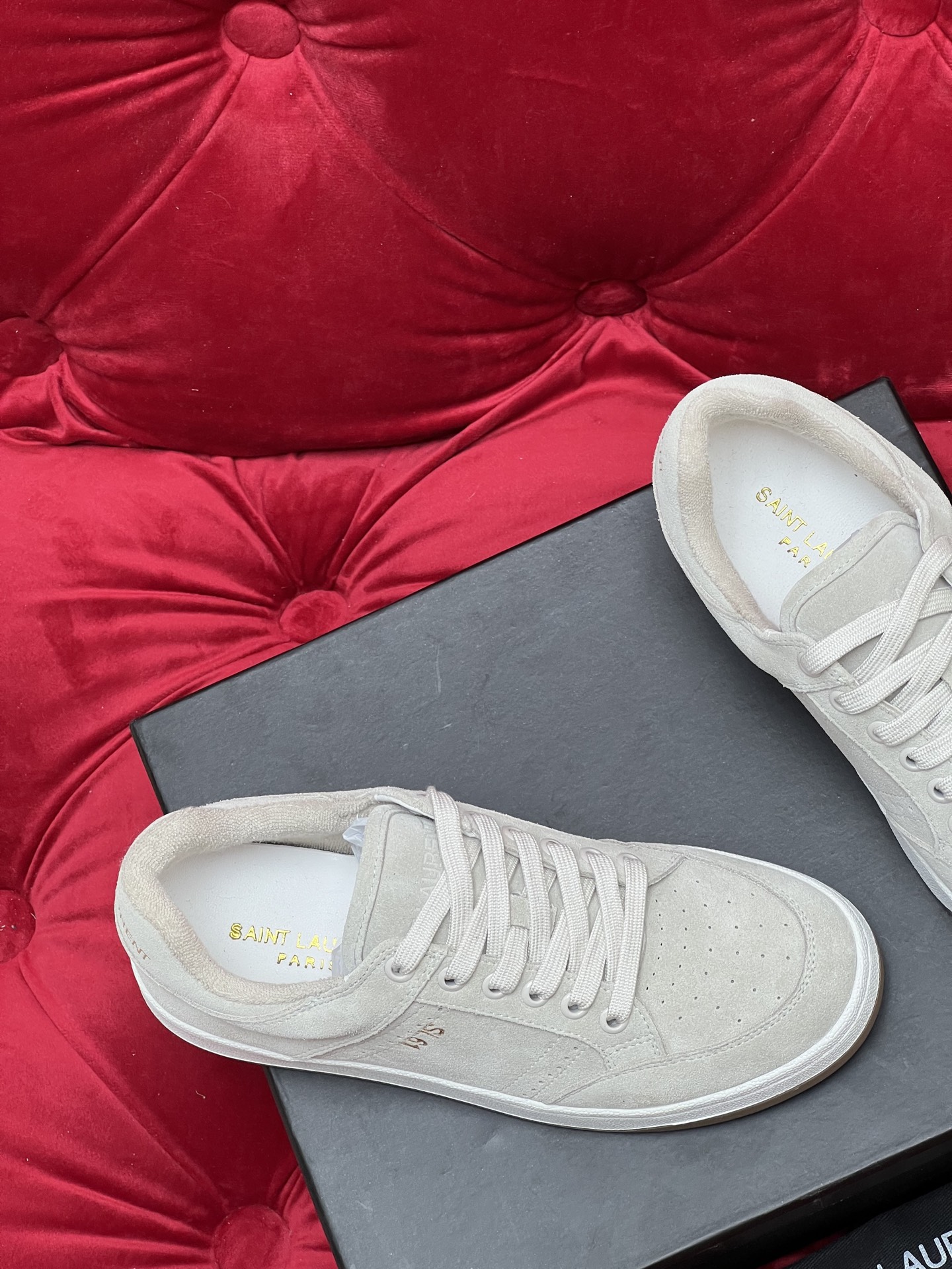這款鞋子是AAAAA 1:1 質量(非常棒). 使用了和原版一模一樣的材料. 商標部分也保持了和聖羅蘭/Saint Laurent一樣. 圖片拍攝是實物鞋子拍攝, 您所收到的實物保證和我們圖片一模一樣.