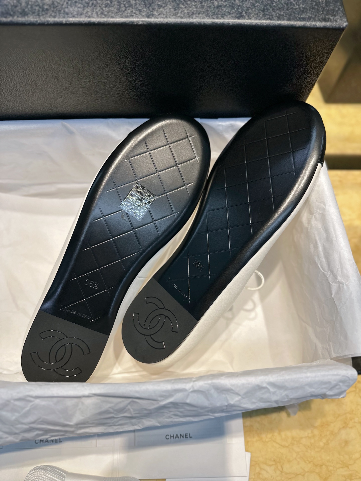這款鞋子是AAAAA 1:1 質量(非常棒). 使用了和原版一模一樣的材料. 商標部分也保持了和香奈兒/Chanel一樣. 圖片拍攝是實物鞋子拍攝, 您所收到的實物保證和我們圖片一模一樣.