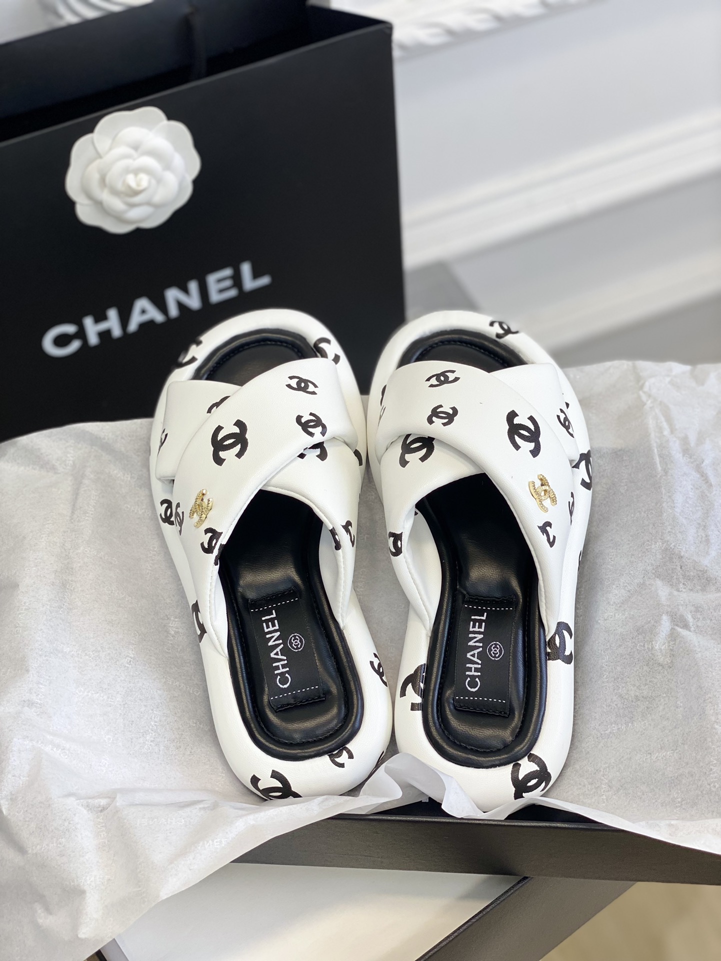 這款鞋子是AAAAA 1:1 質量(非常棒). 使用了和原版一模一樣的材料. 商標部分也保持了和香奈兒/Chanel一樣. 圖片拍攝是實物鞋子拍攝, 您所收到的實物保證和我們圖片一模一樣.