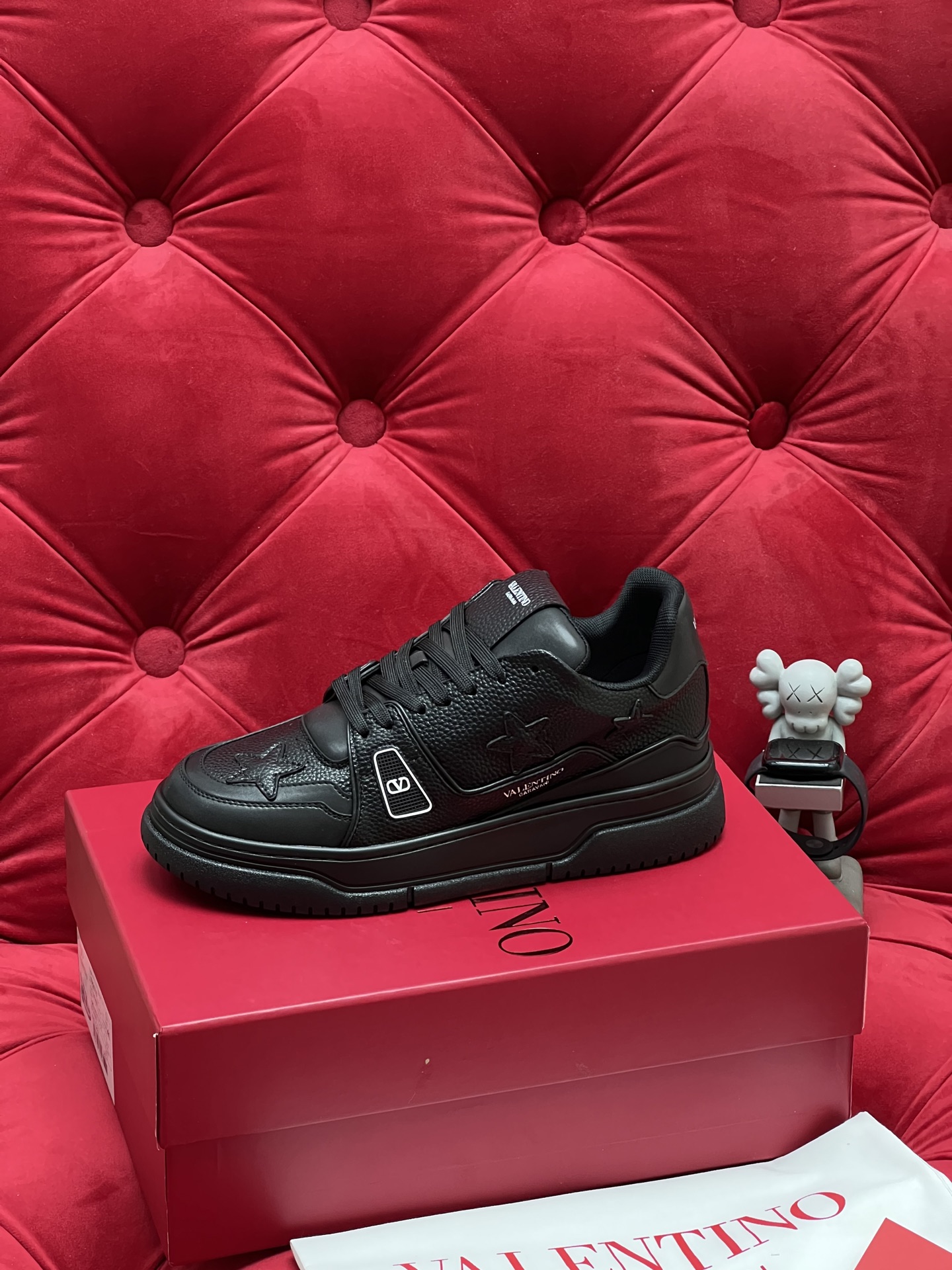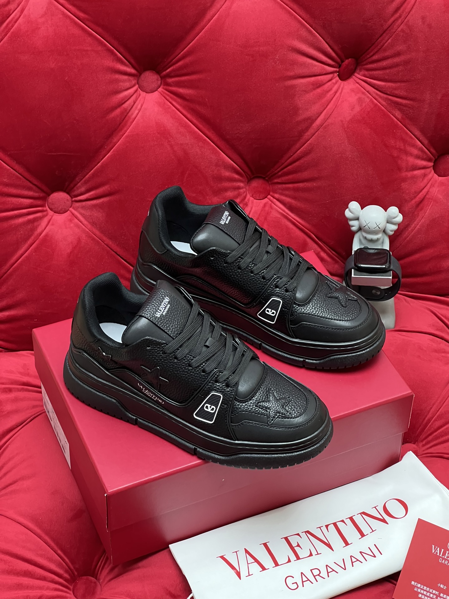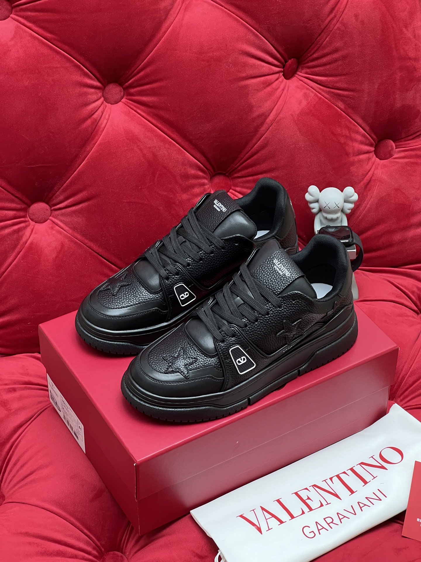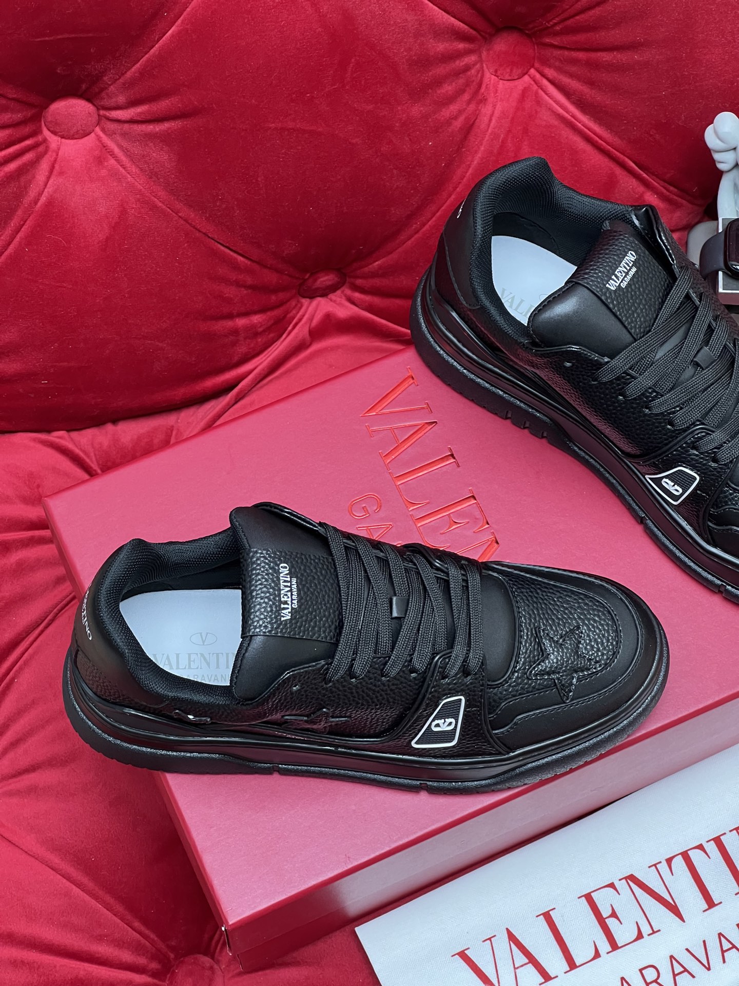 這款鞋子是AAAAA 1:1 質量(非常棒). 使用了和原版一模一樣的材料. 商標部分也保持了和瓦倫蒂諾/Valentino一樣. 圖片拍攝是實物鞋子拍攝, 您所收到的實物保證和我們圖片一模一樣.